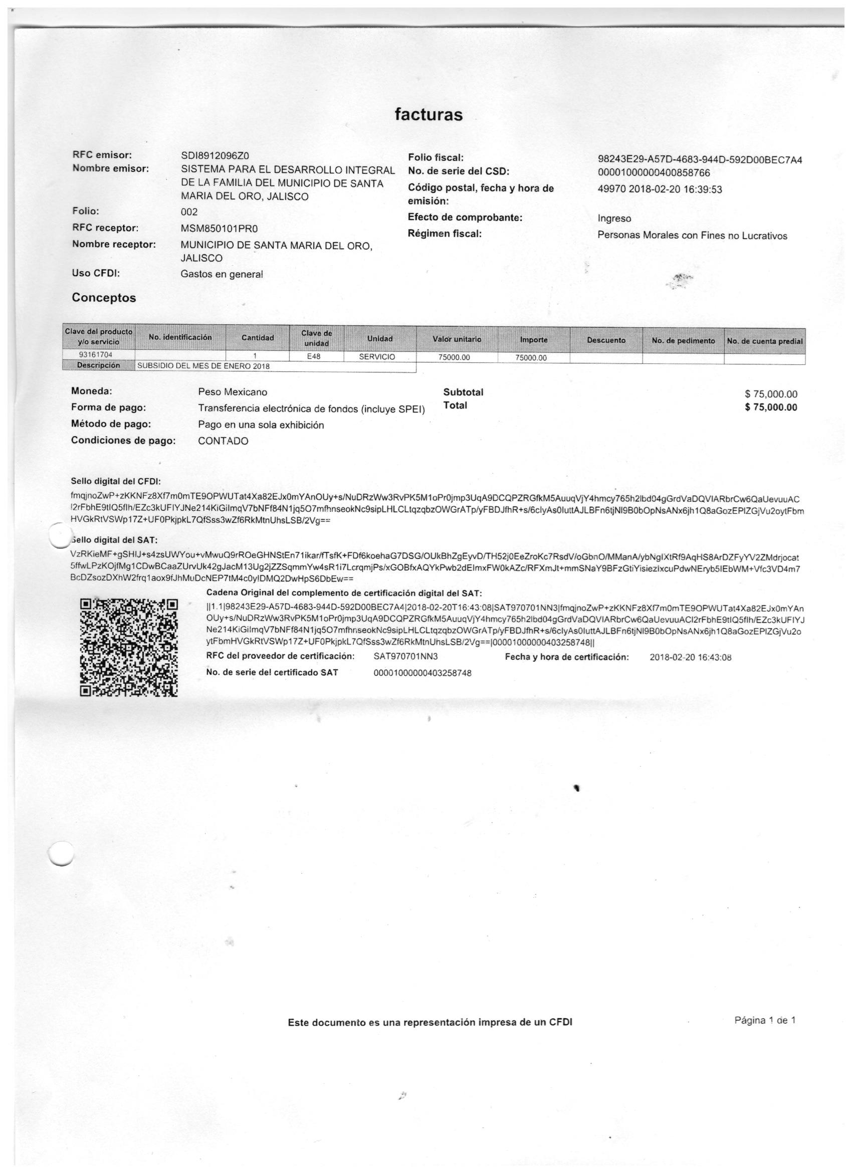 PUNTO. 18. DONACIONES. OFICIALIA MAYOR. SANTA MARIA. ENERO 2017