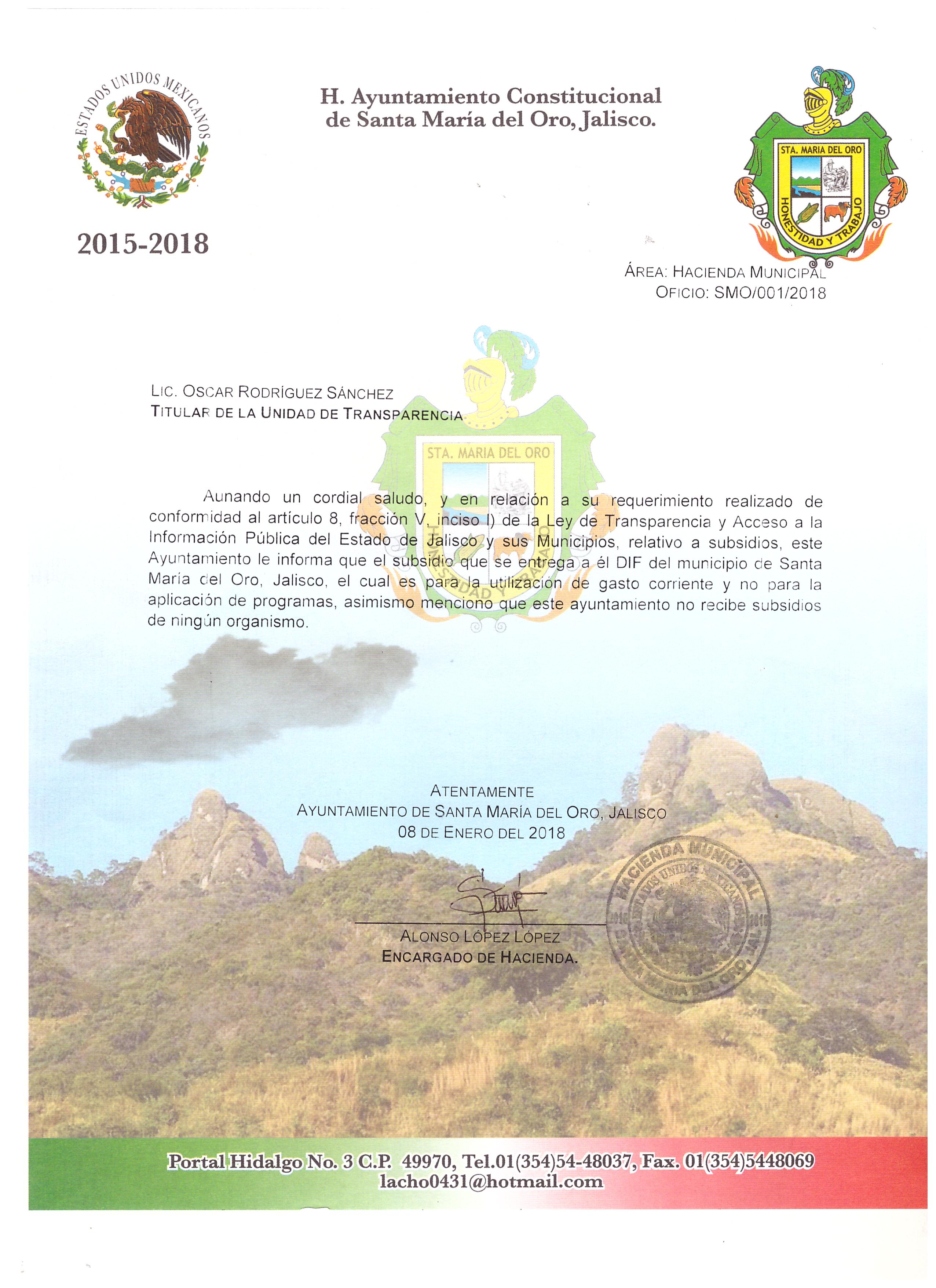 Oficio Encargado de Hacienda Subcidio DIF 001