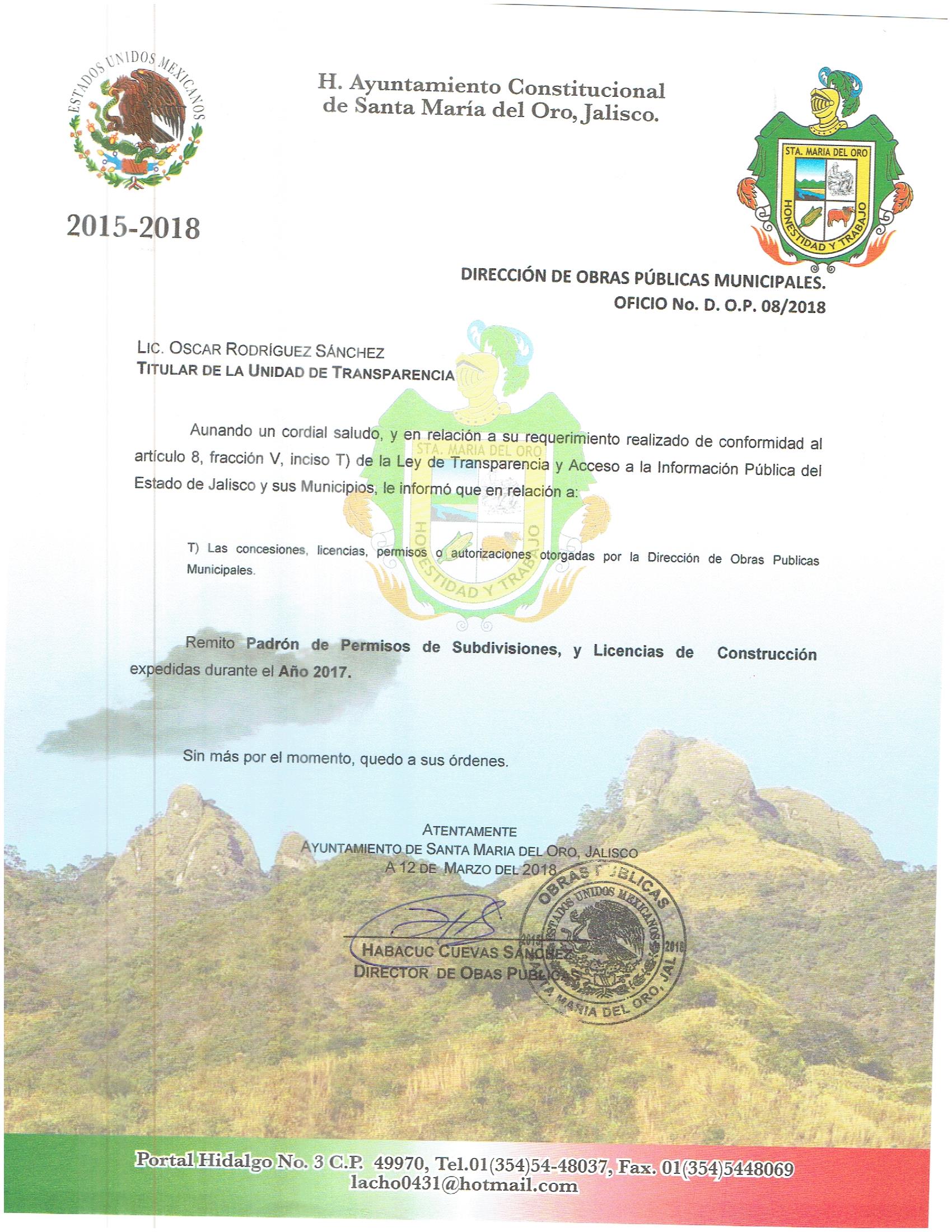 Oficio de Inexistencia de Conseciones o autotizaciones Octubre 2016