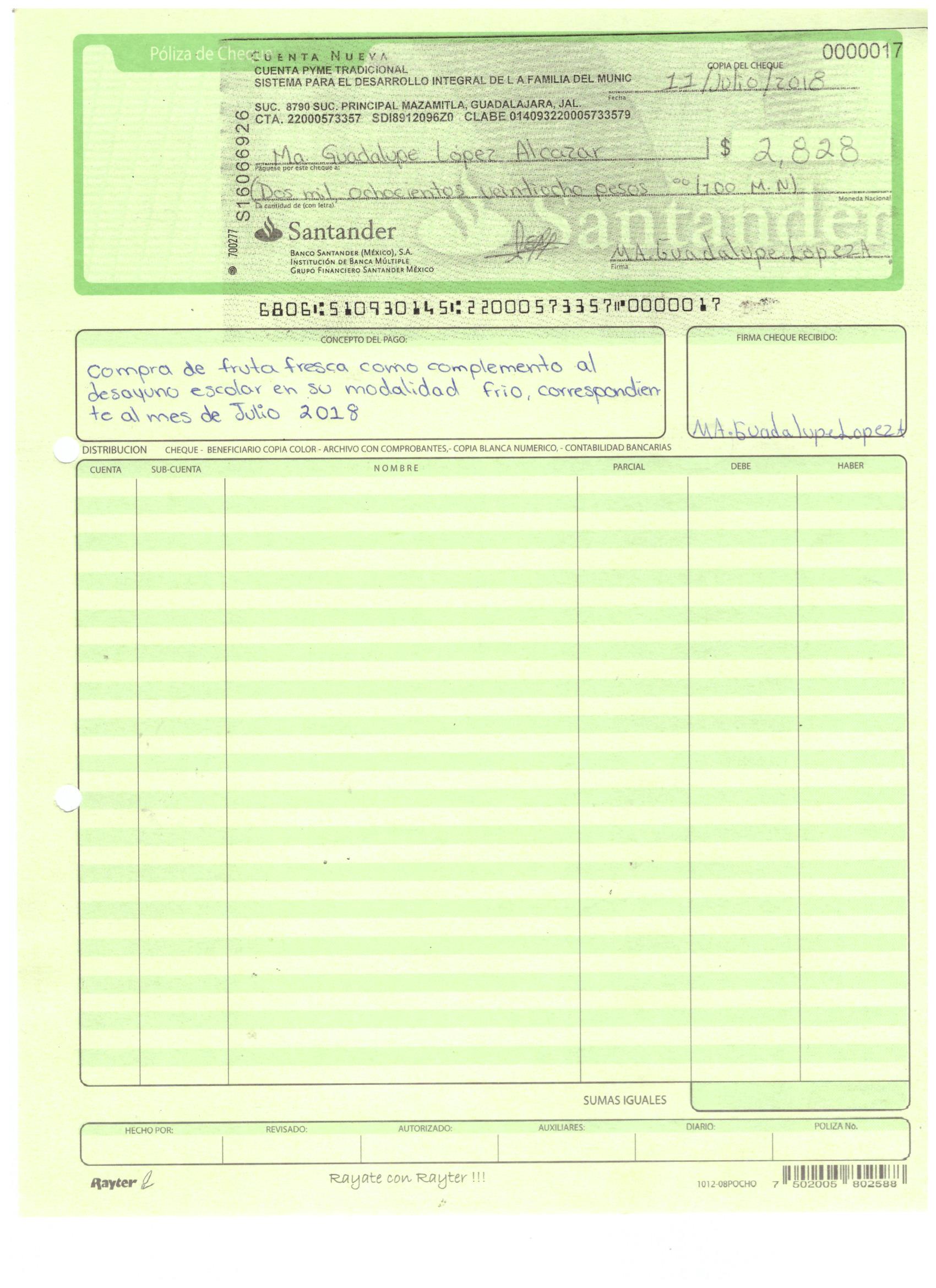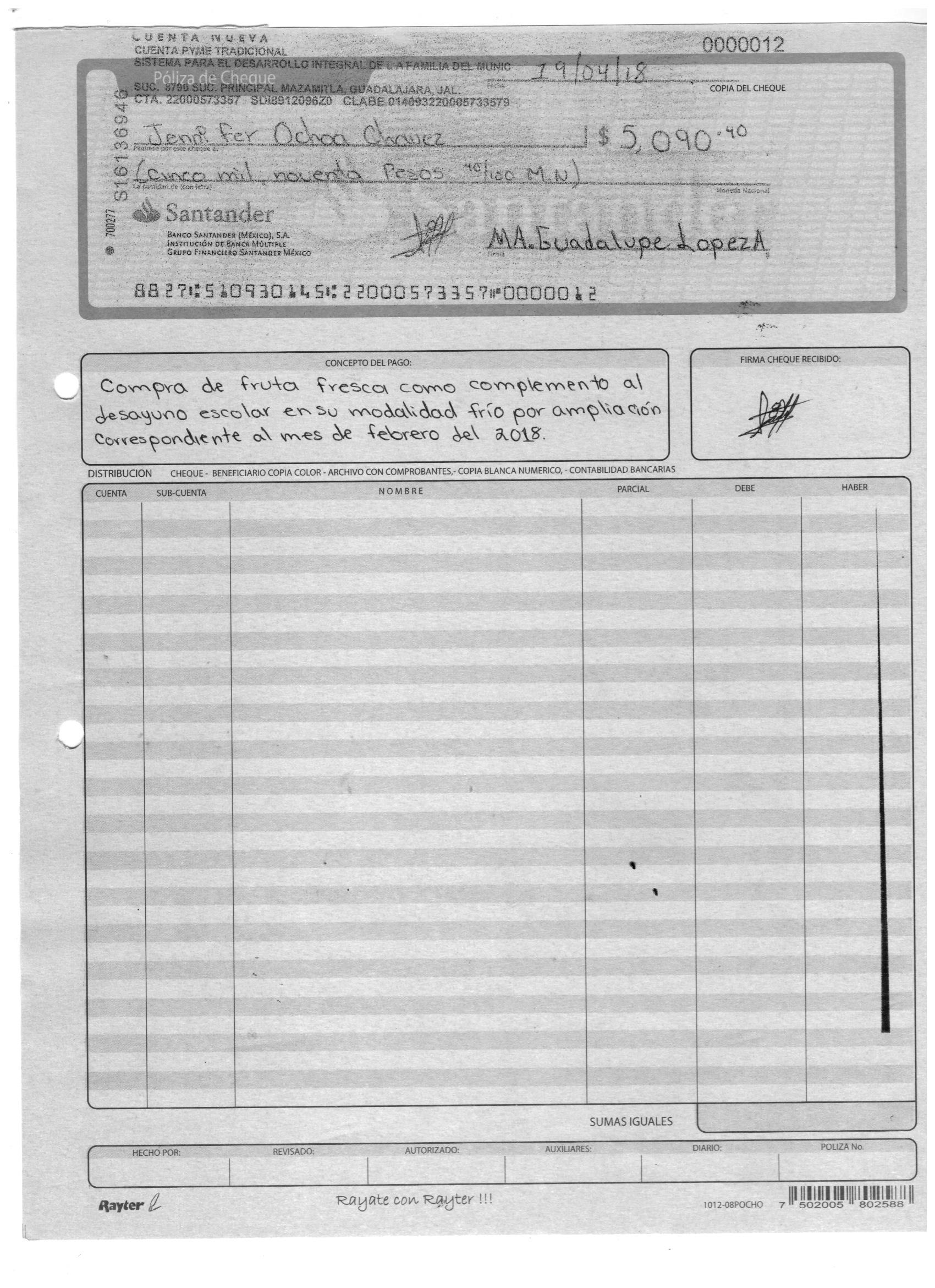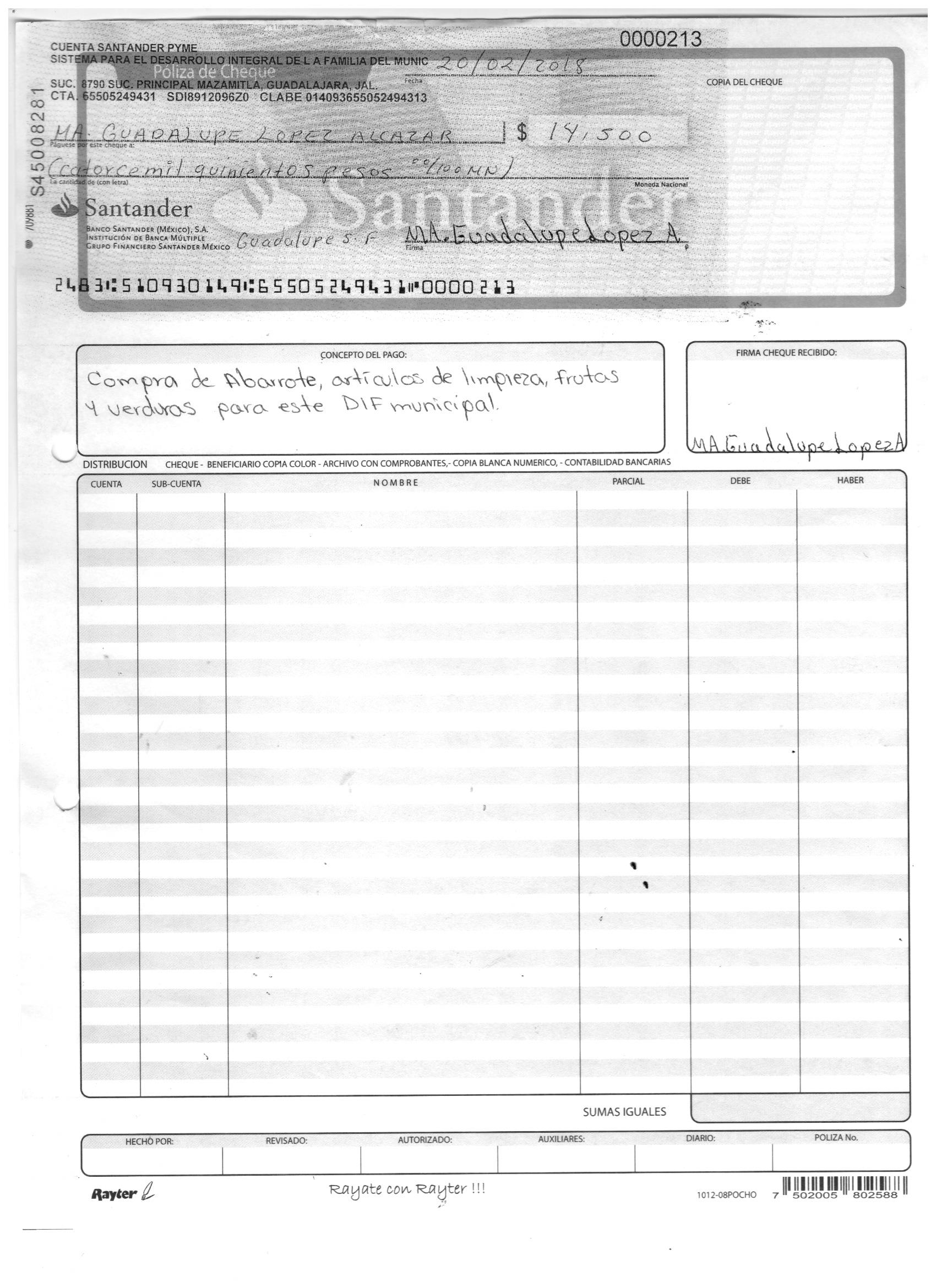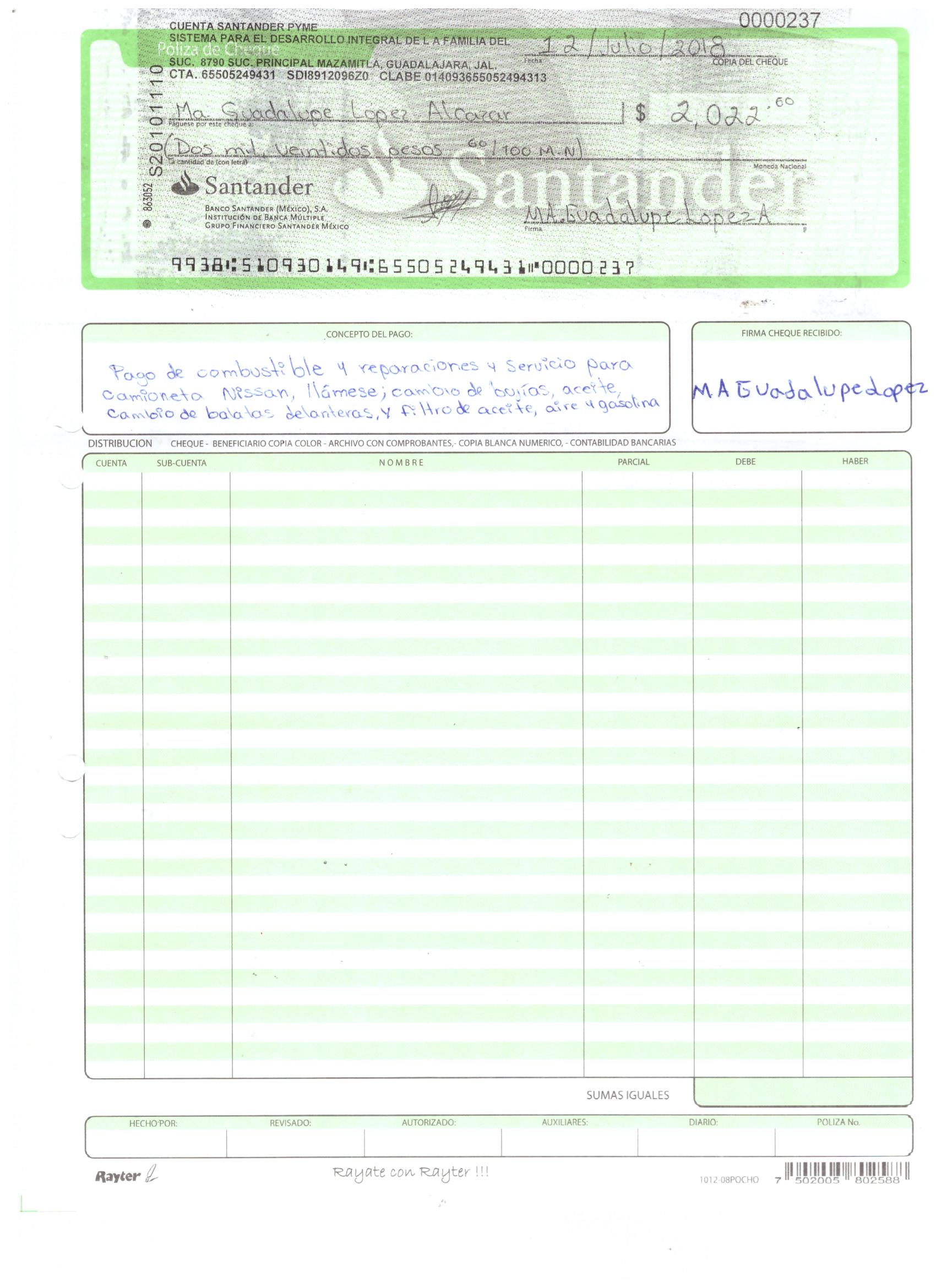 poliza de cheque,no.0120
