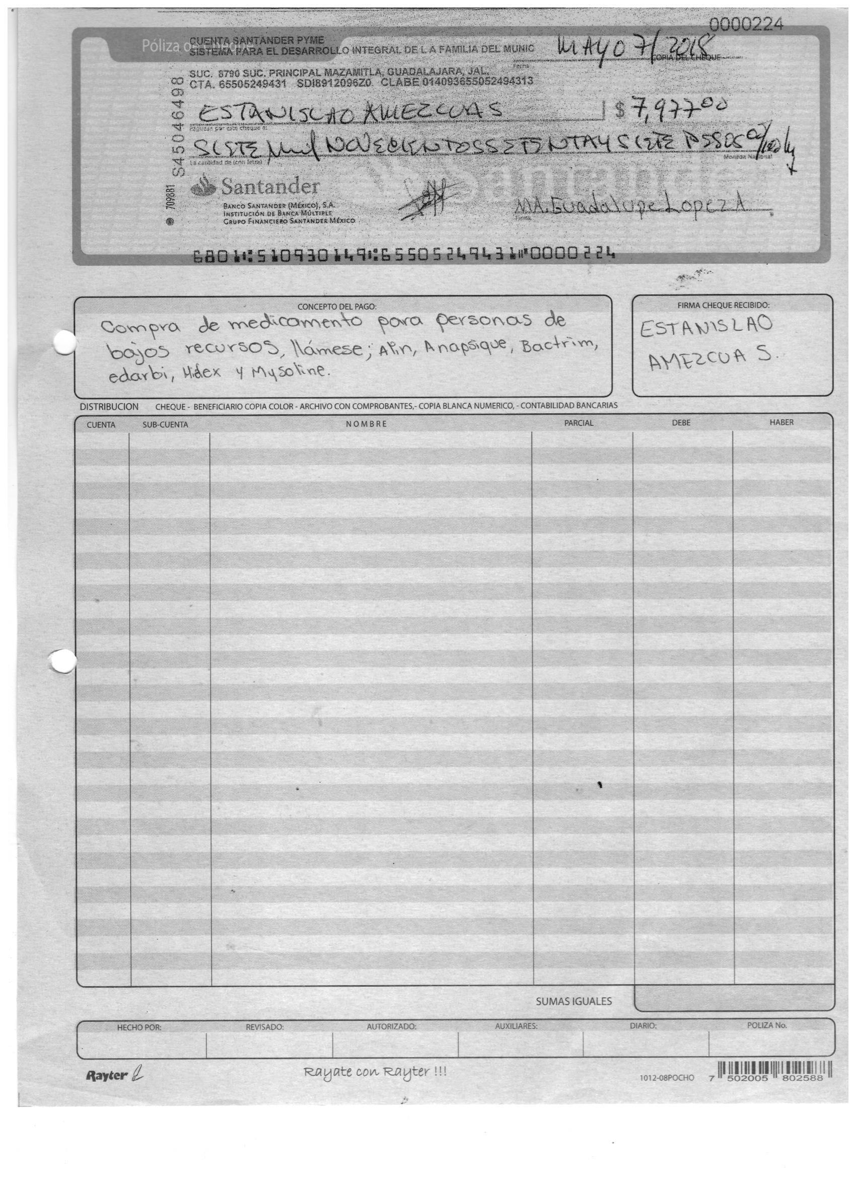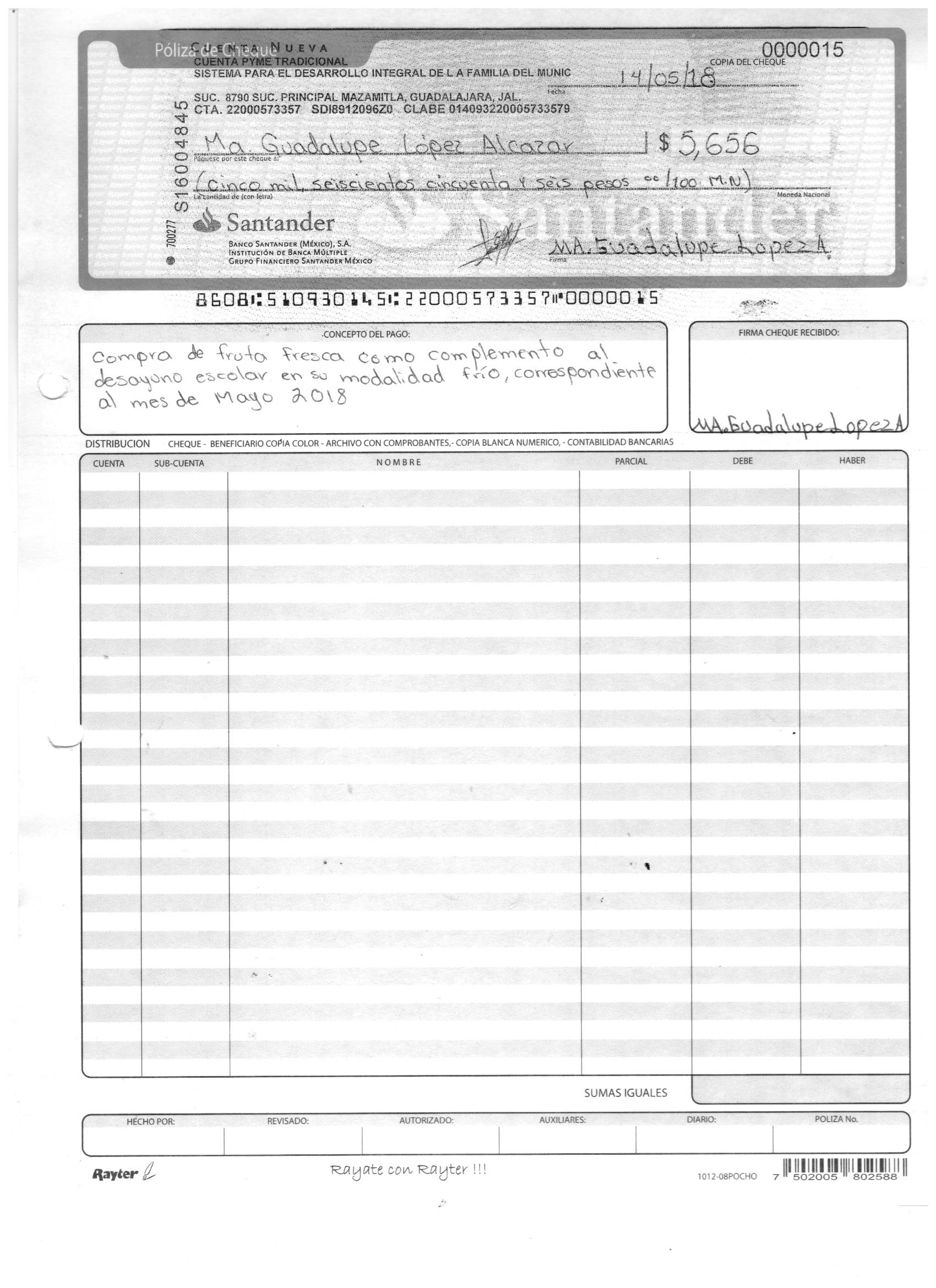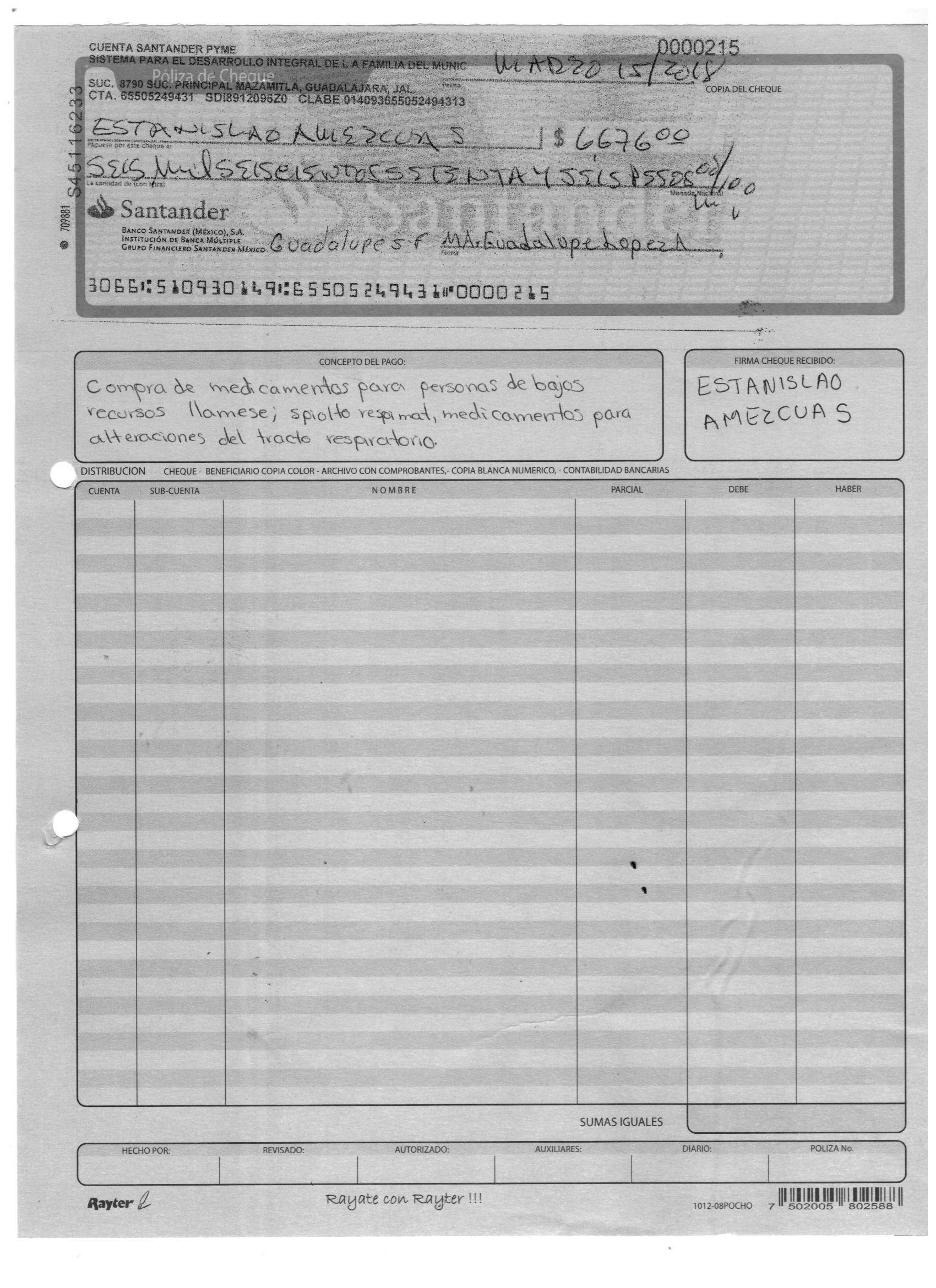 poliza de cheque,no.0120