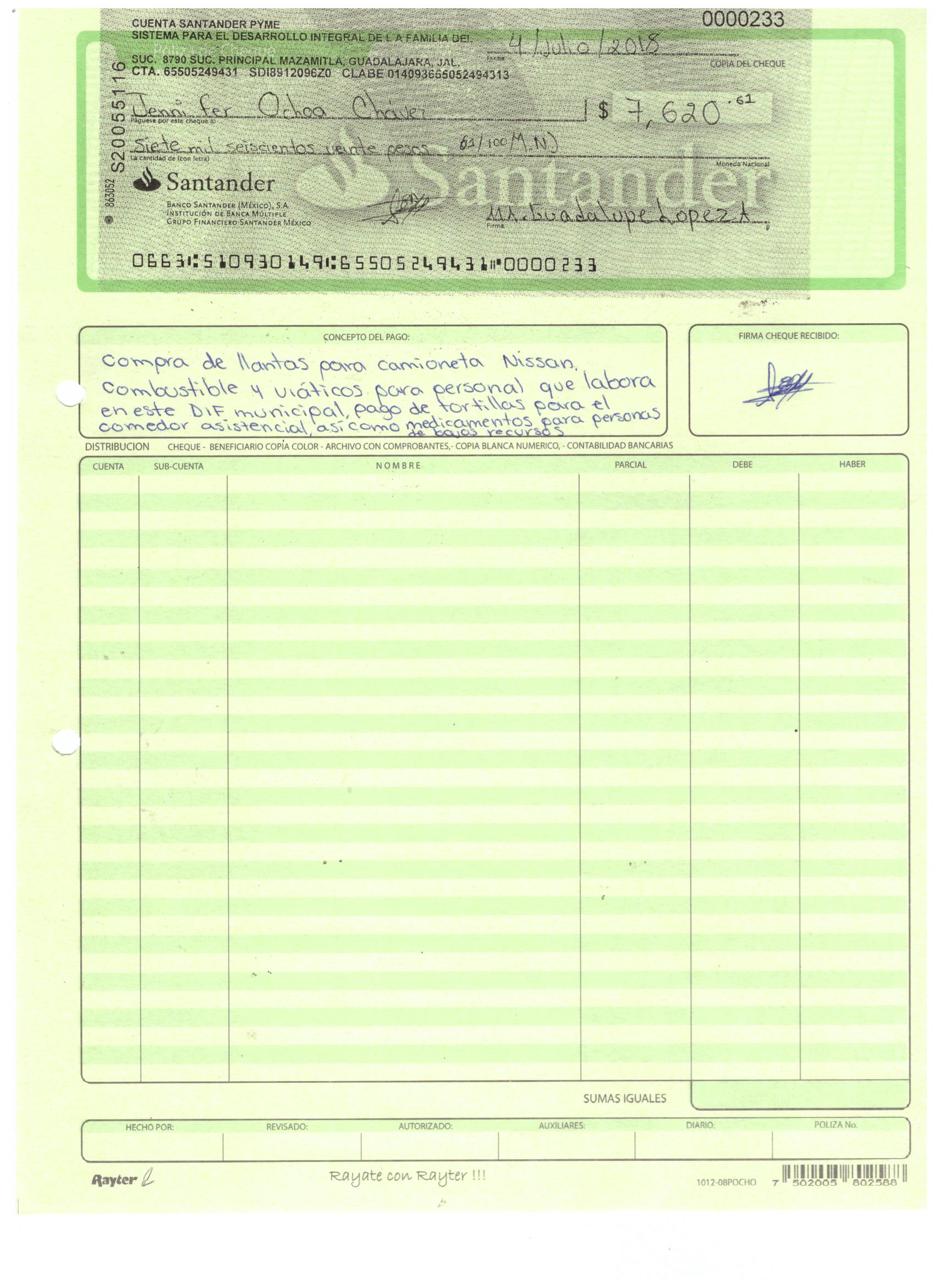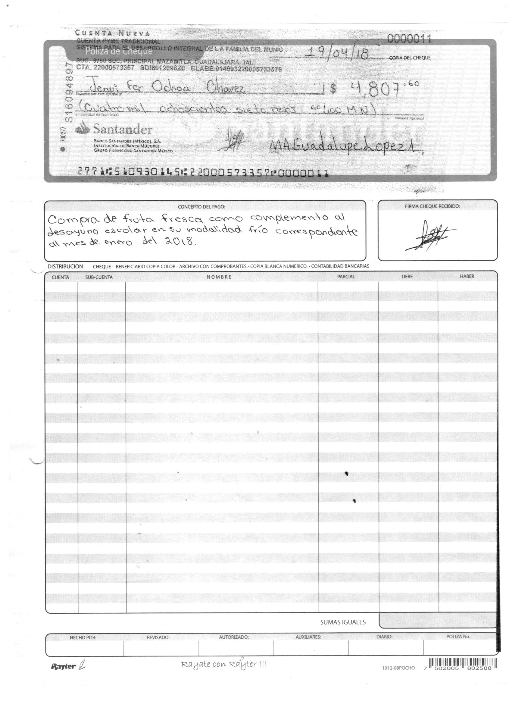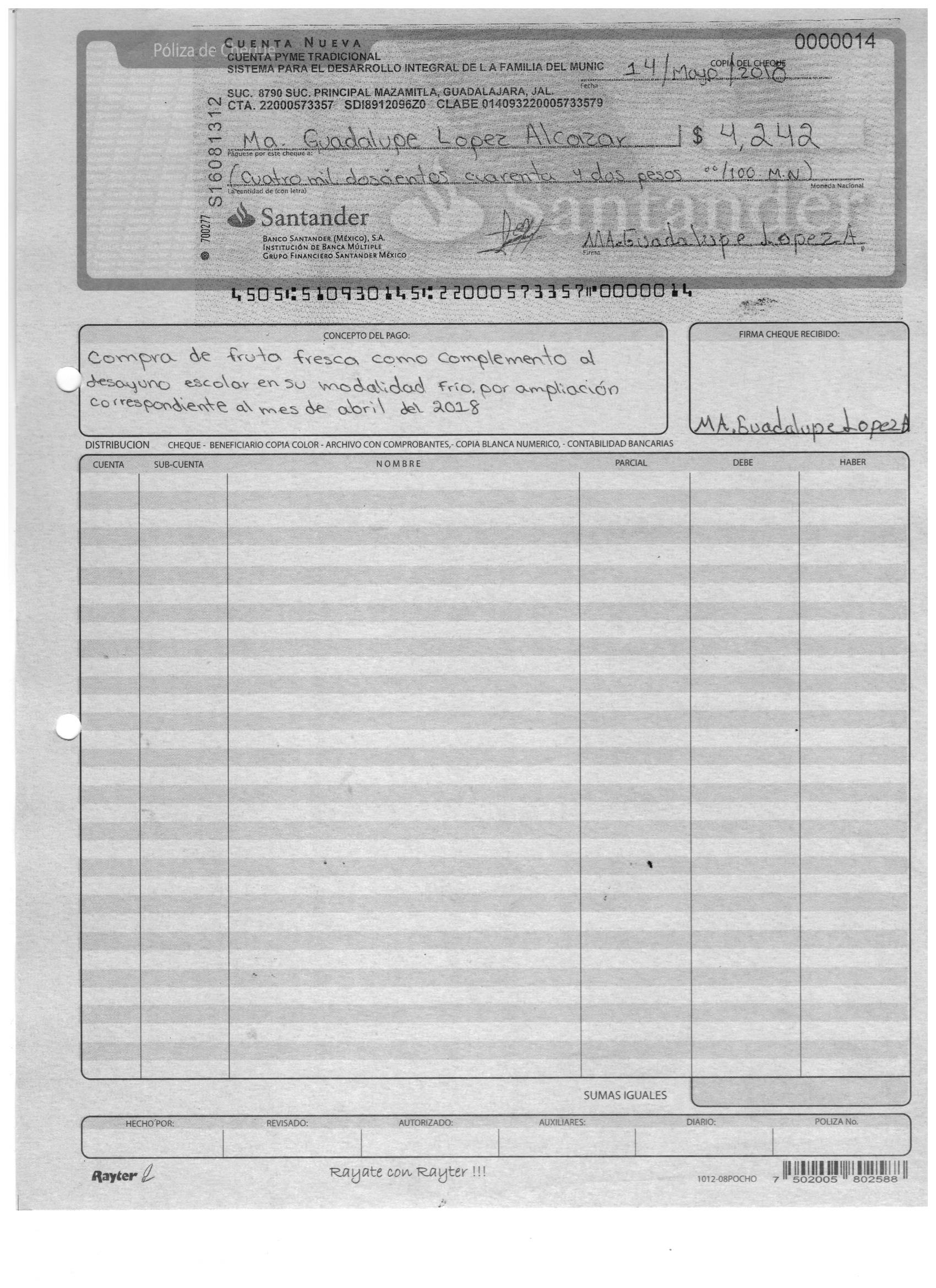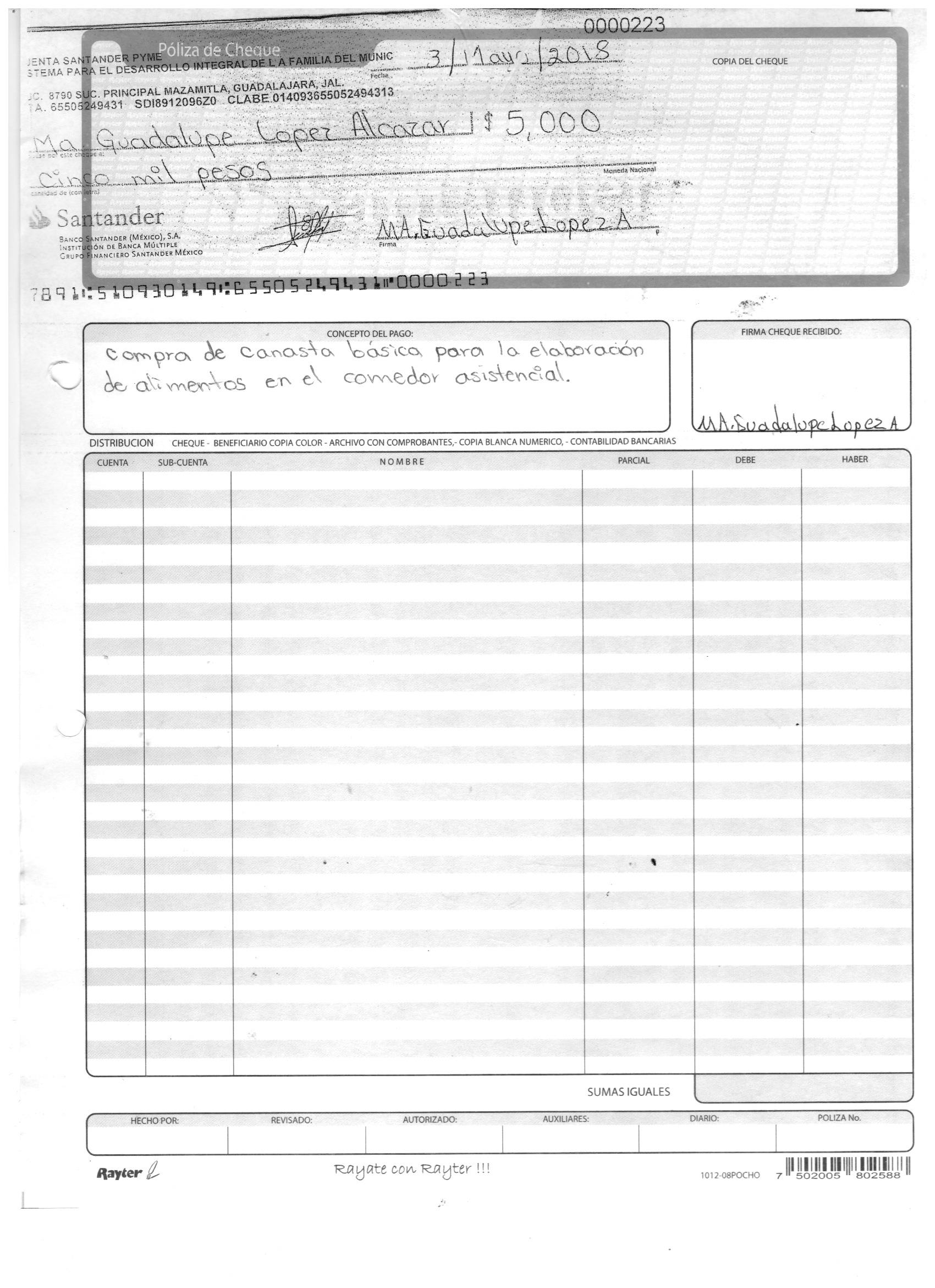 poliza de cheque,no.0120