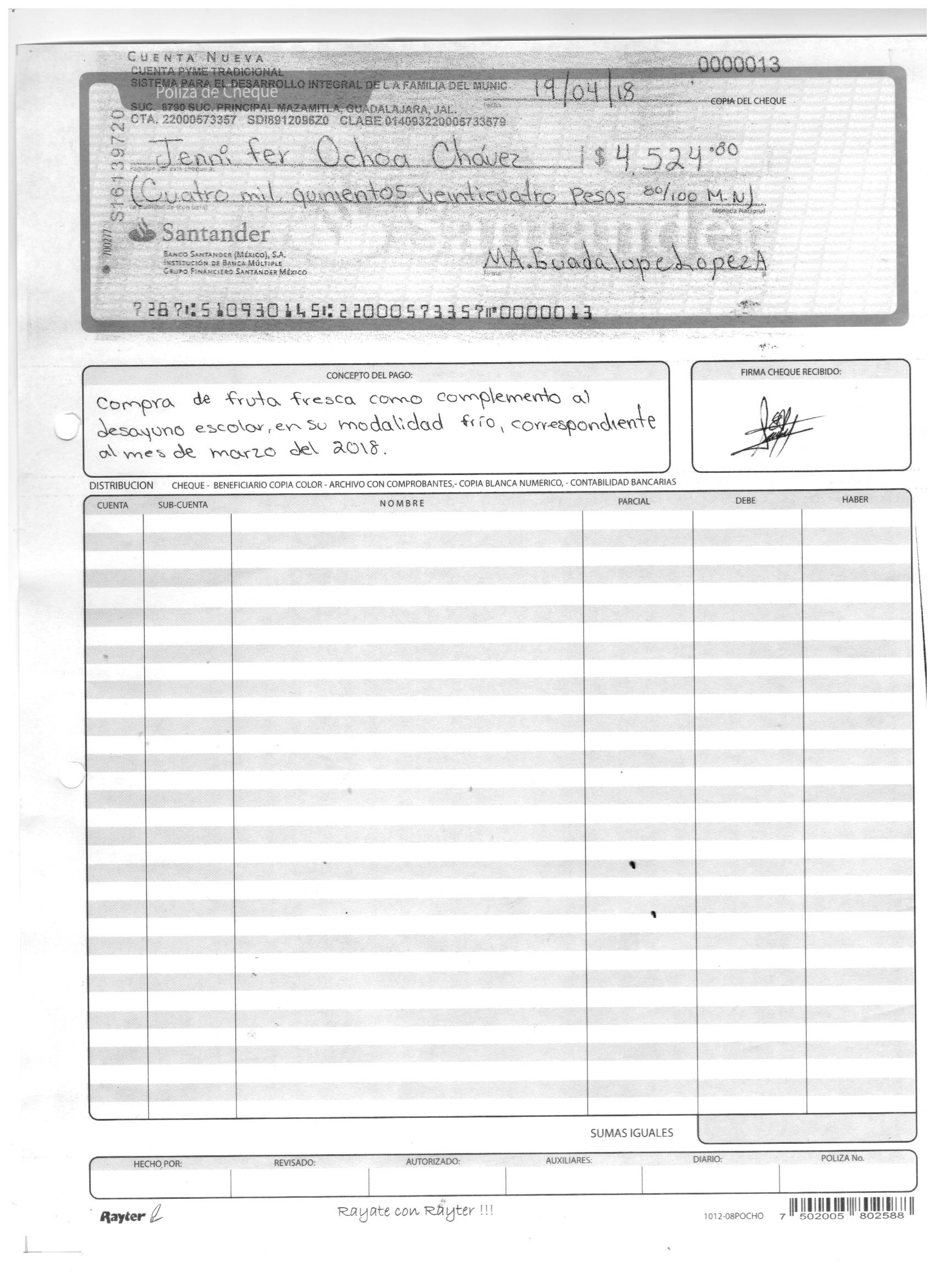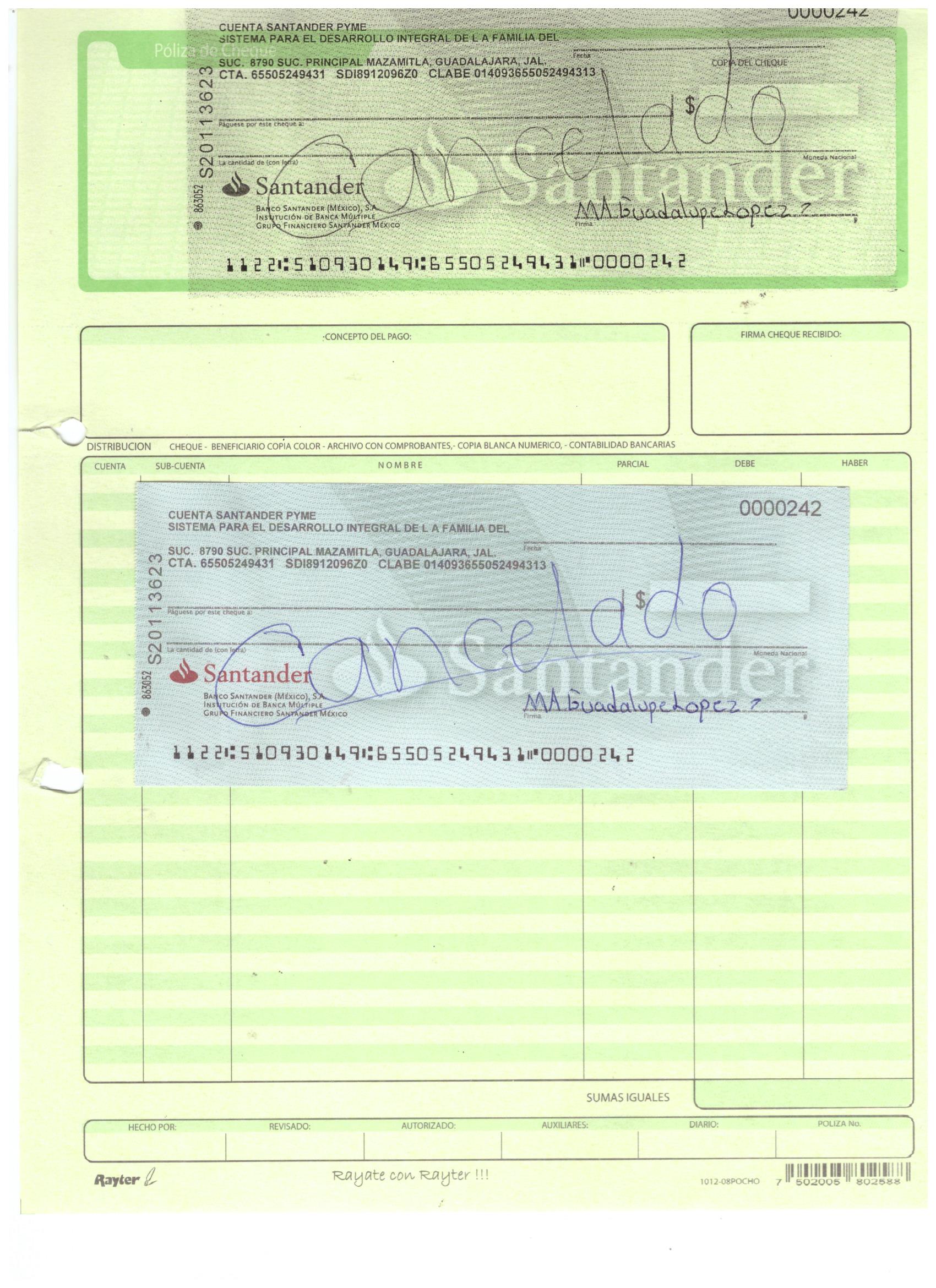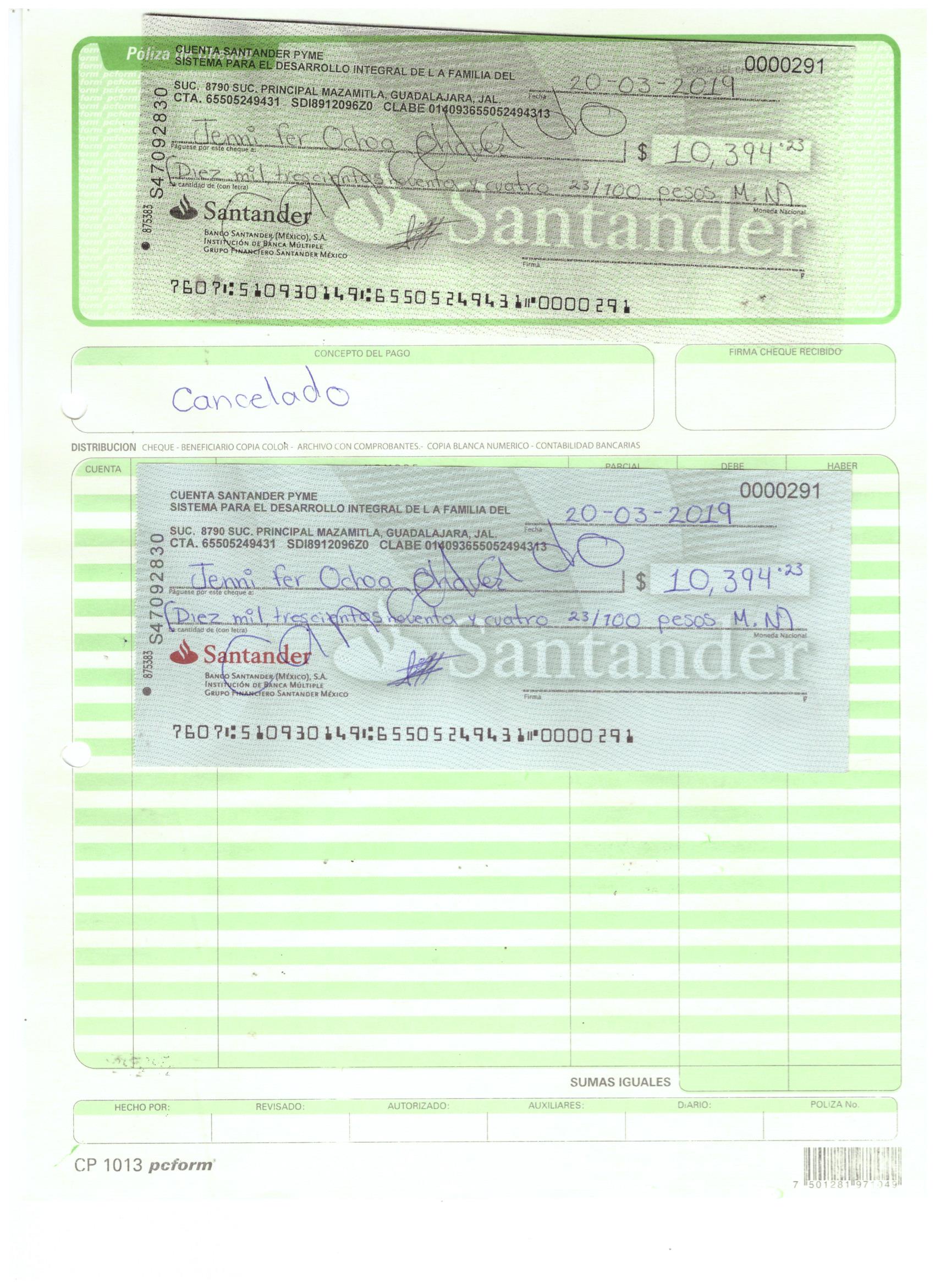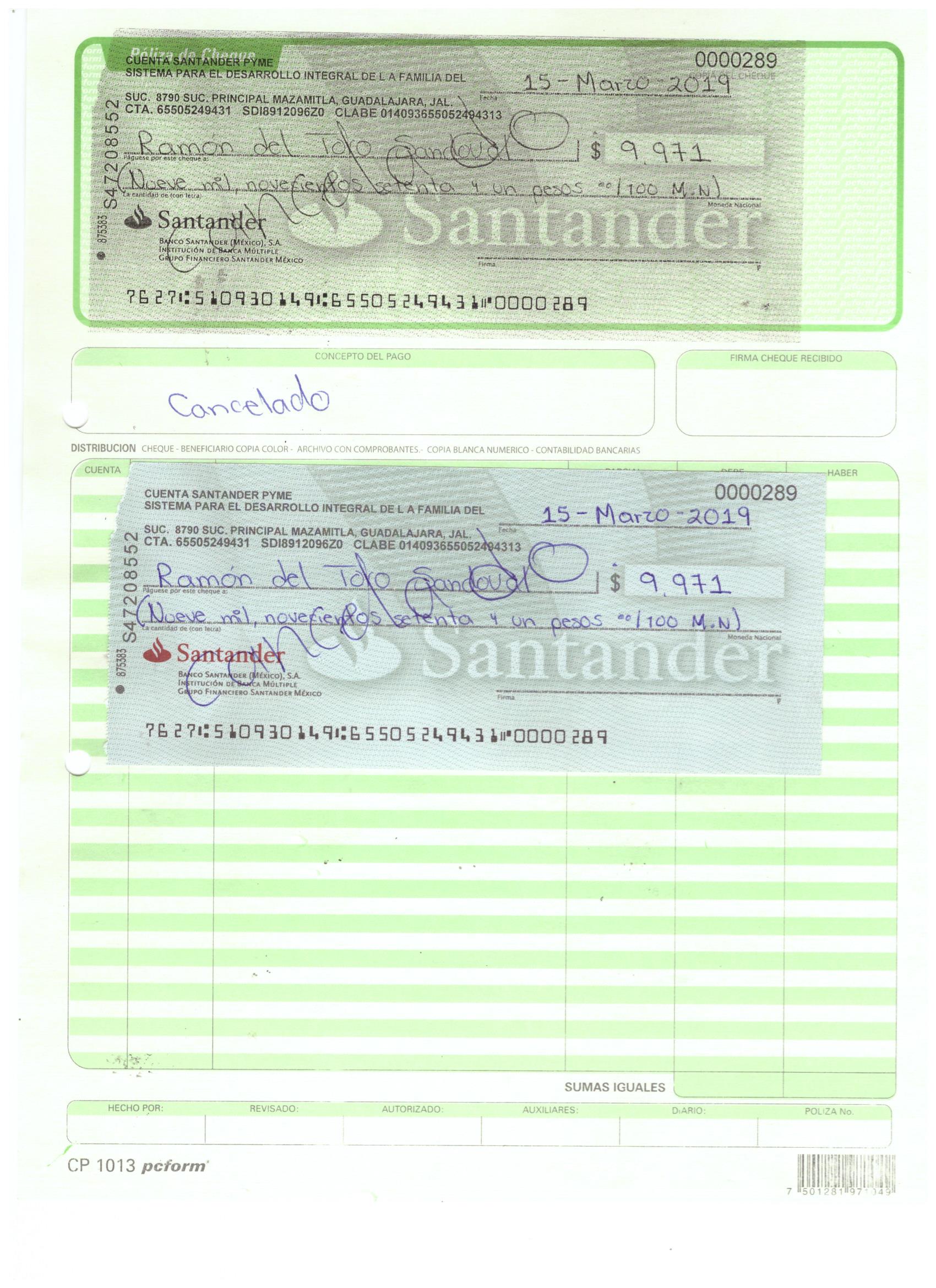 poliza de cheque,no.0130