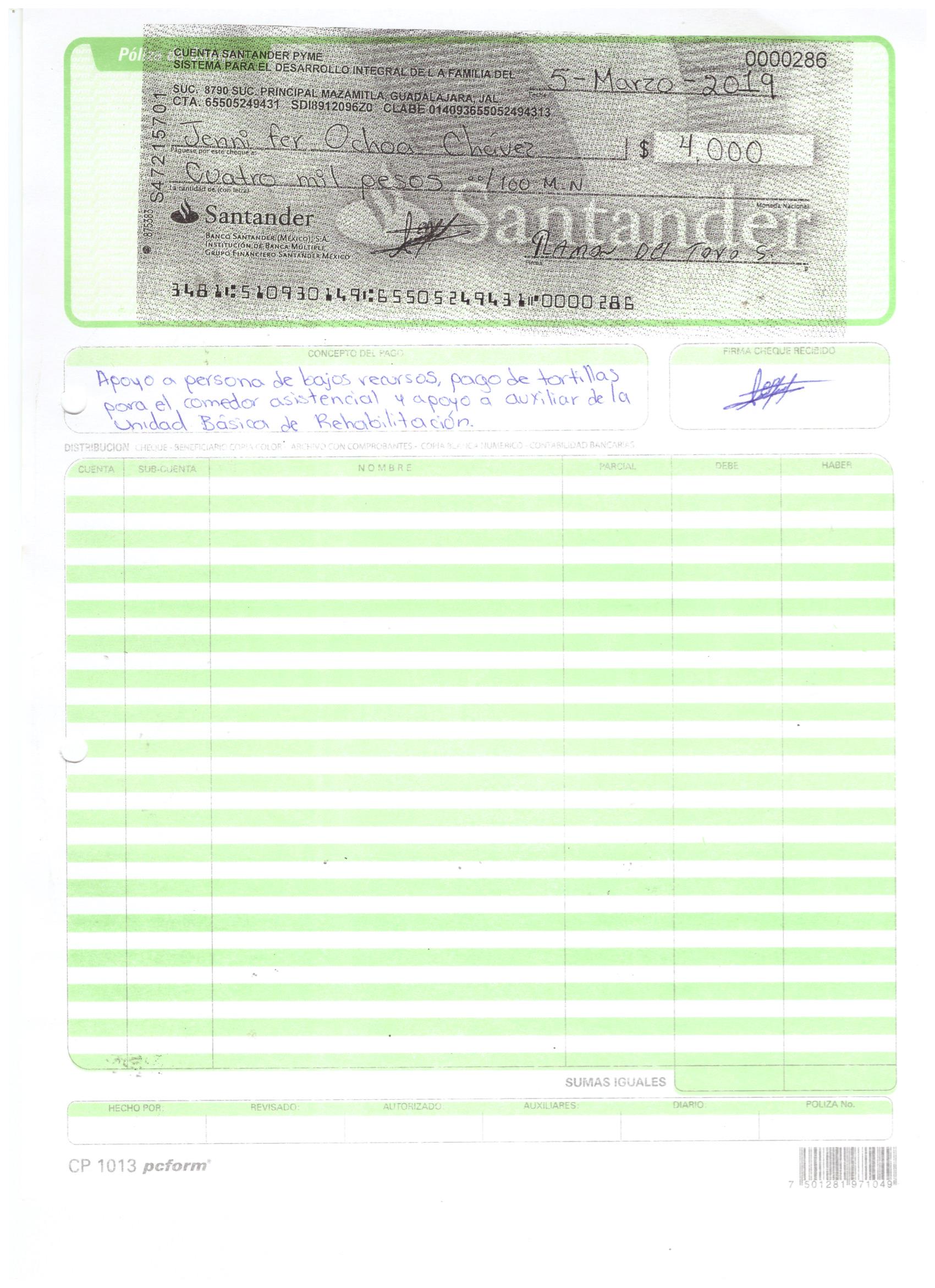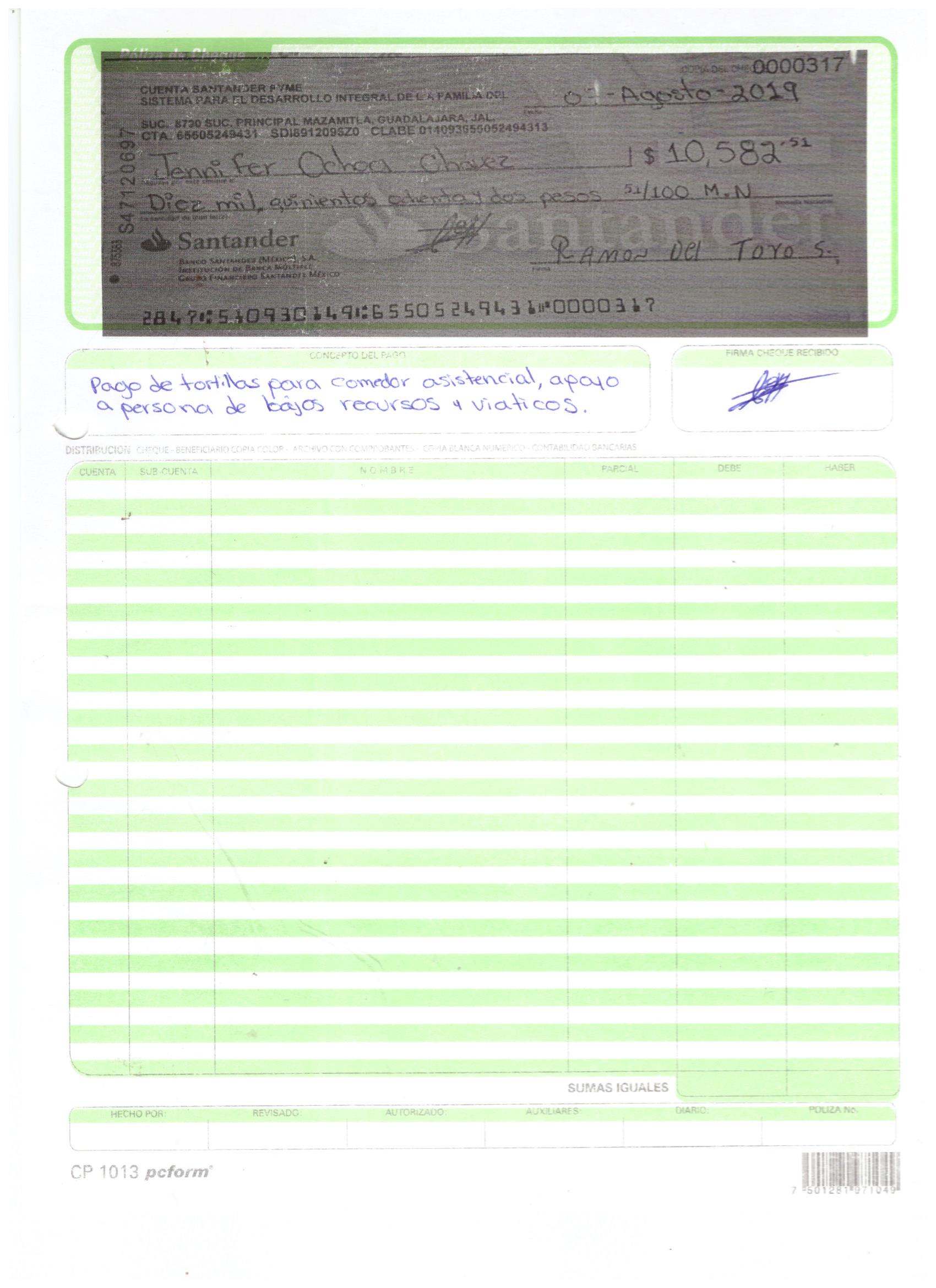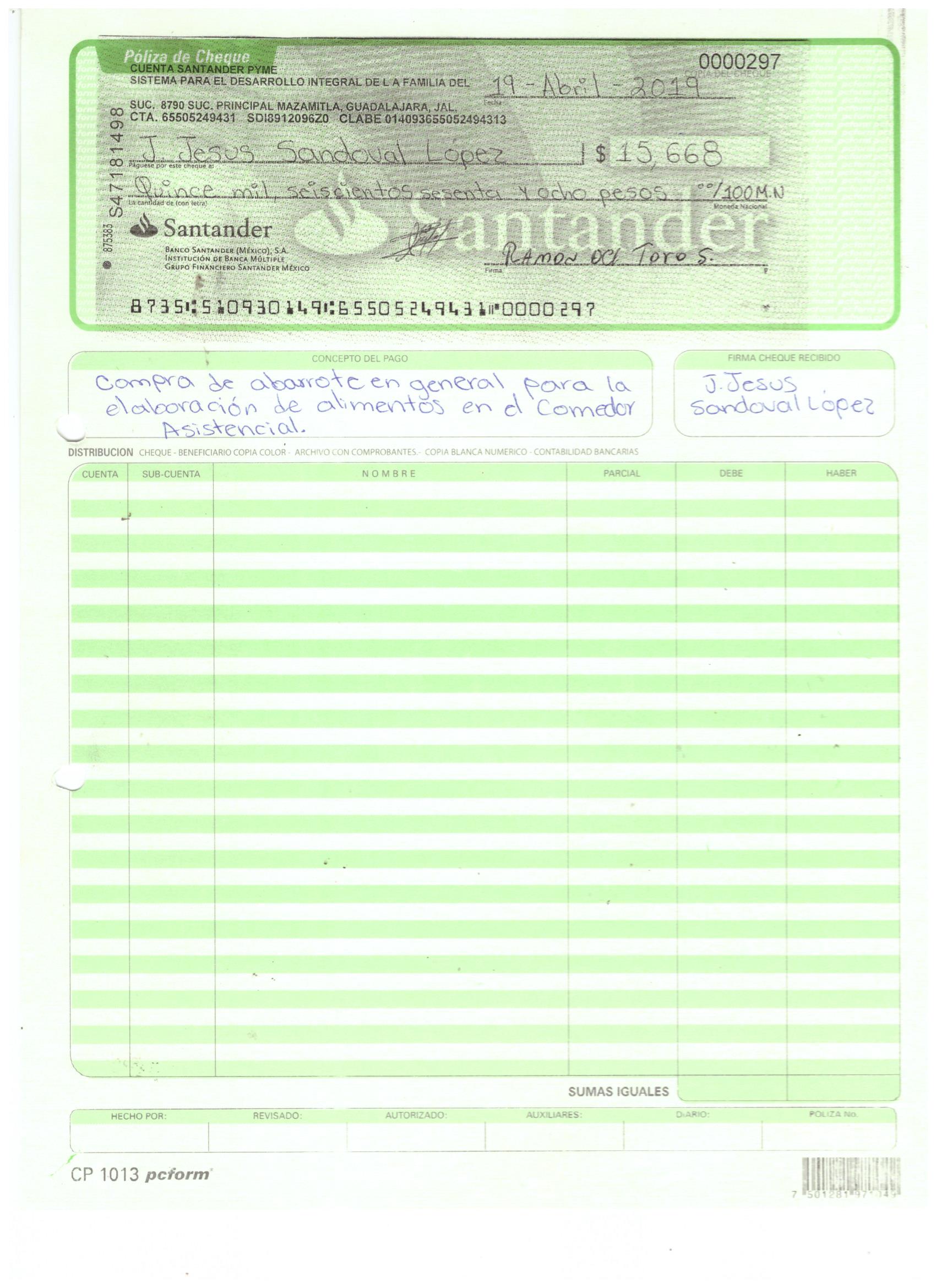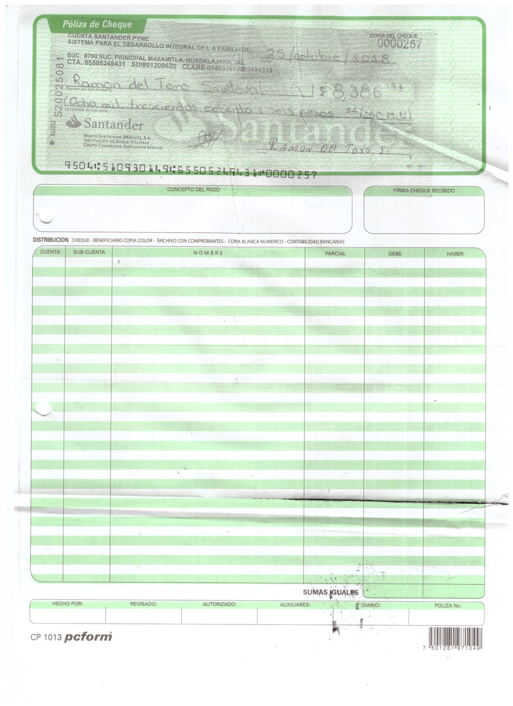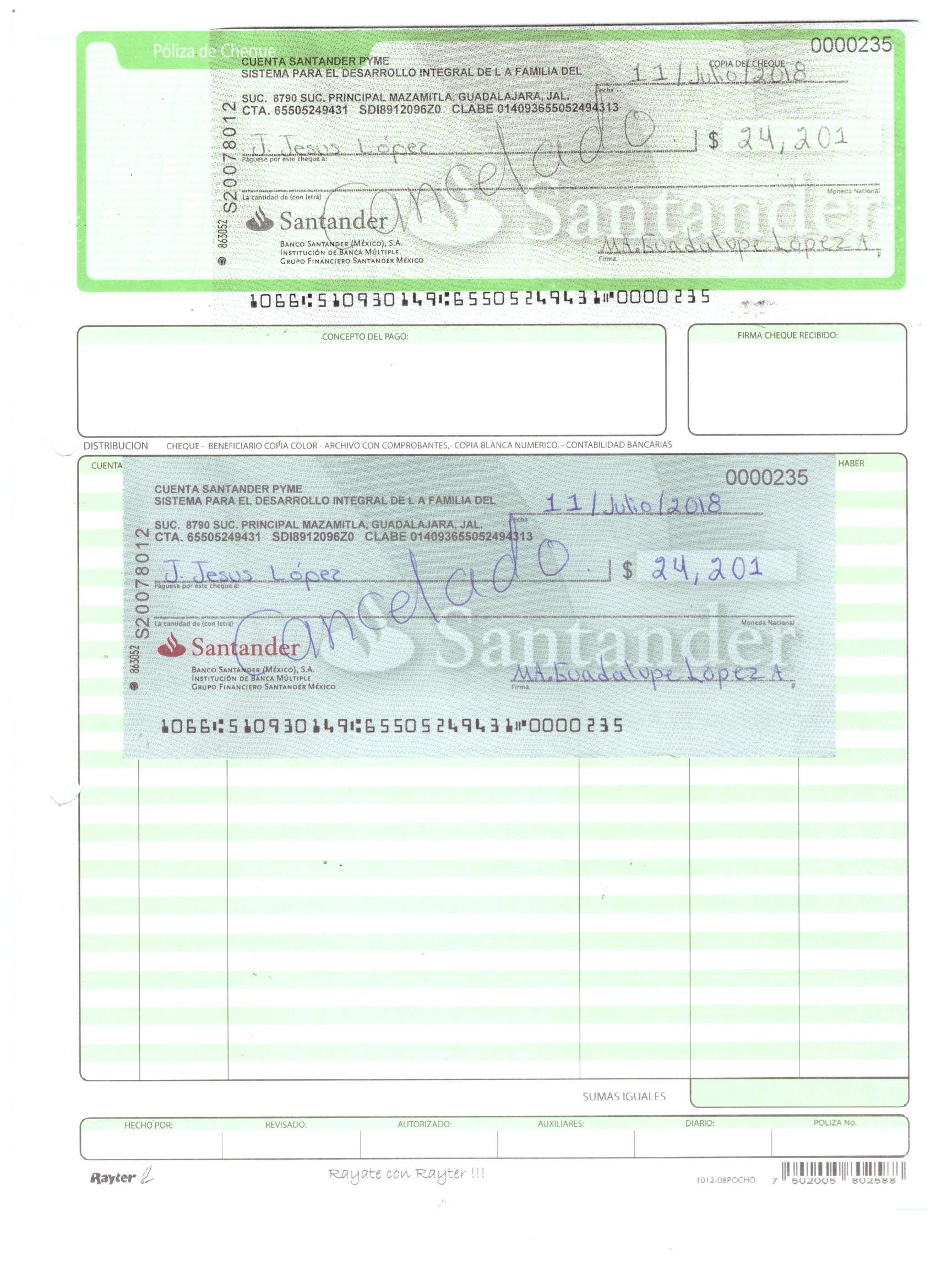 poliza de cheque,no.0130