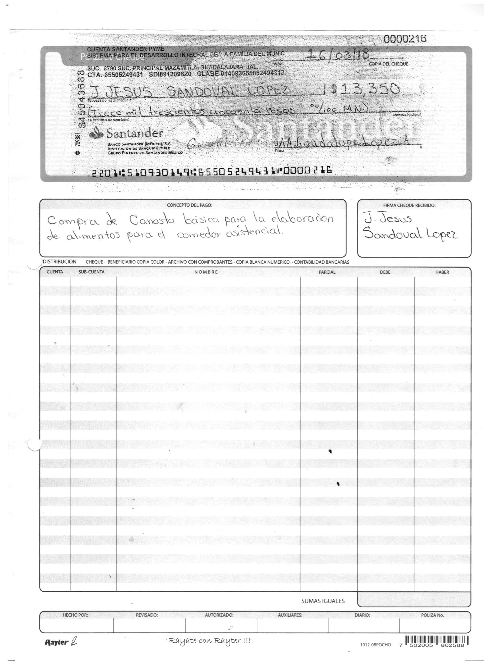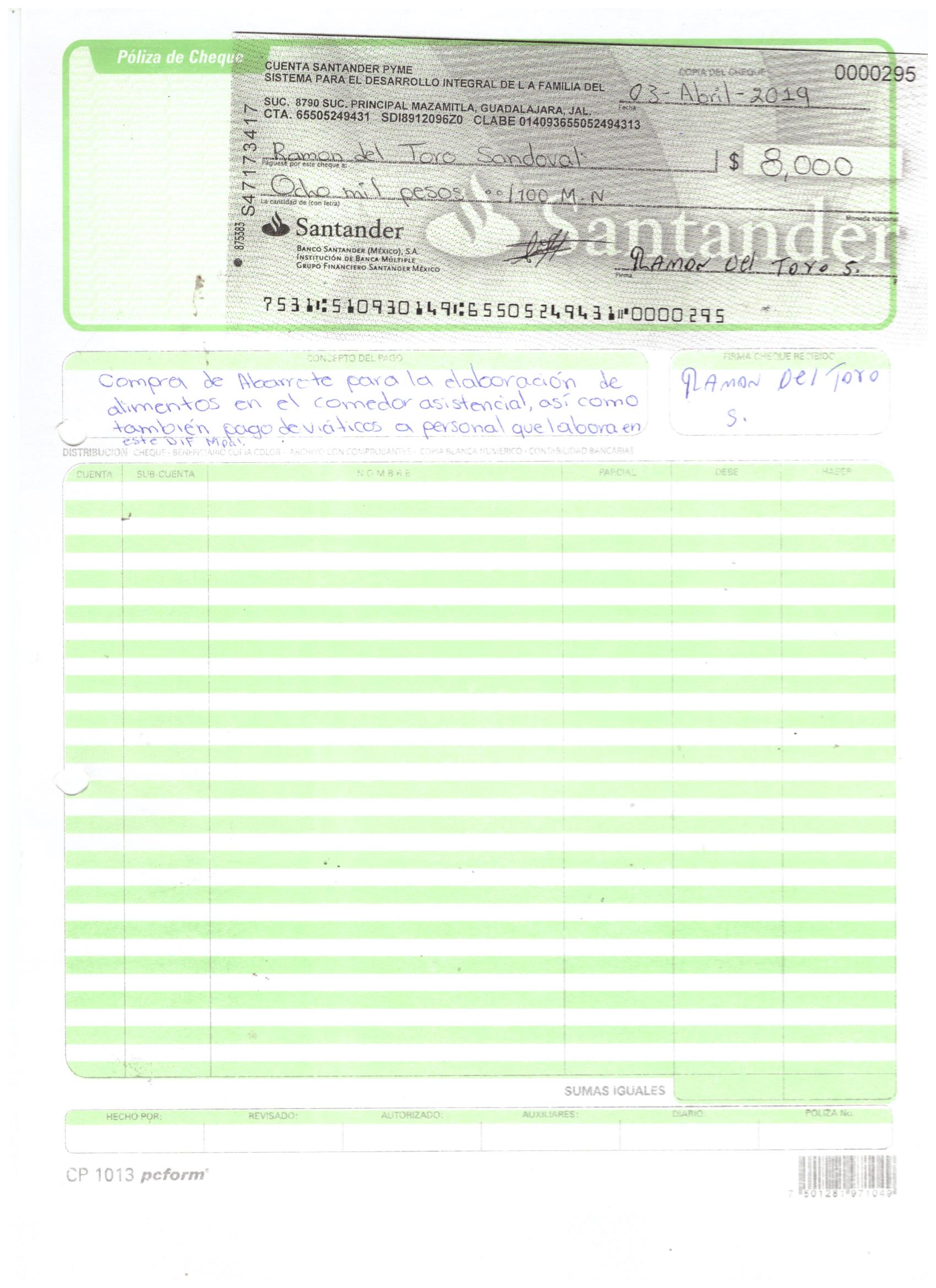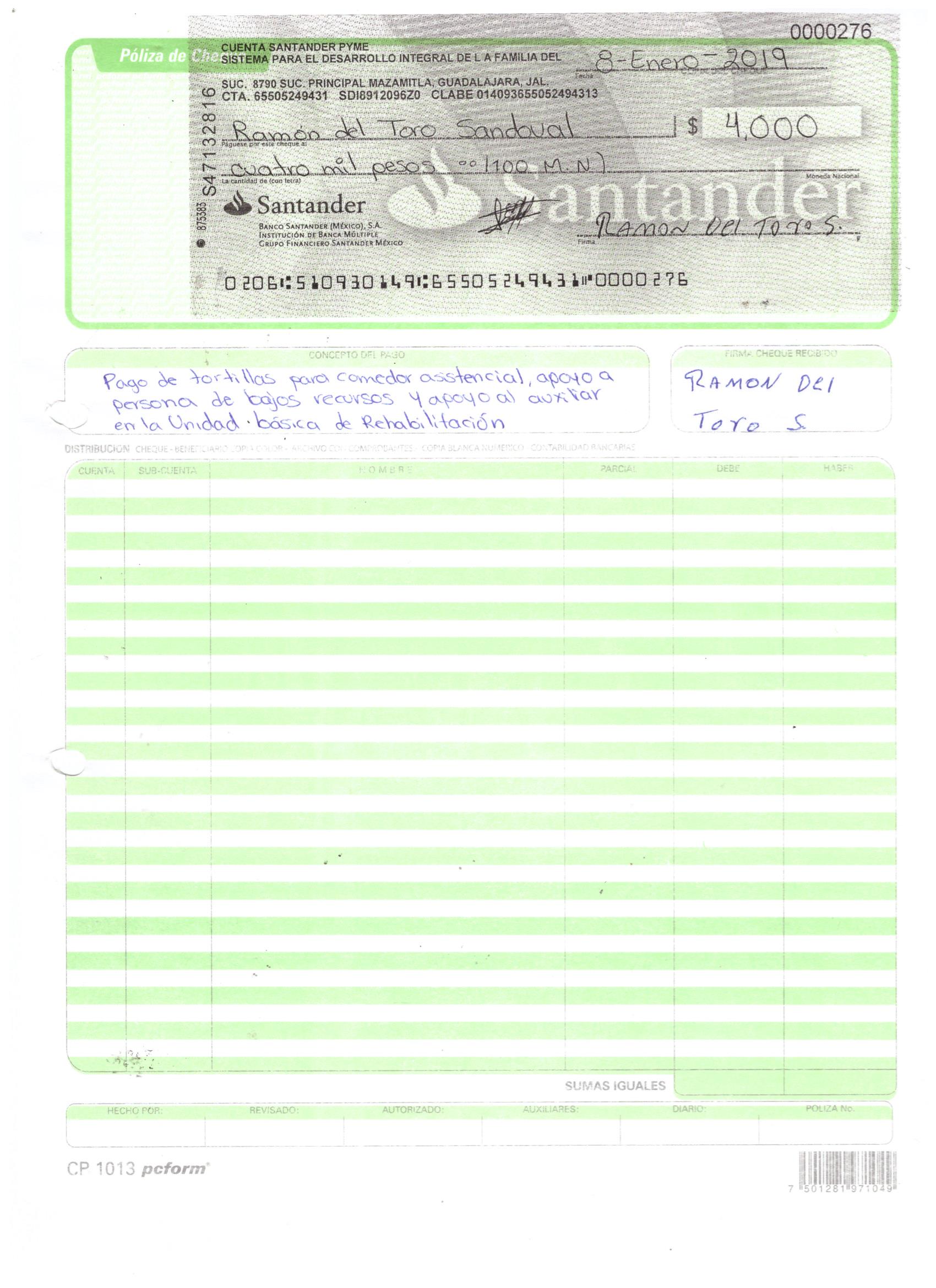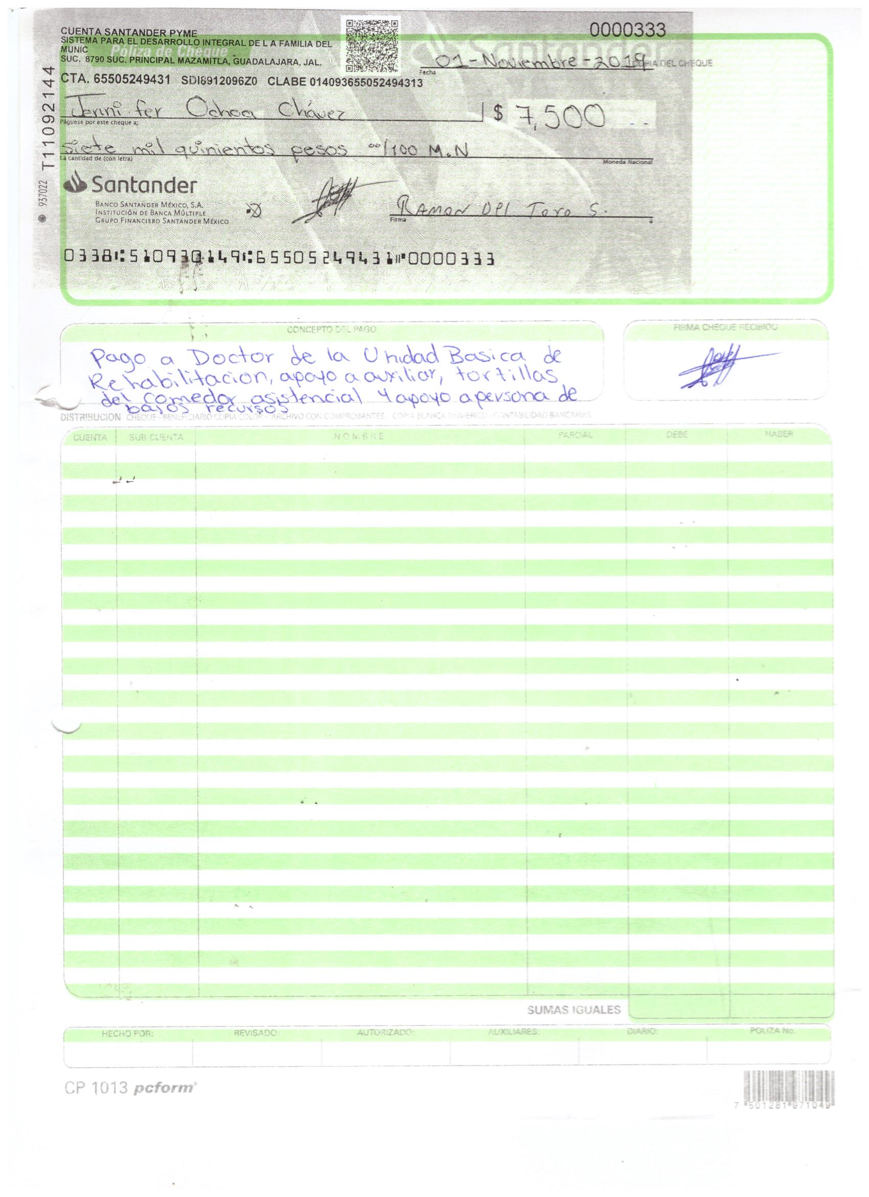 poliza de cheque,no.0130