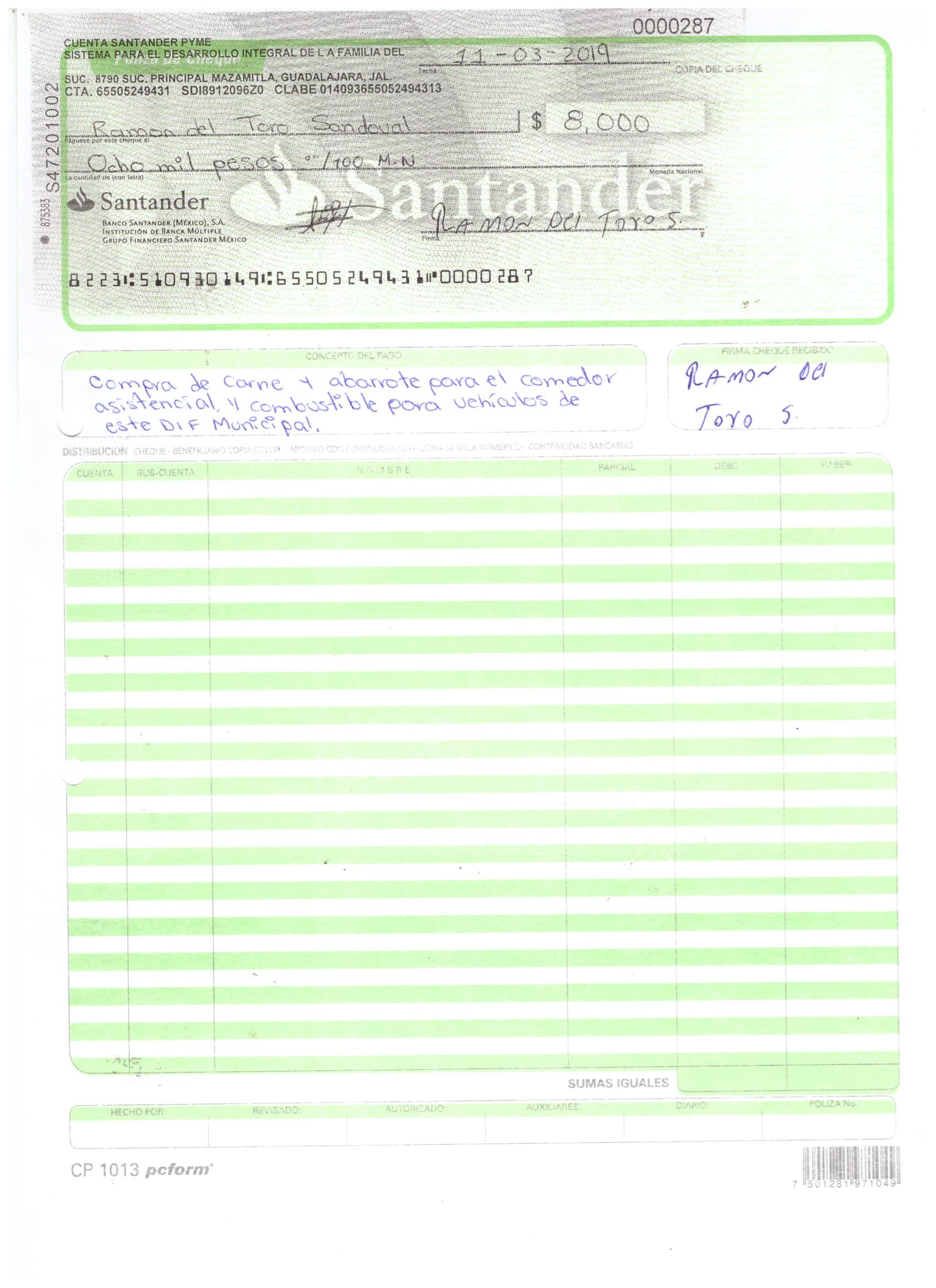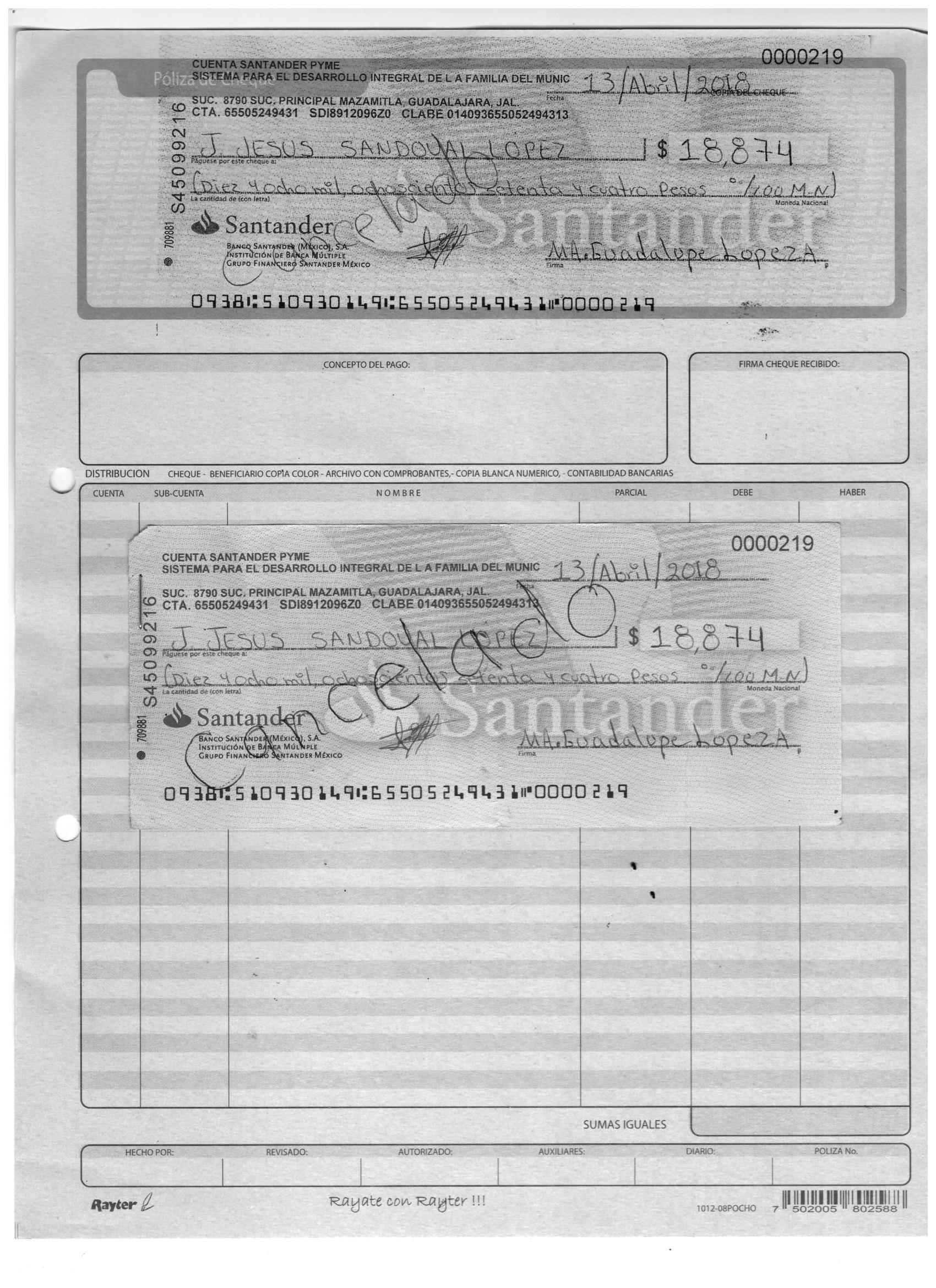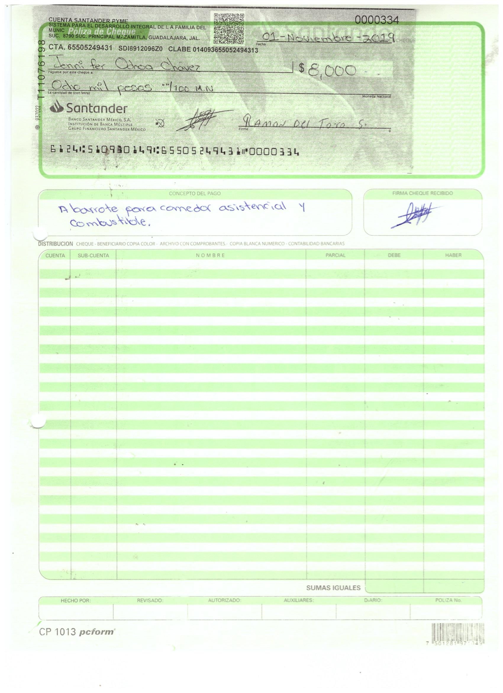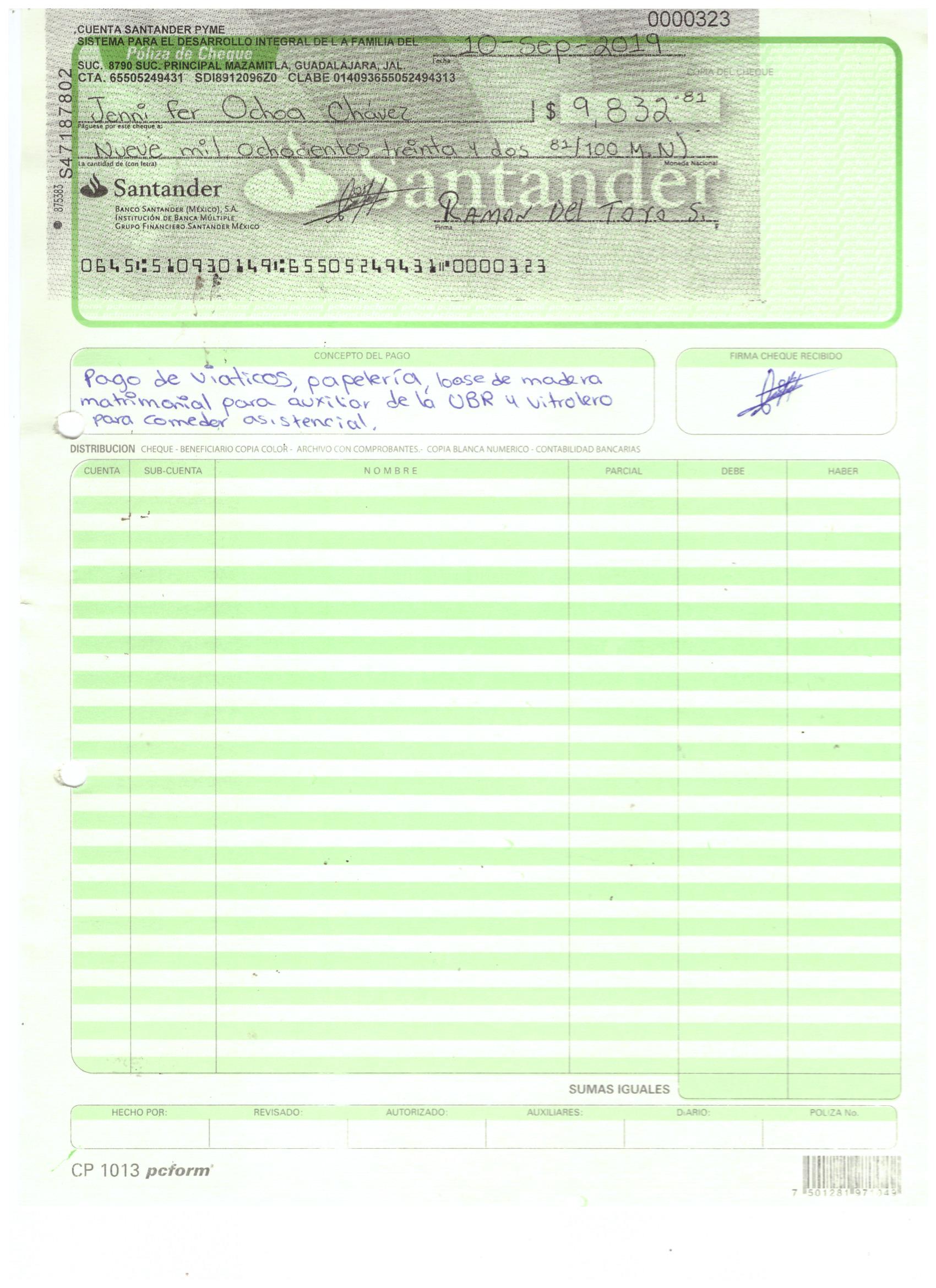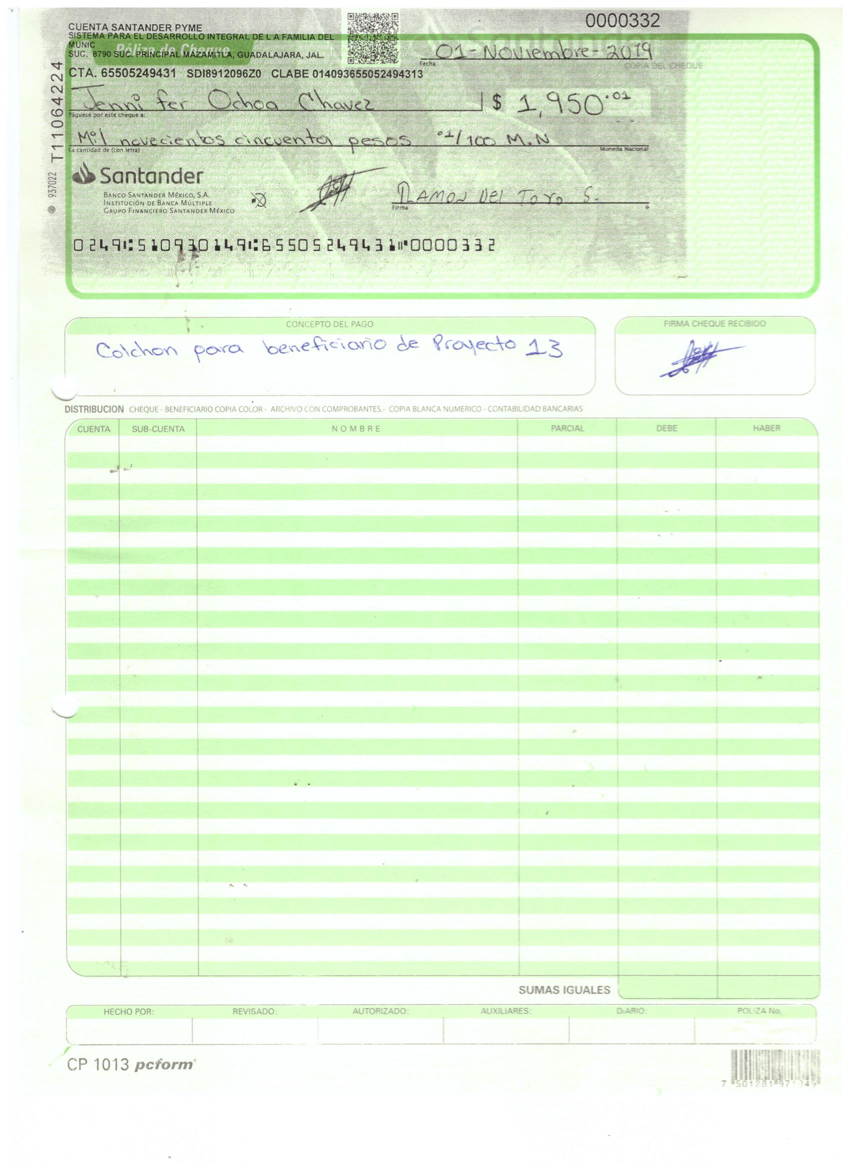 poliza de cheque,no.0130