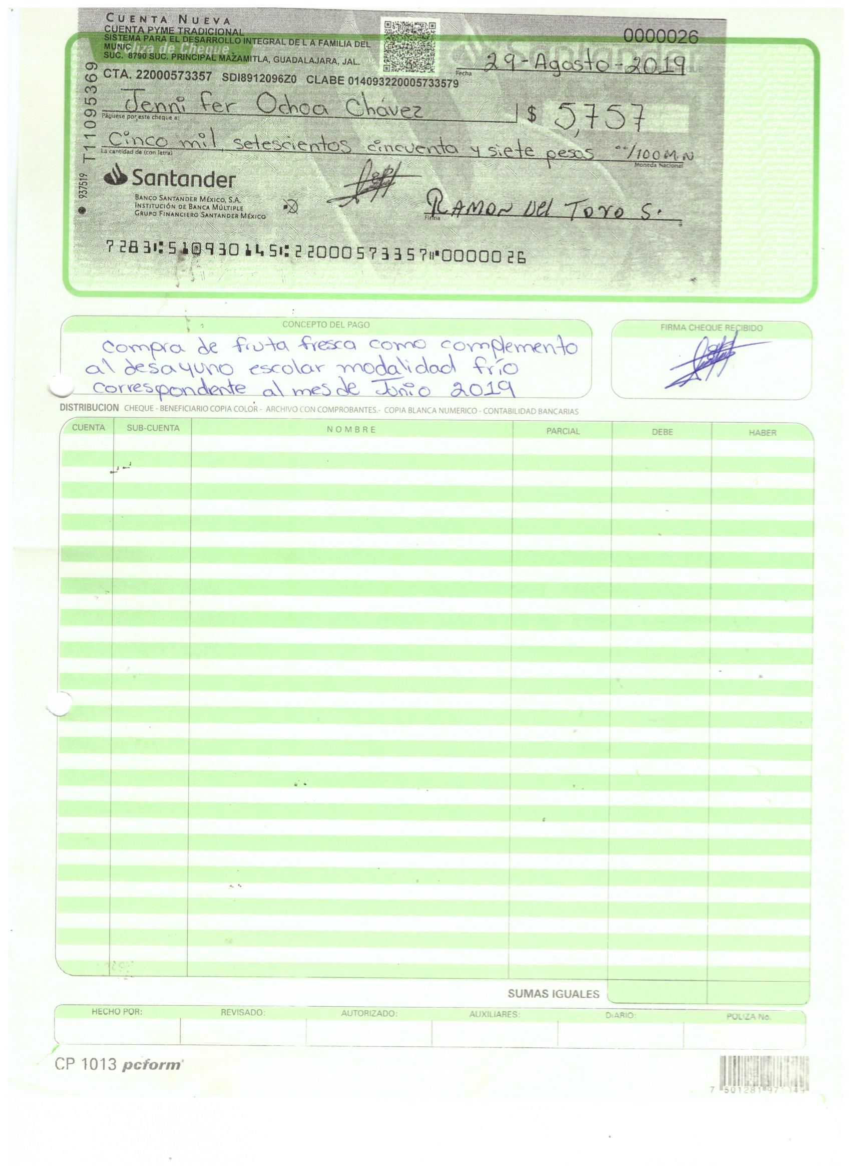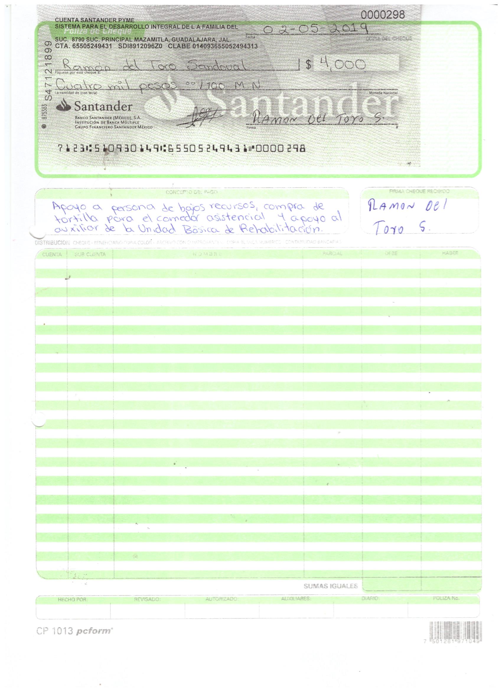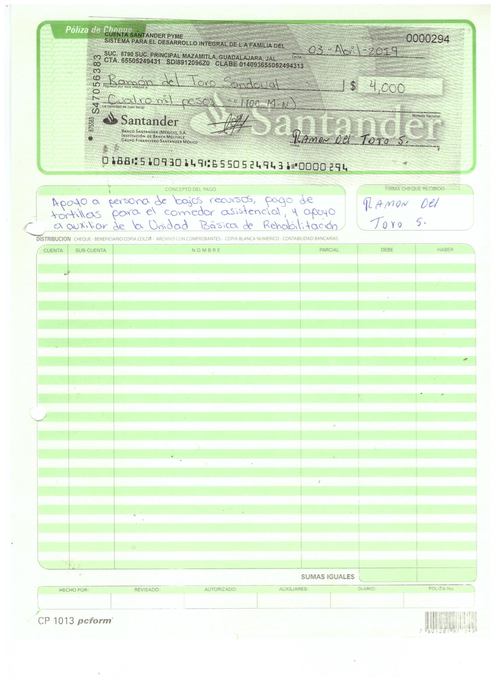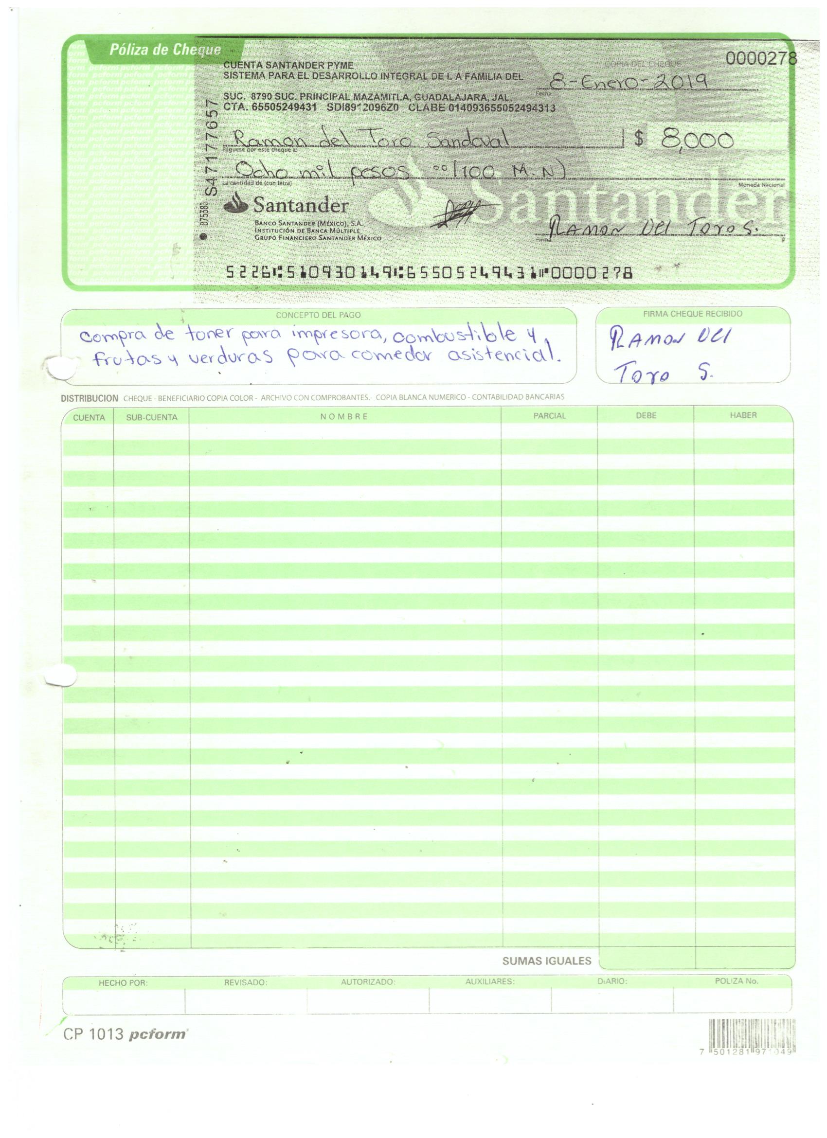 poliza de cheque,no.0130