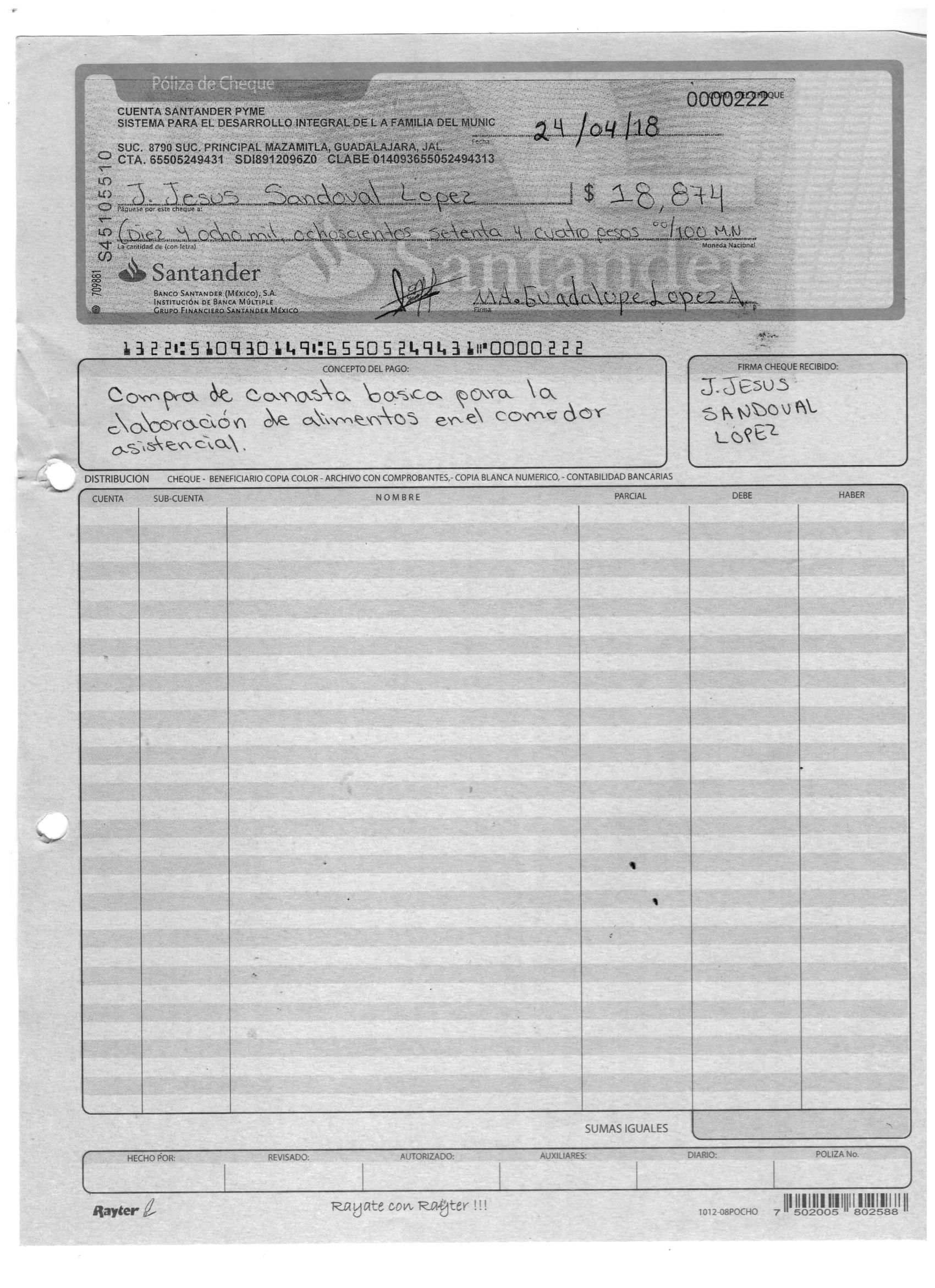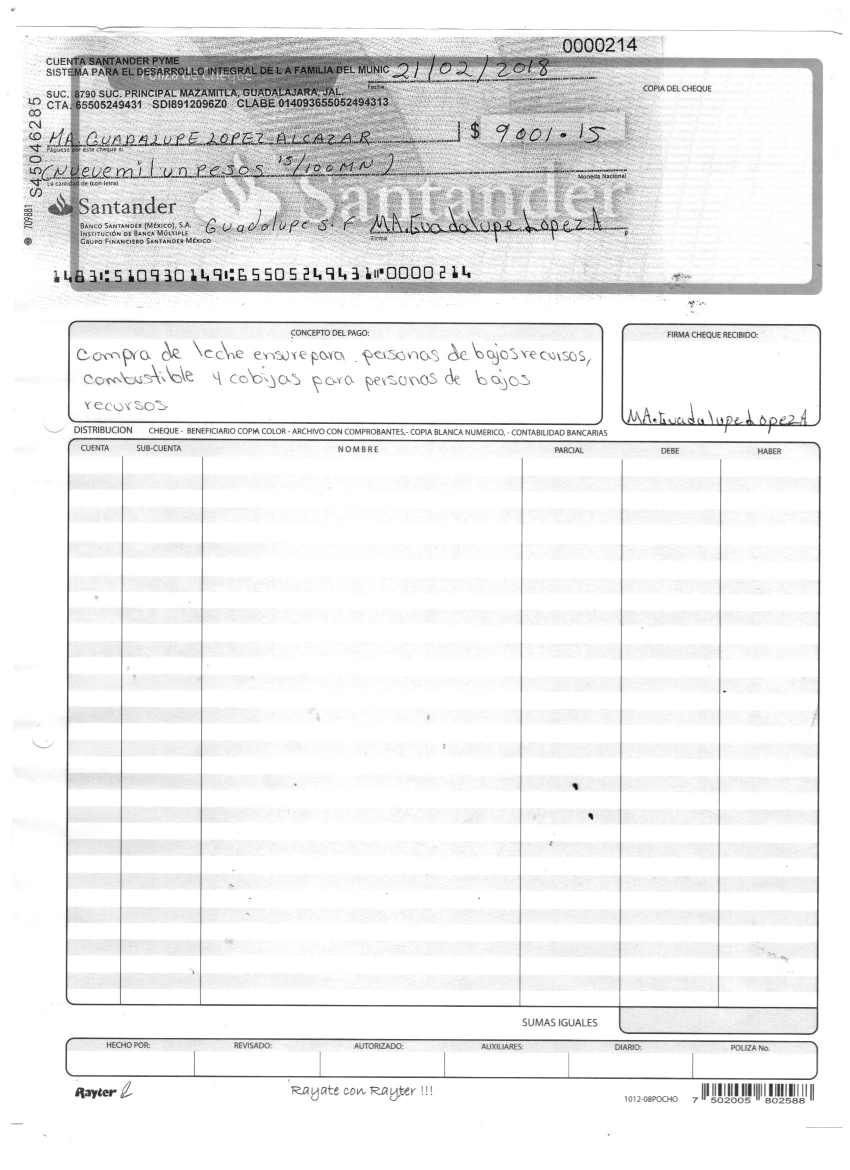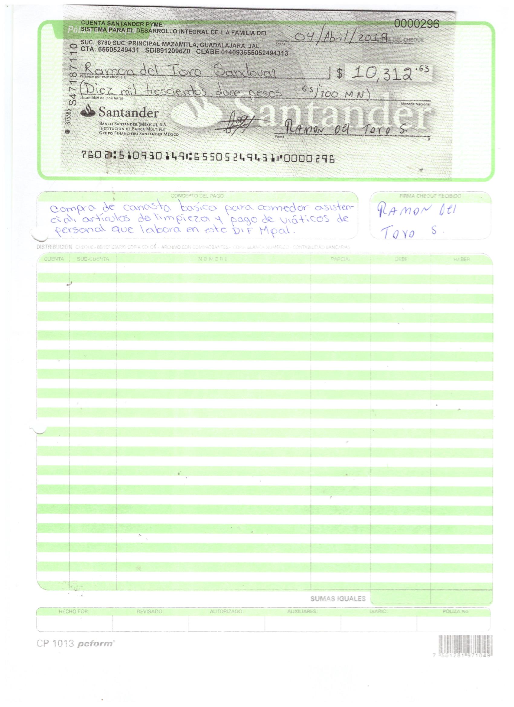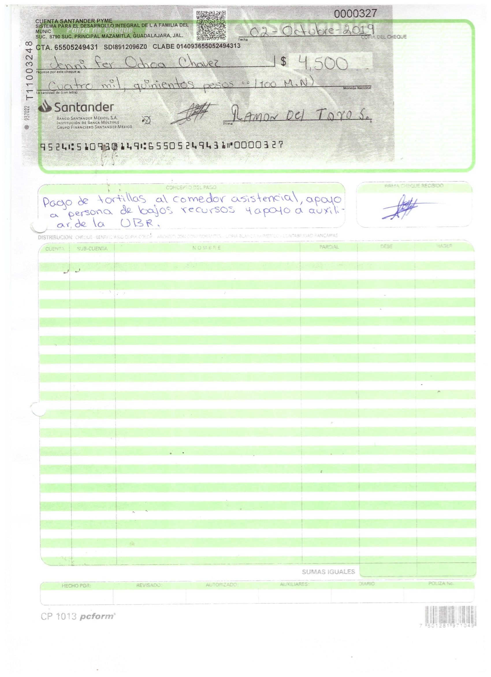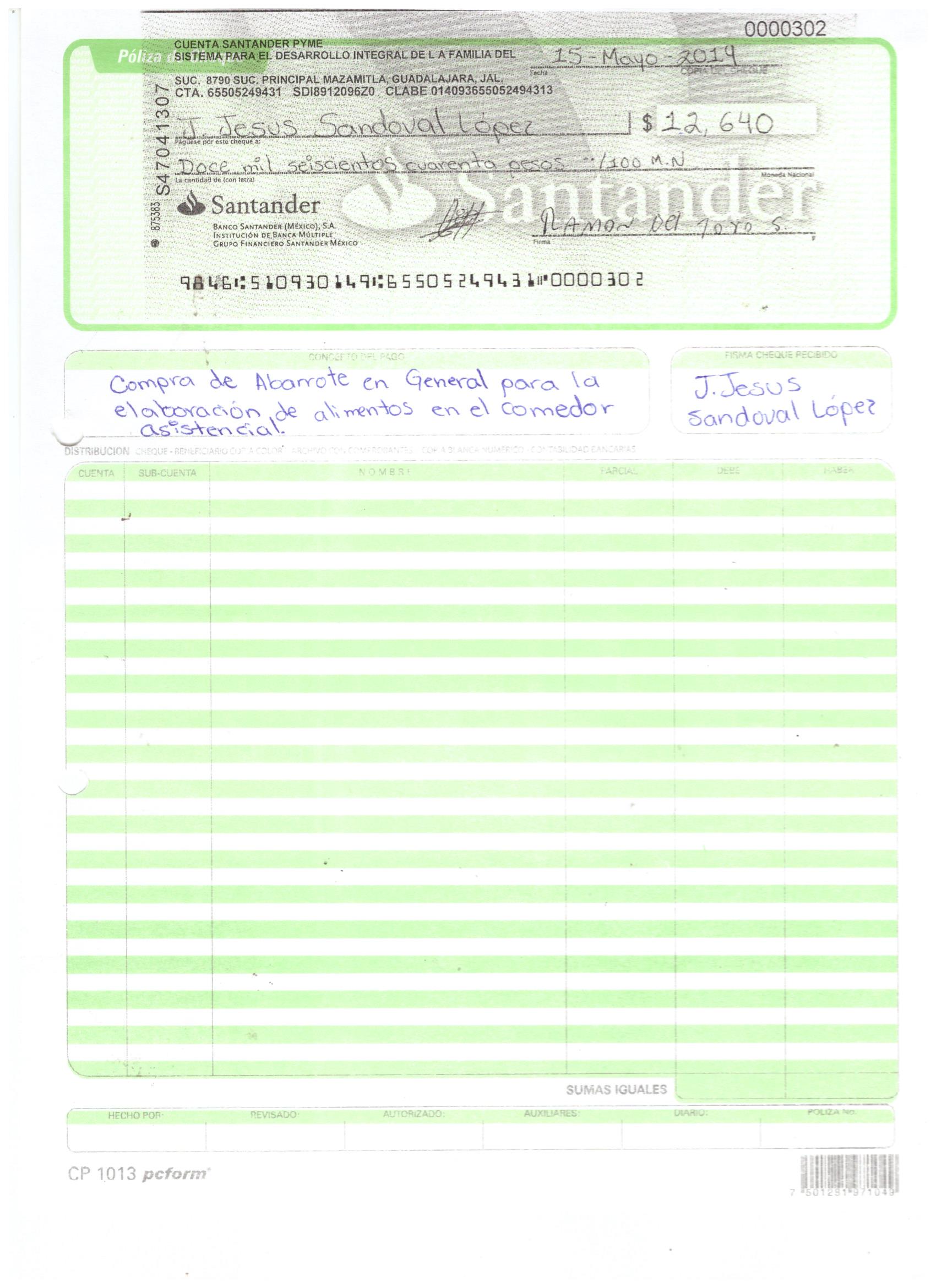 poliza de cheque,no.0130