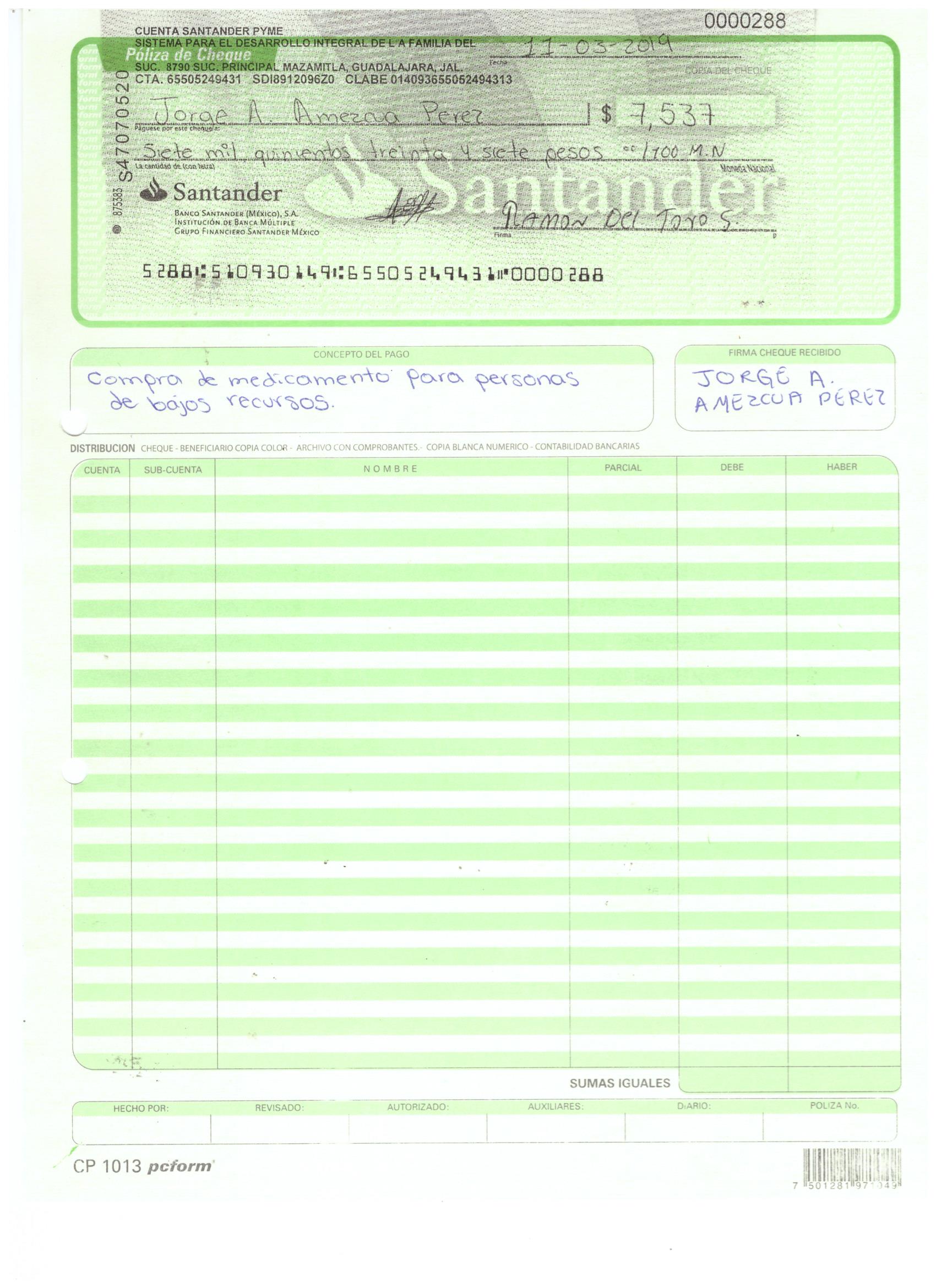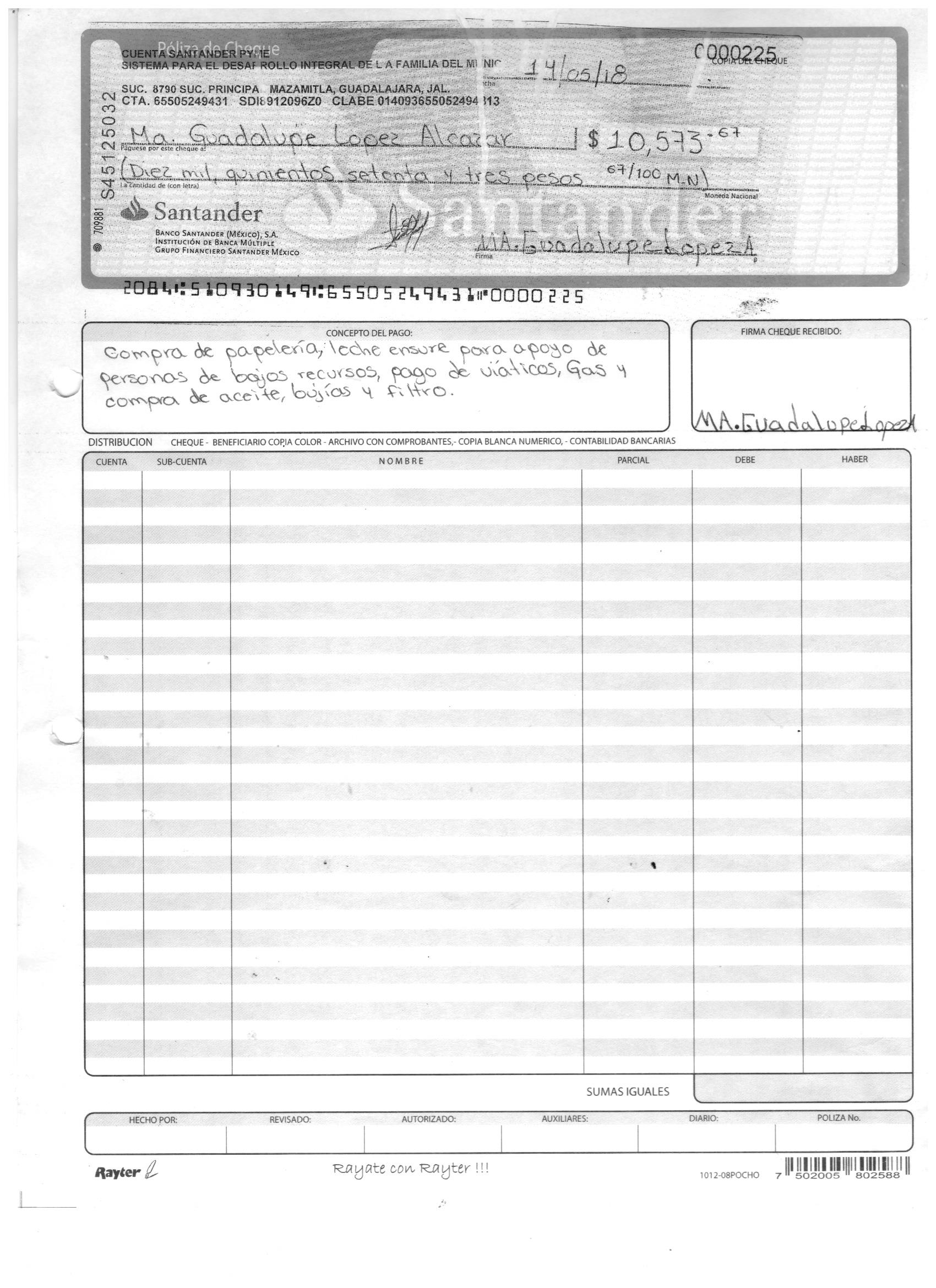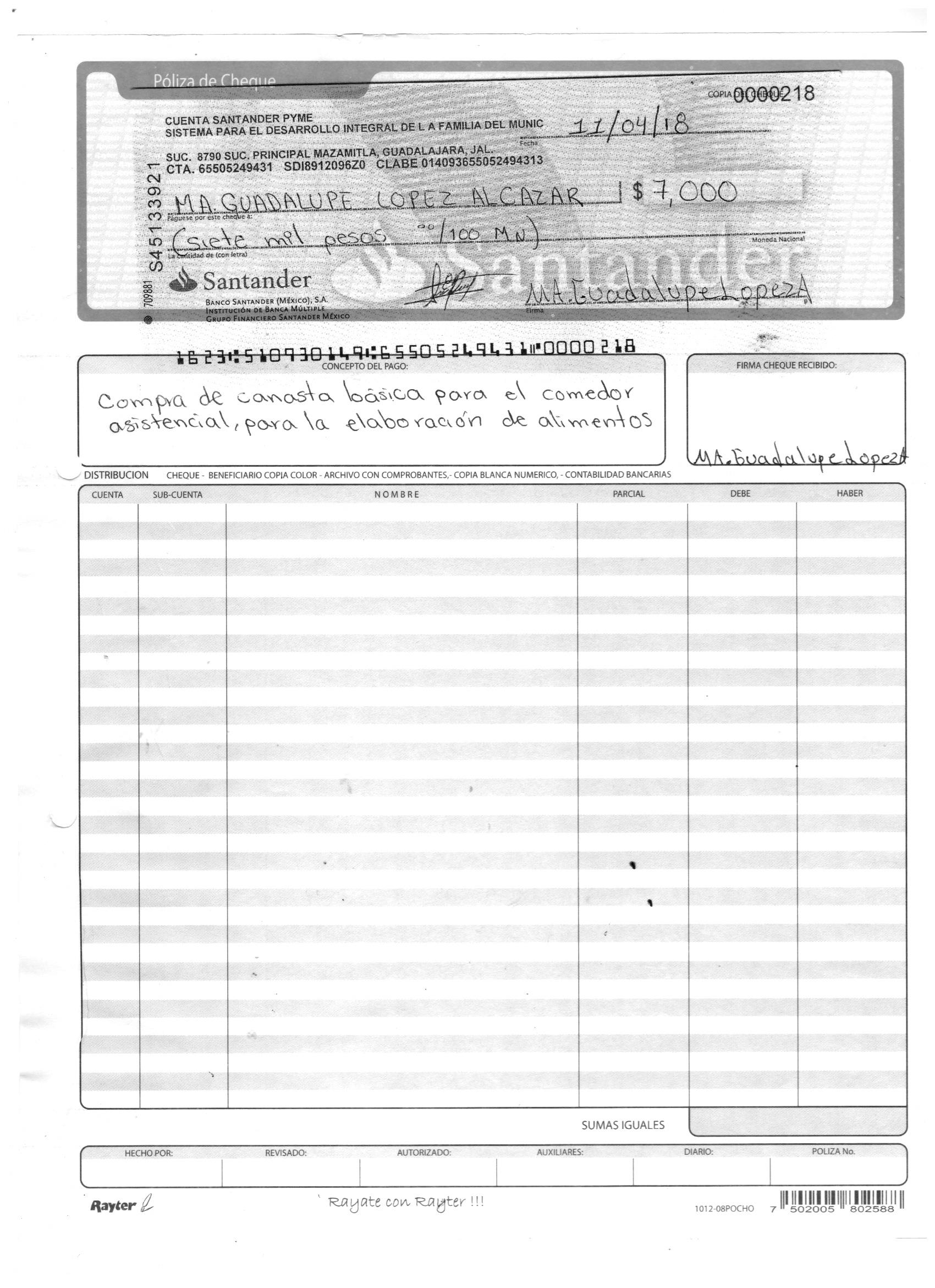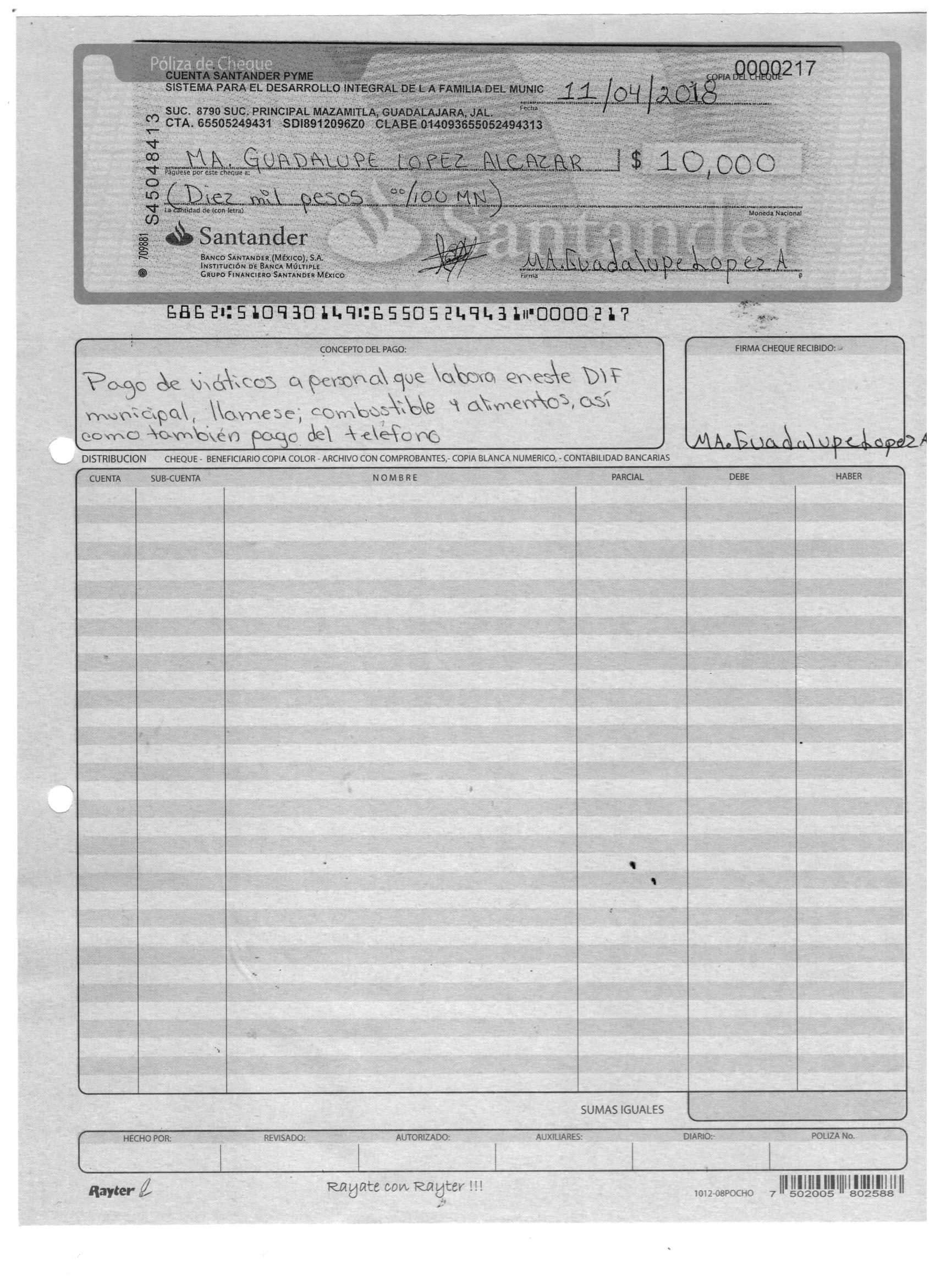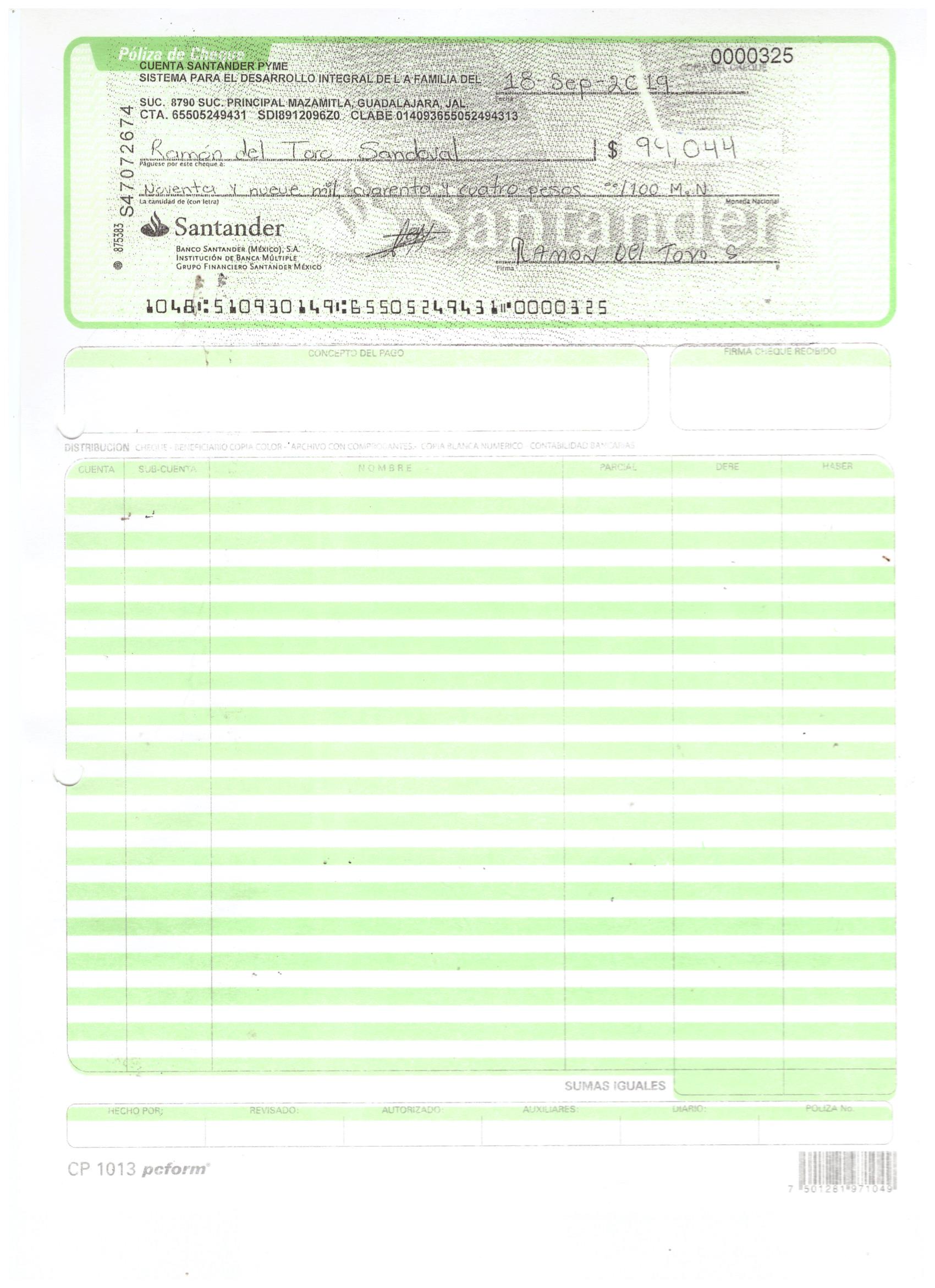 poliza de cheque,no.0125