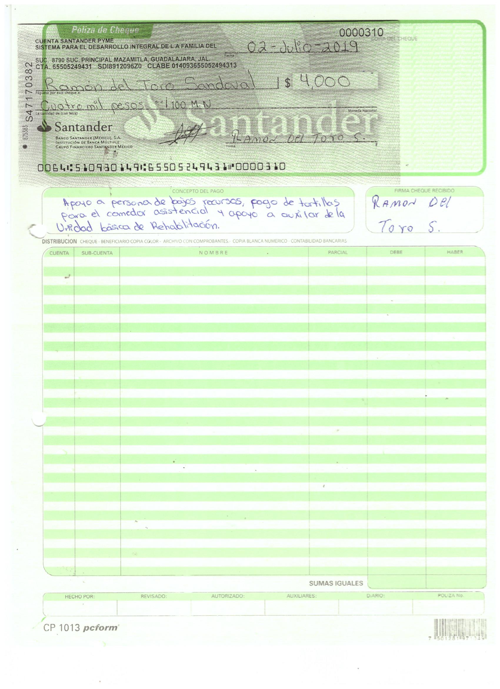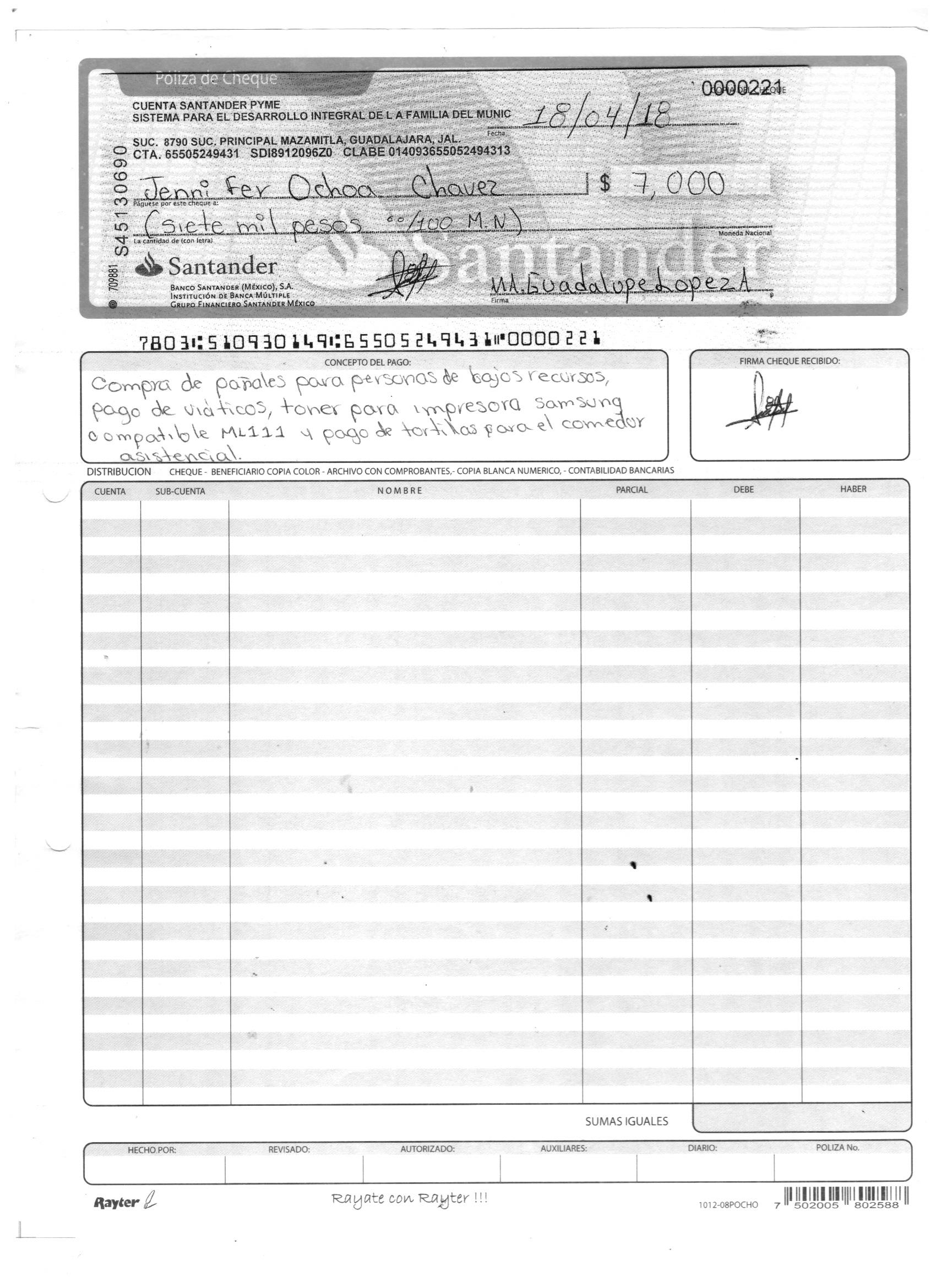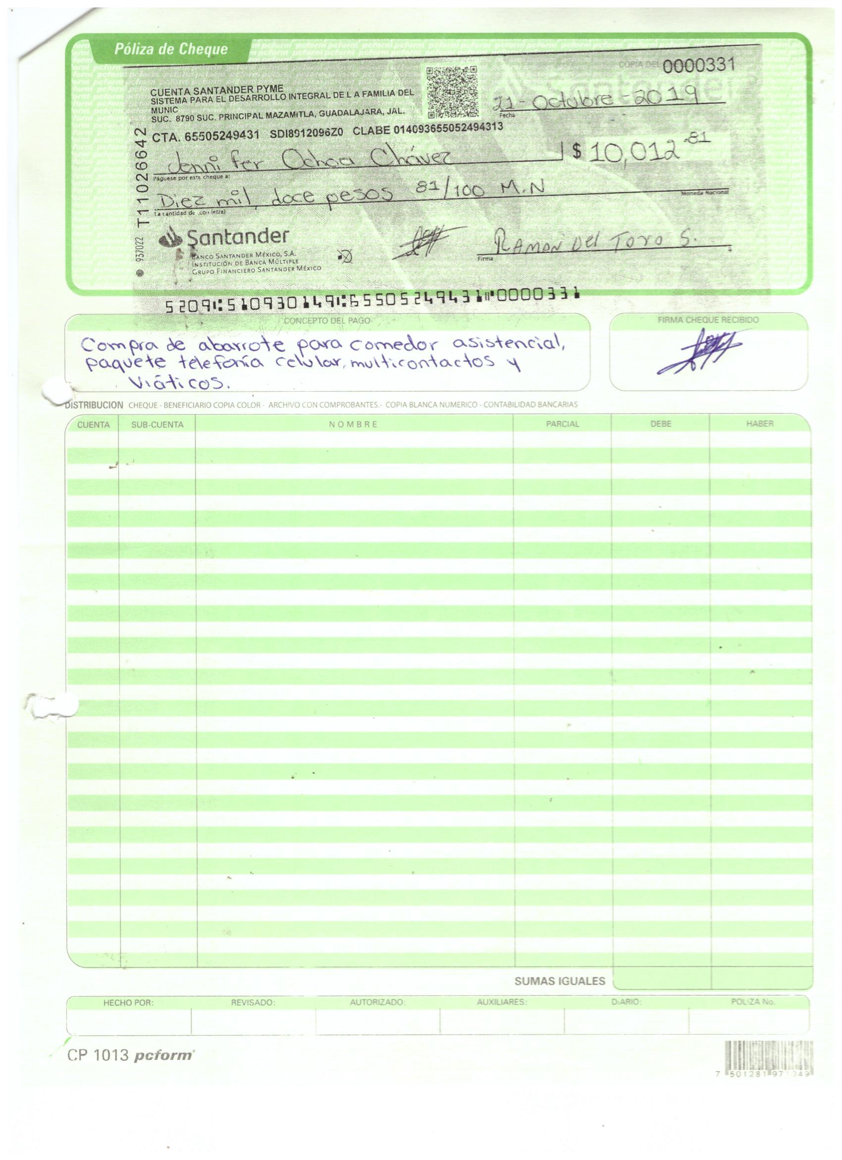 poliza de cheque,no.0131