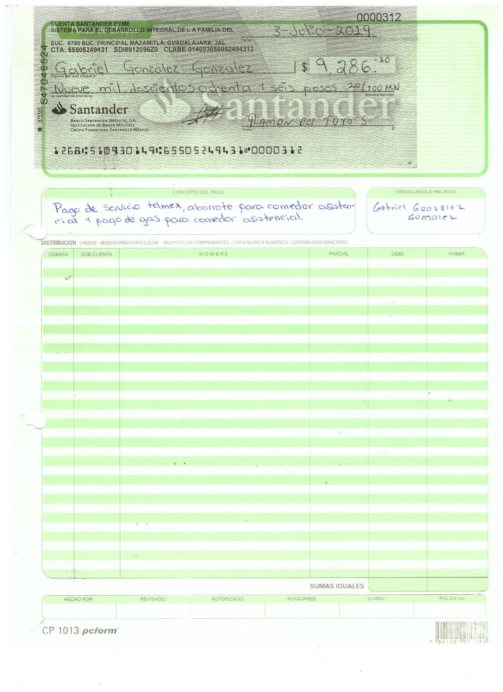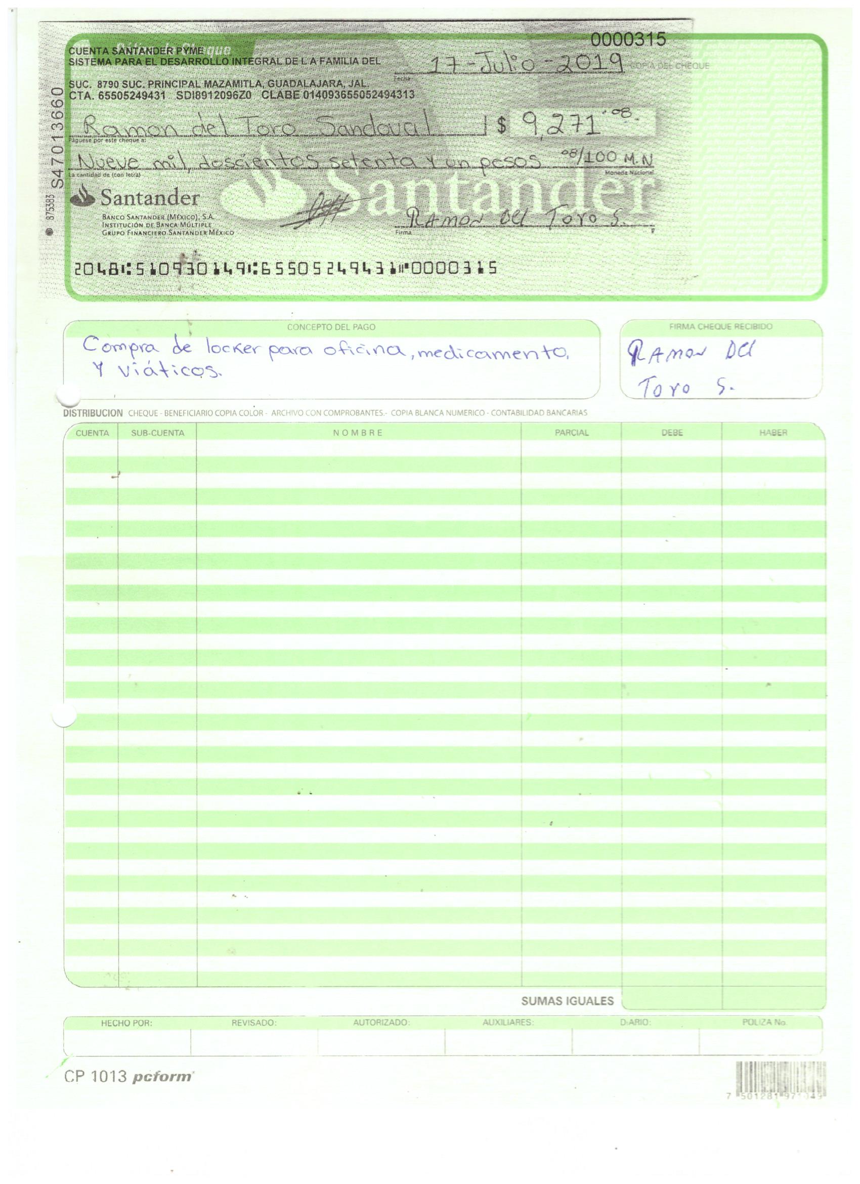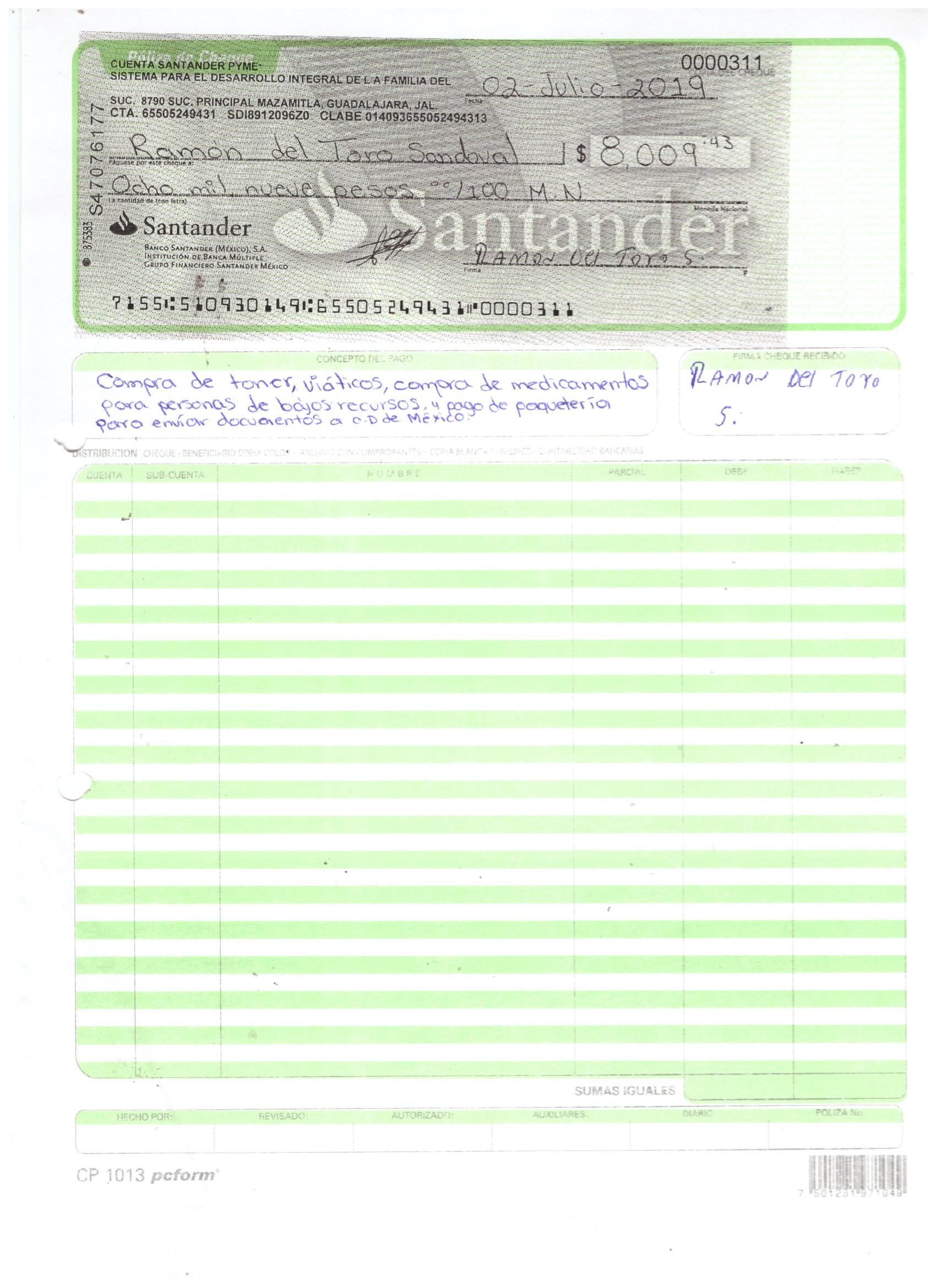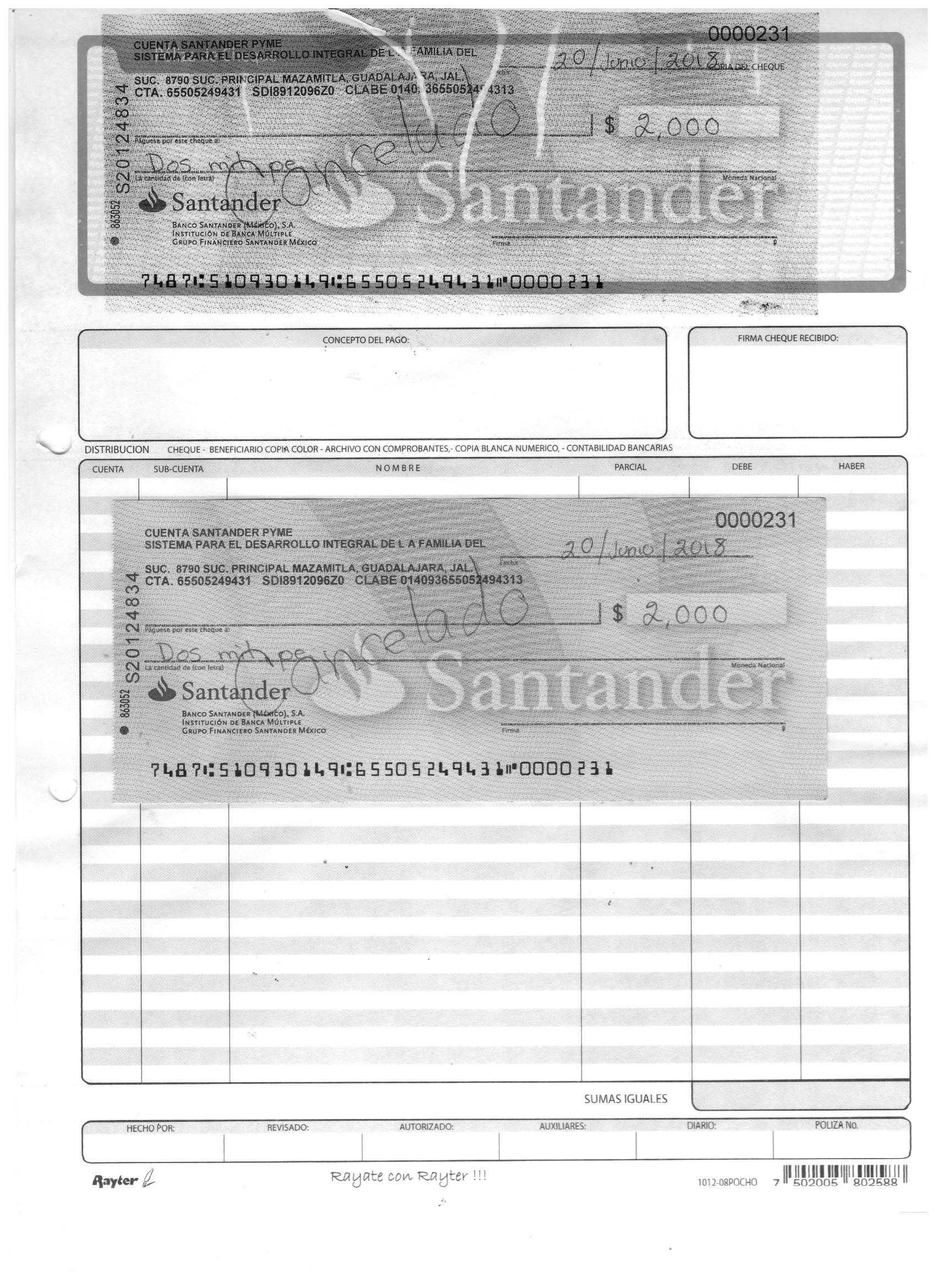 poliza de cheque,no.0131