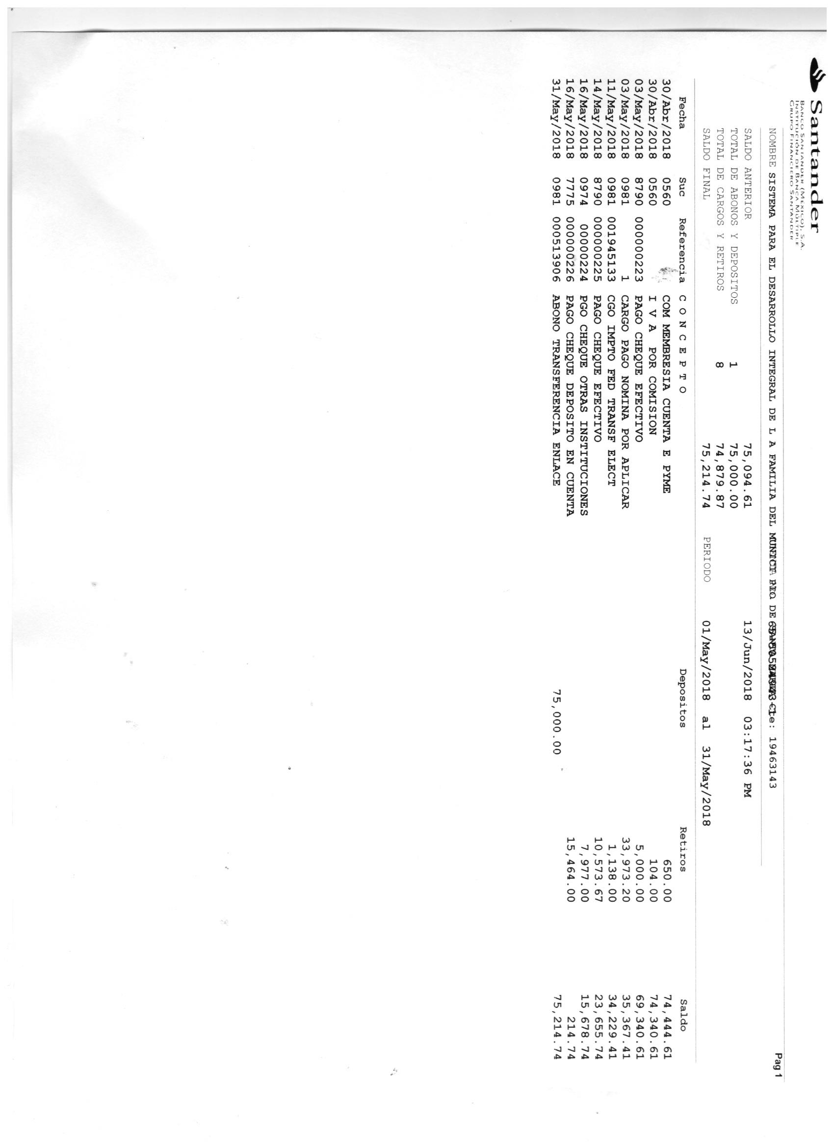 Estado de cuenta de mayo 2018