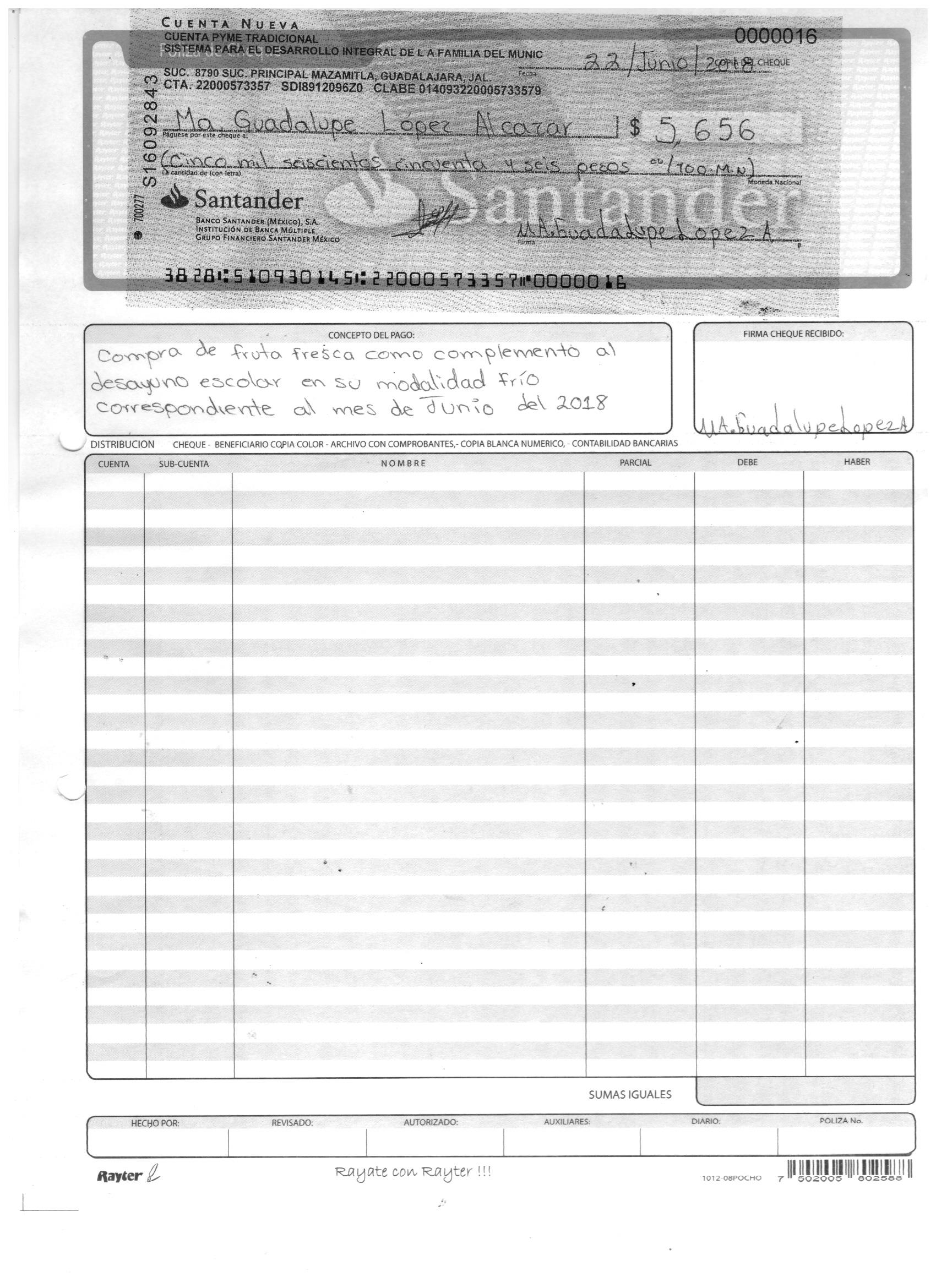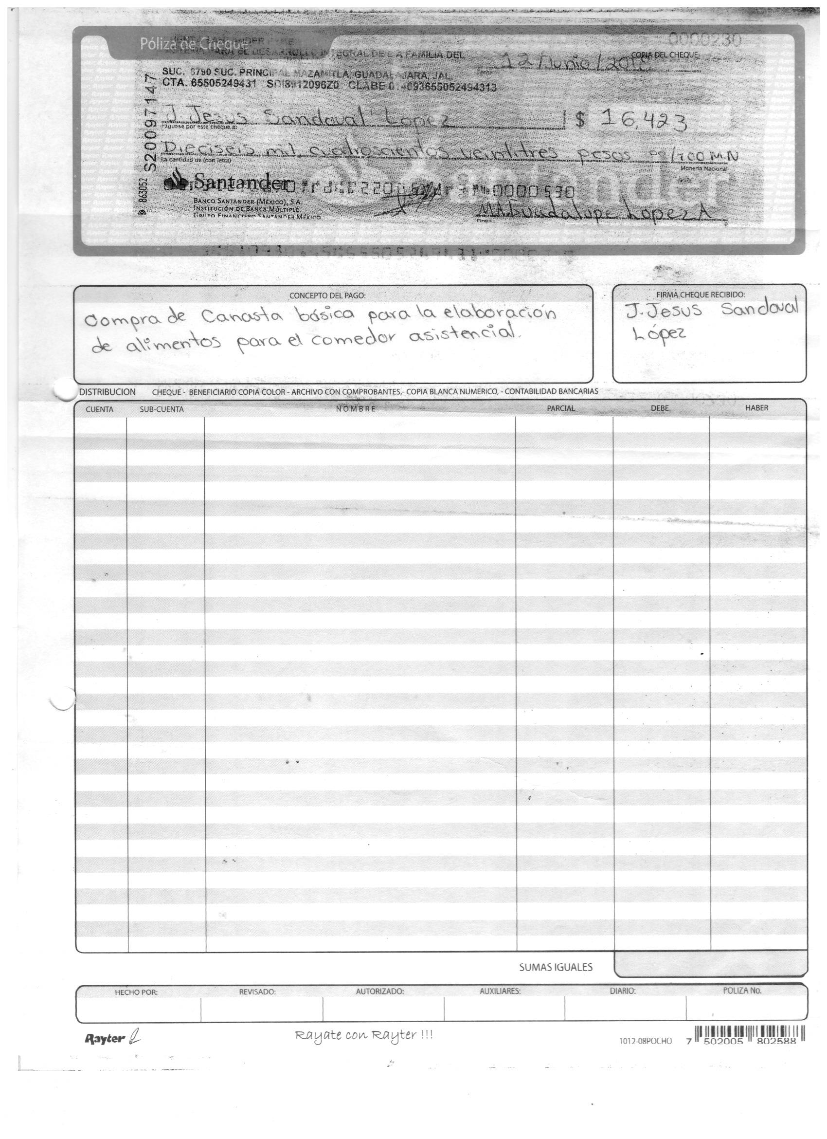 poliza de cheque,no.0116