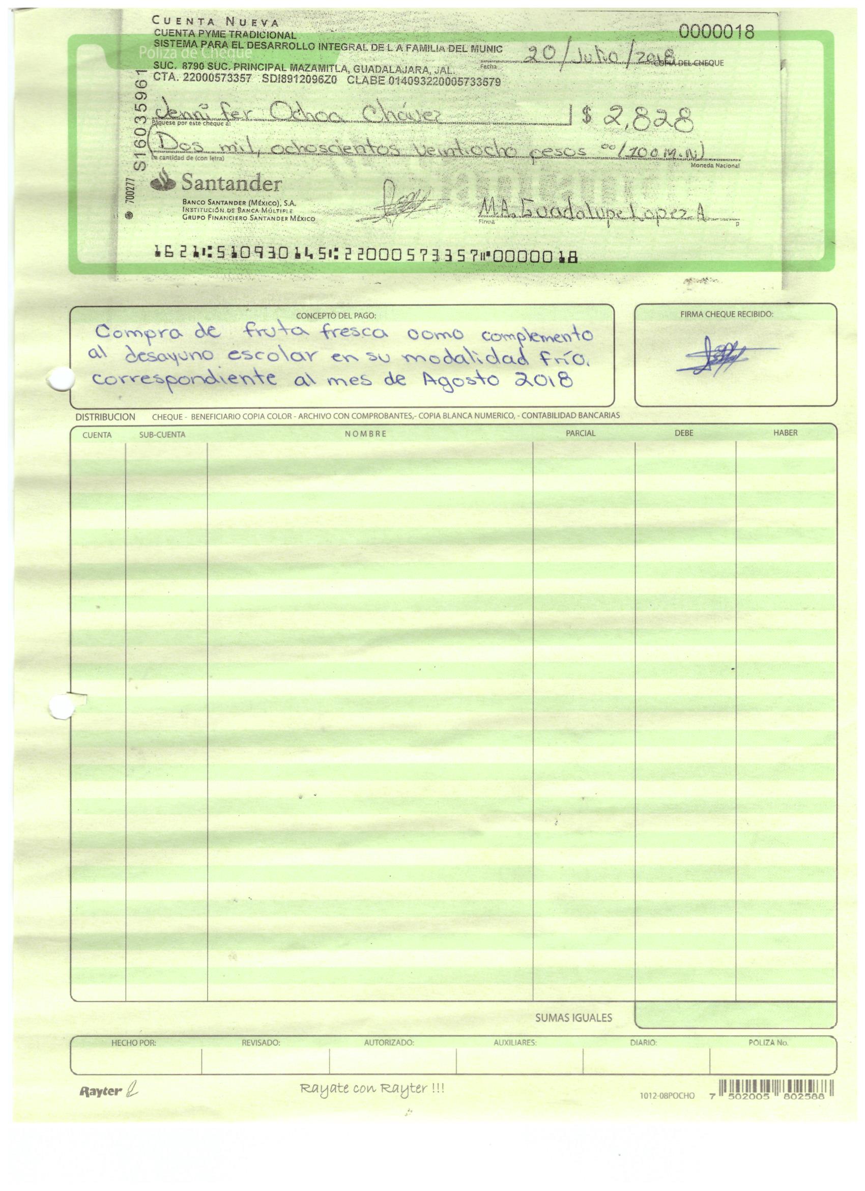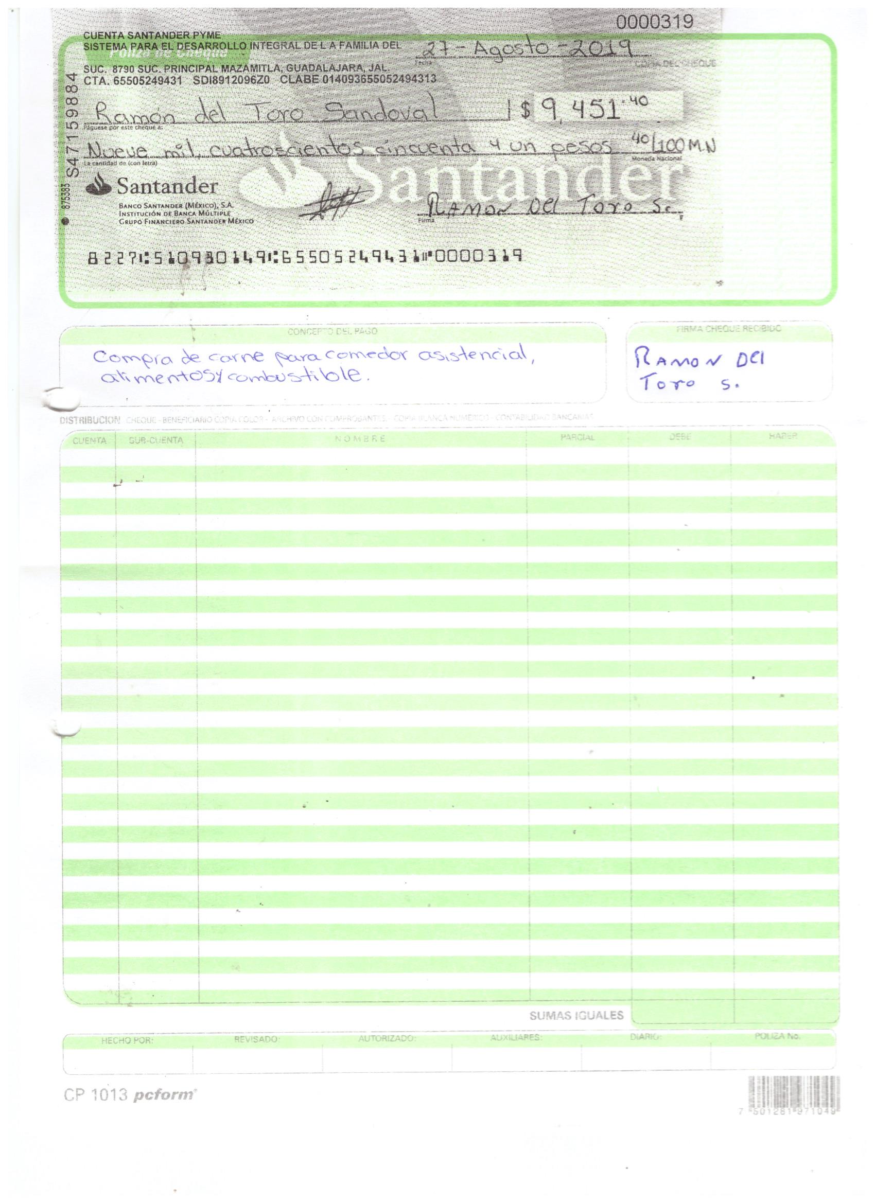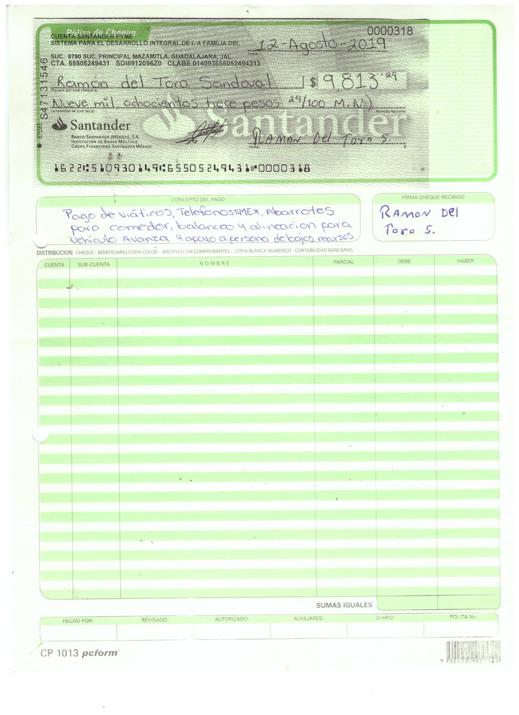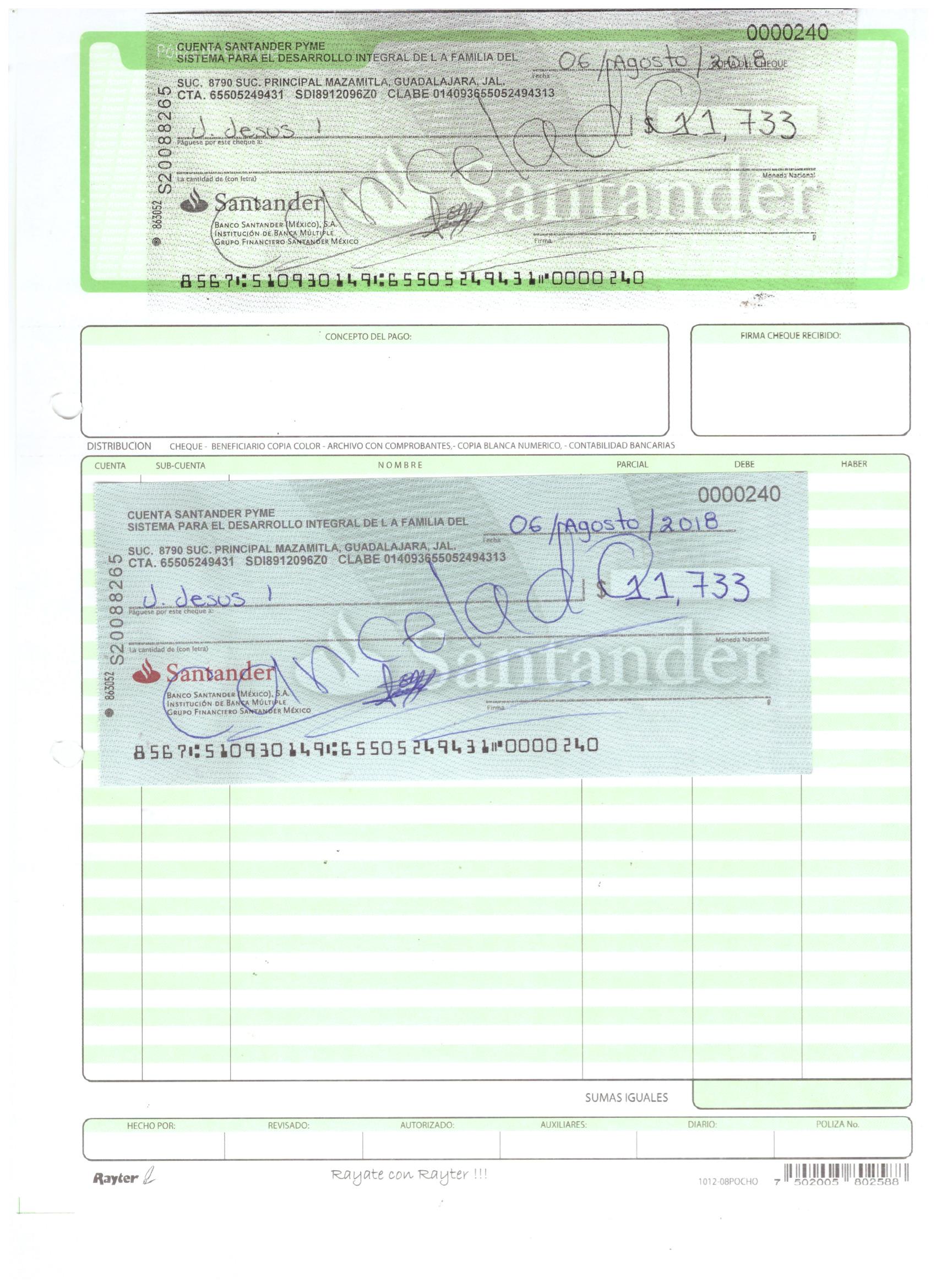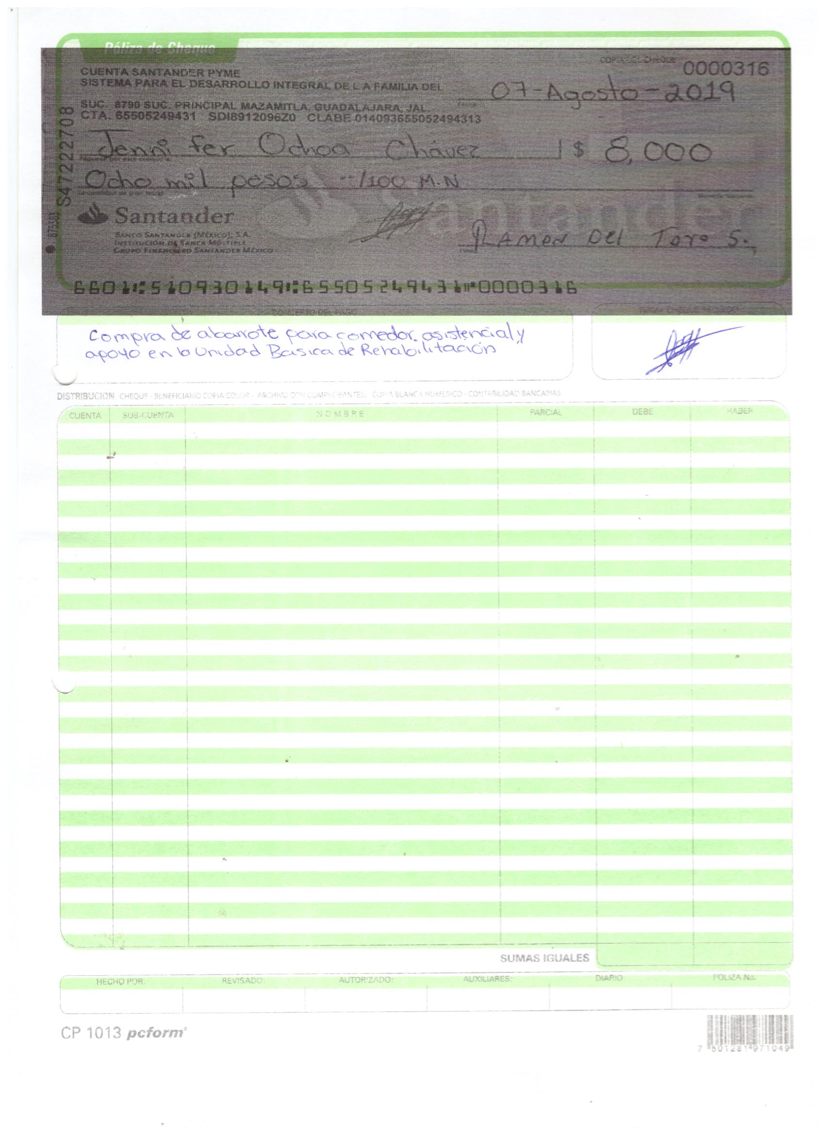 polizas y cheque agosto