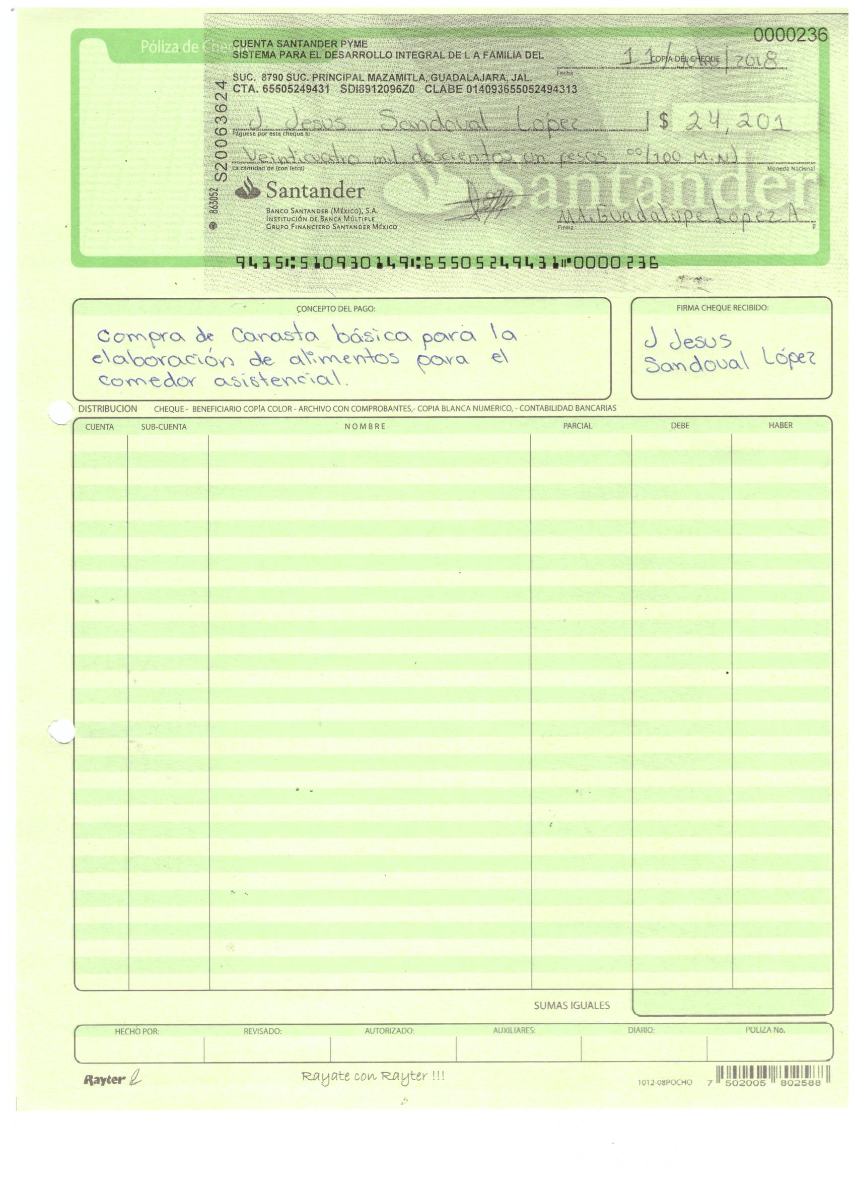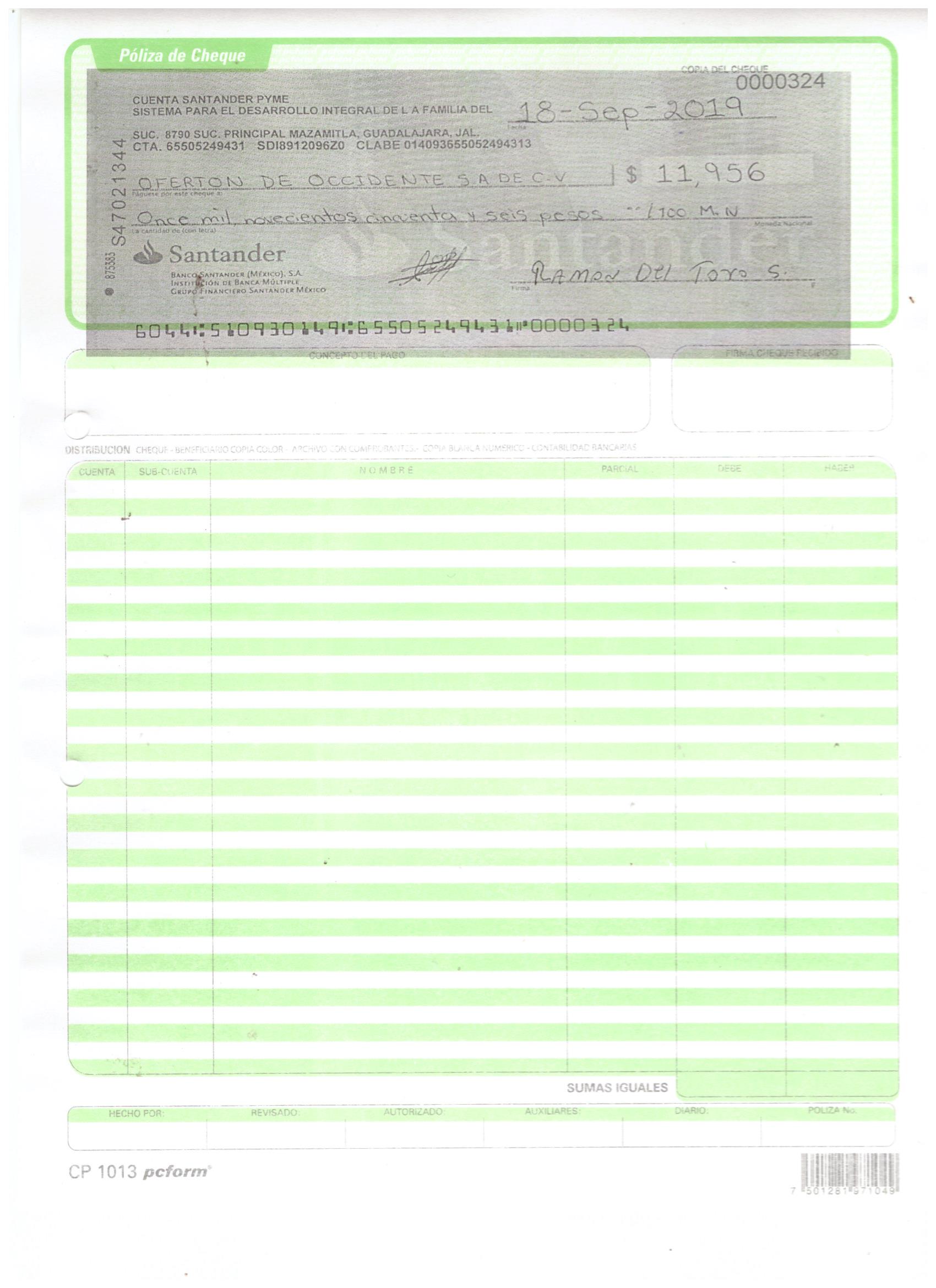poliza de cheque,no.0124