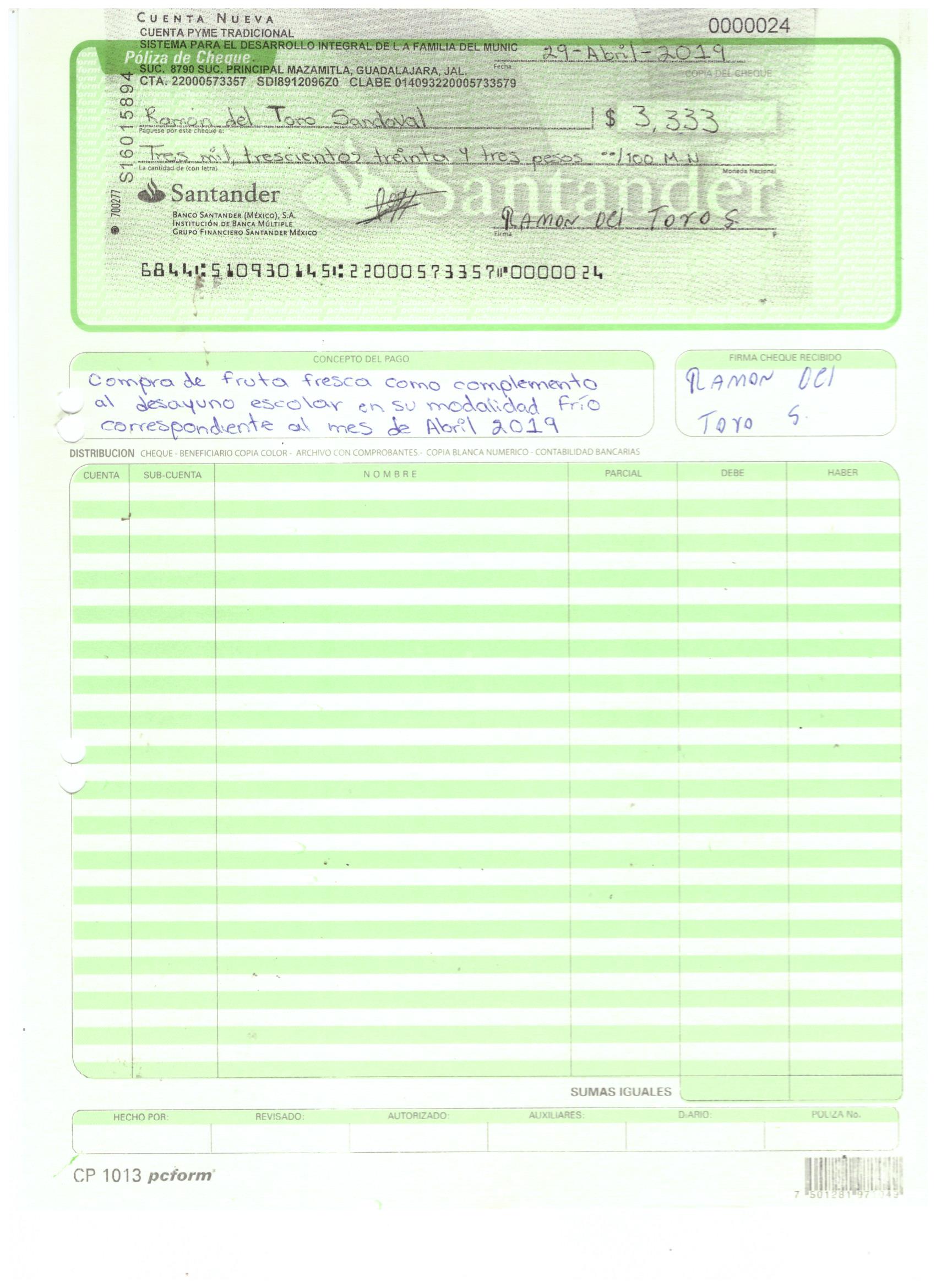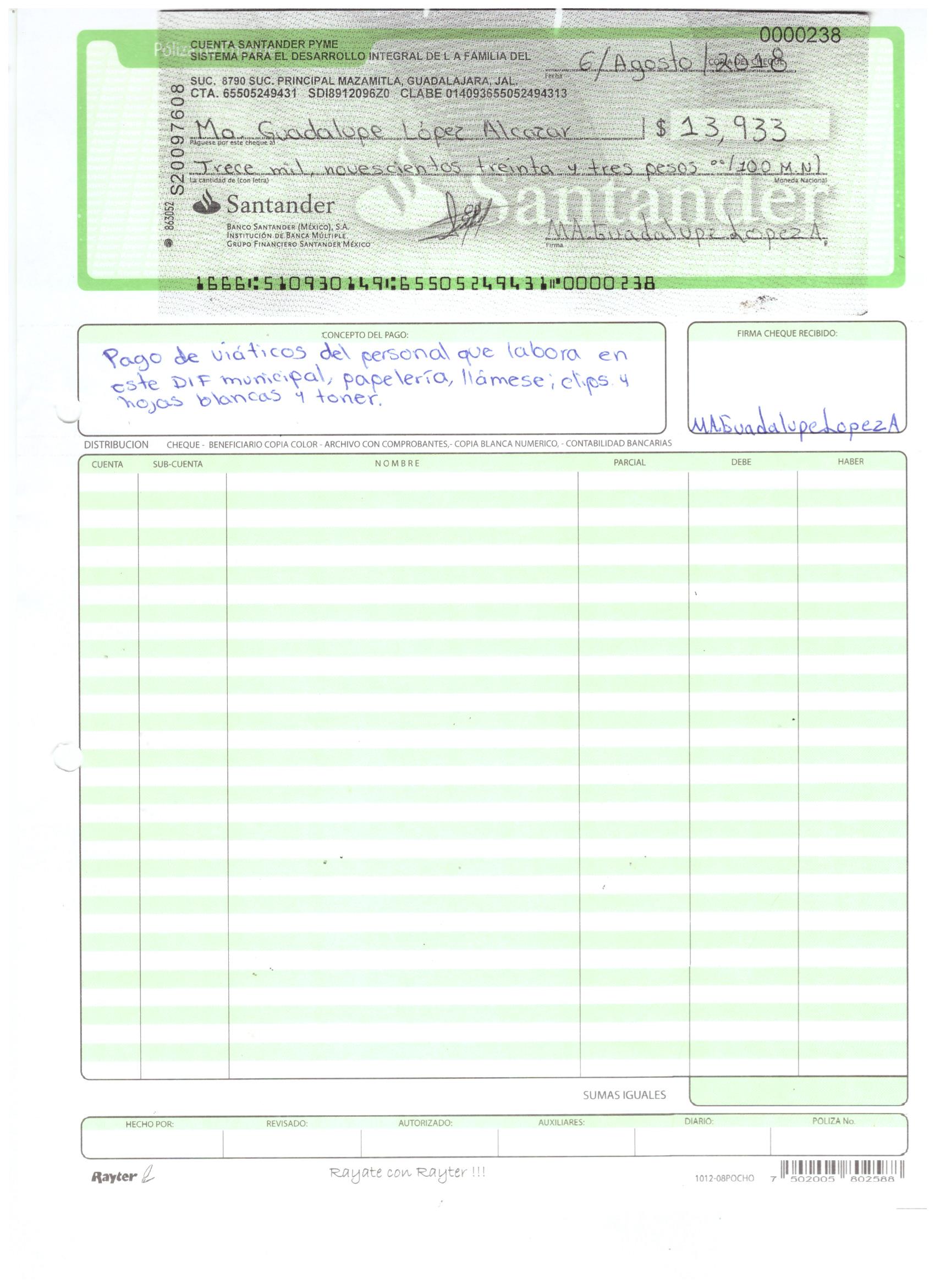 poliza de cheque,no.0133