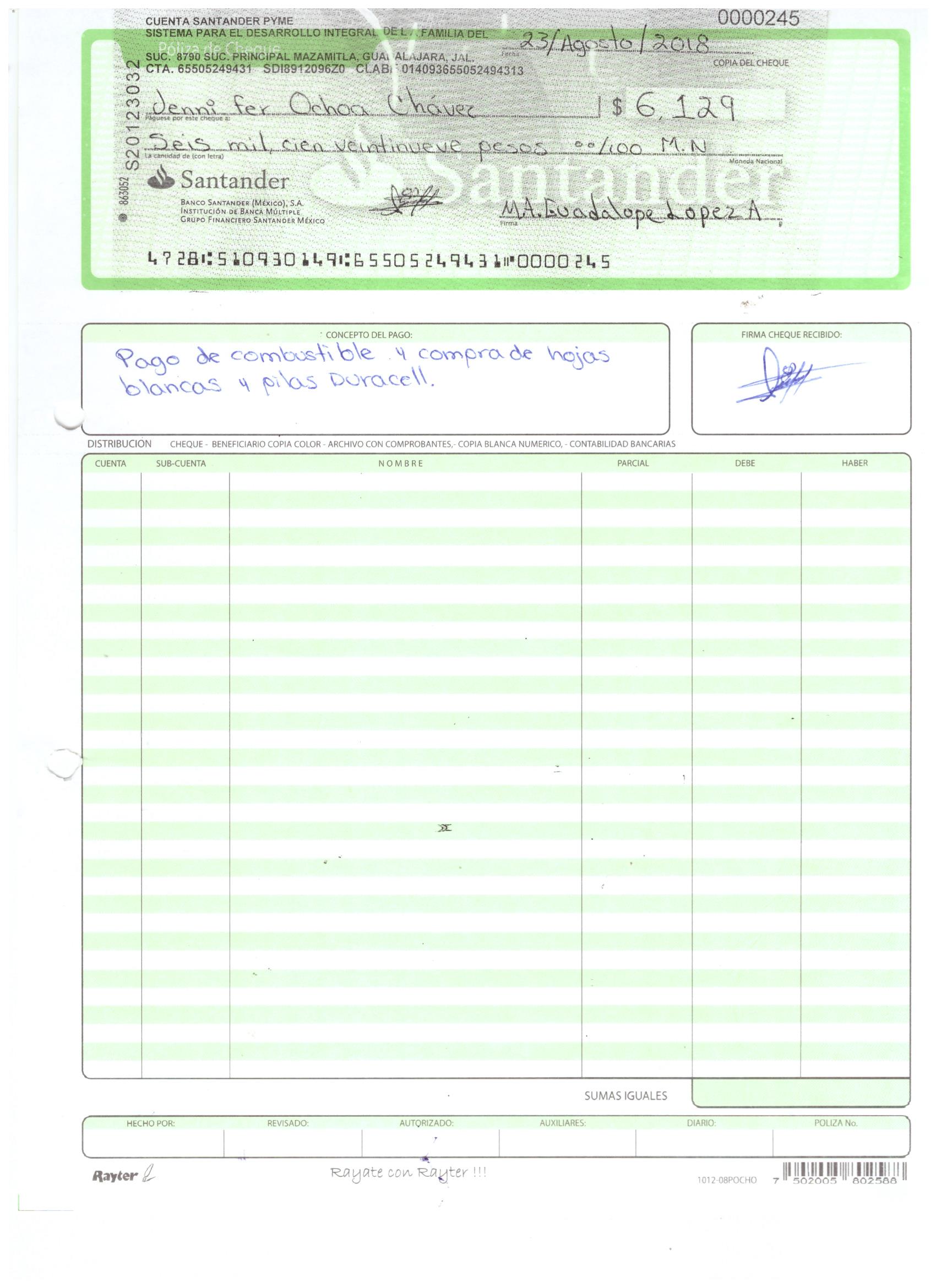 poliza de cheque,no.0129