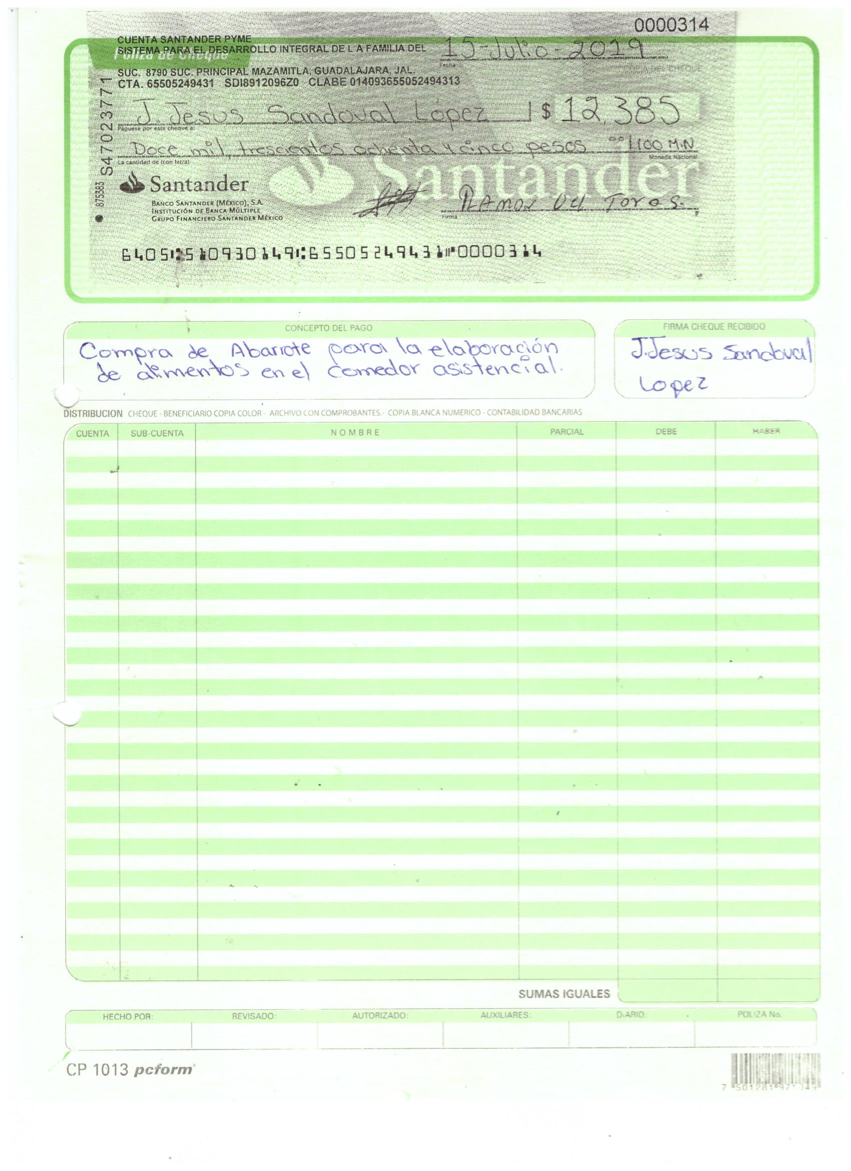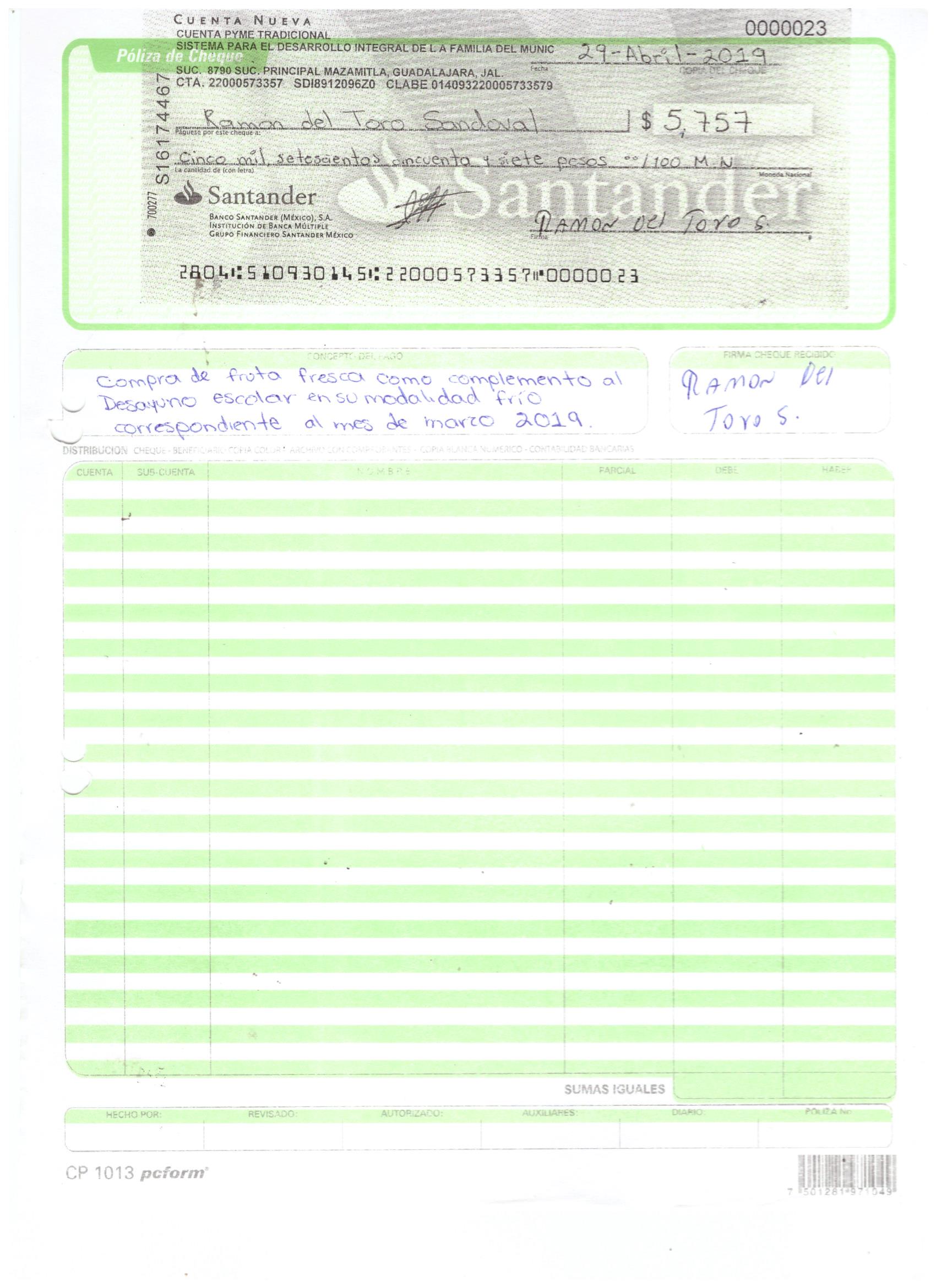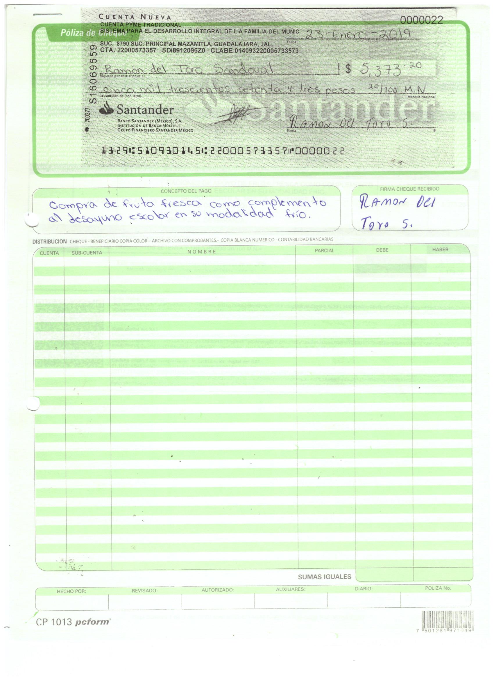poliza de cheque,no.0123
