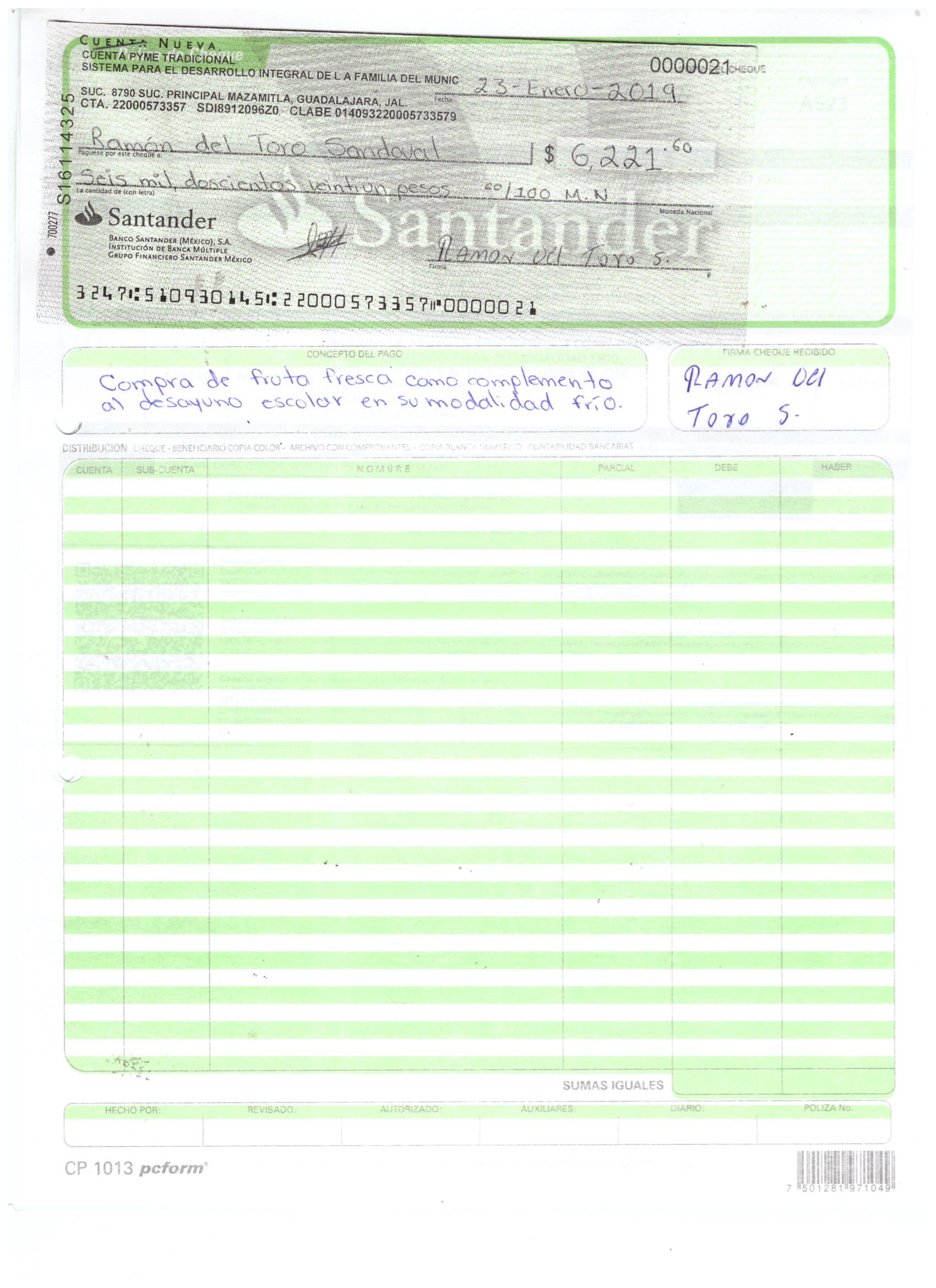 poliza de cheque,no.0121