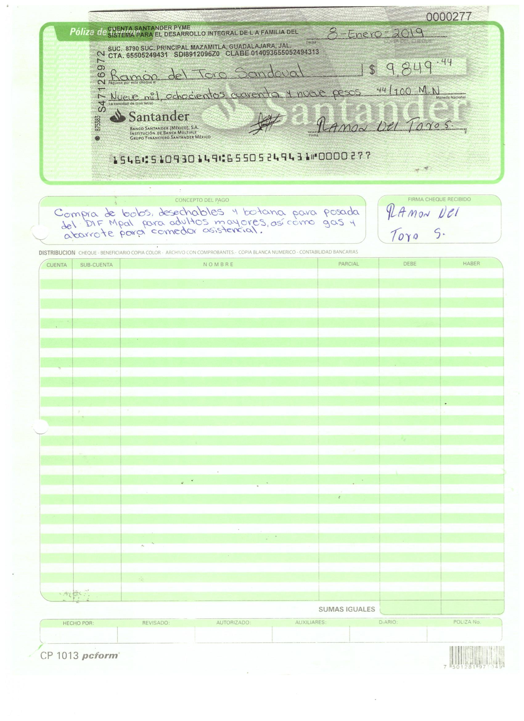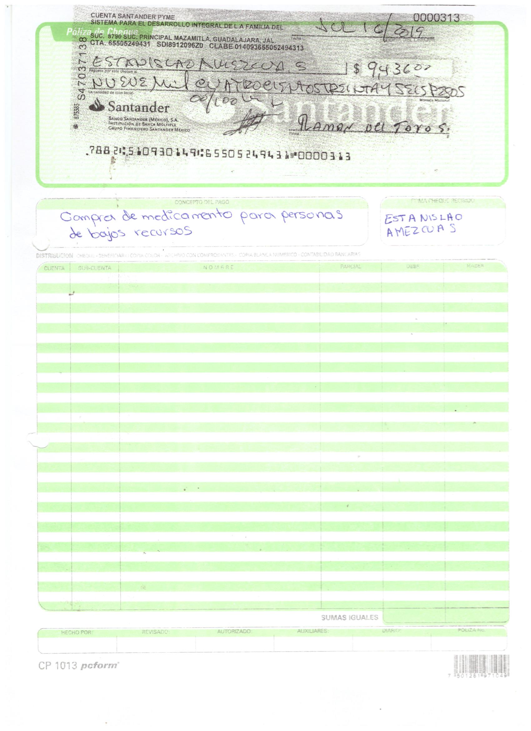 poliza de cheque,no.0113