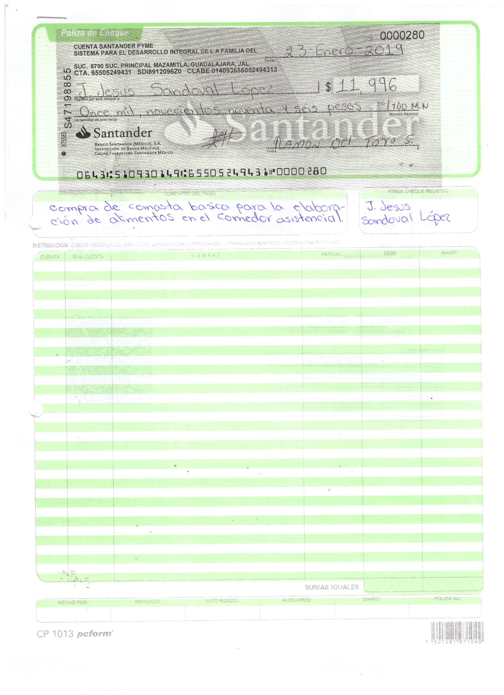 poliza de cheque,no.0119