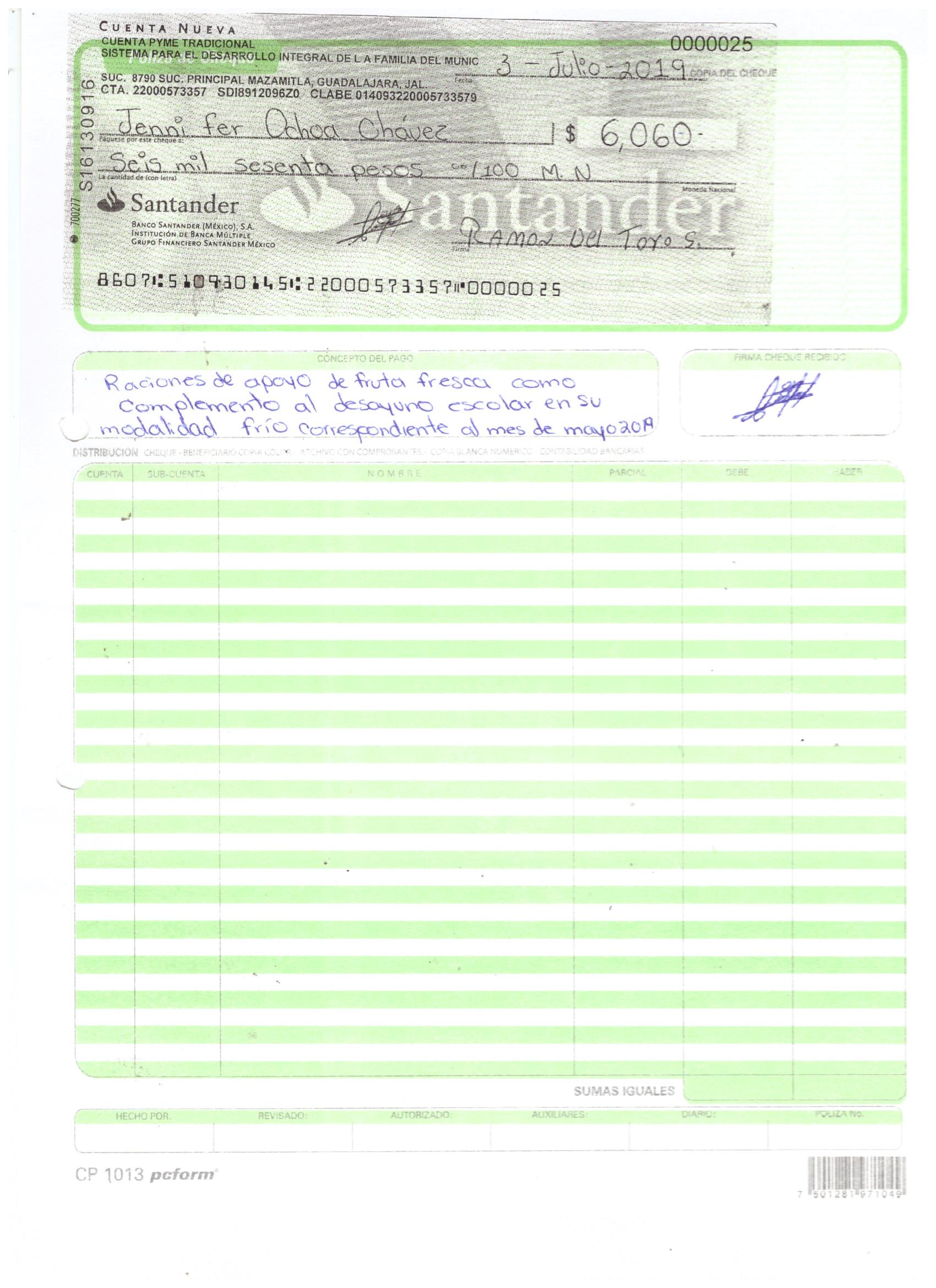 poliza de cheque,no.0132