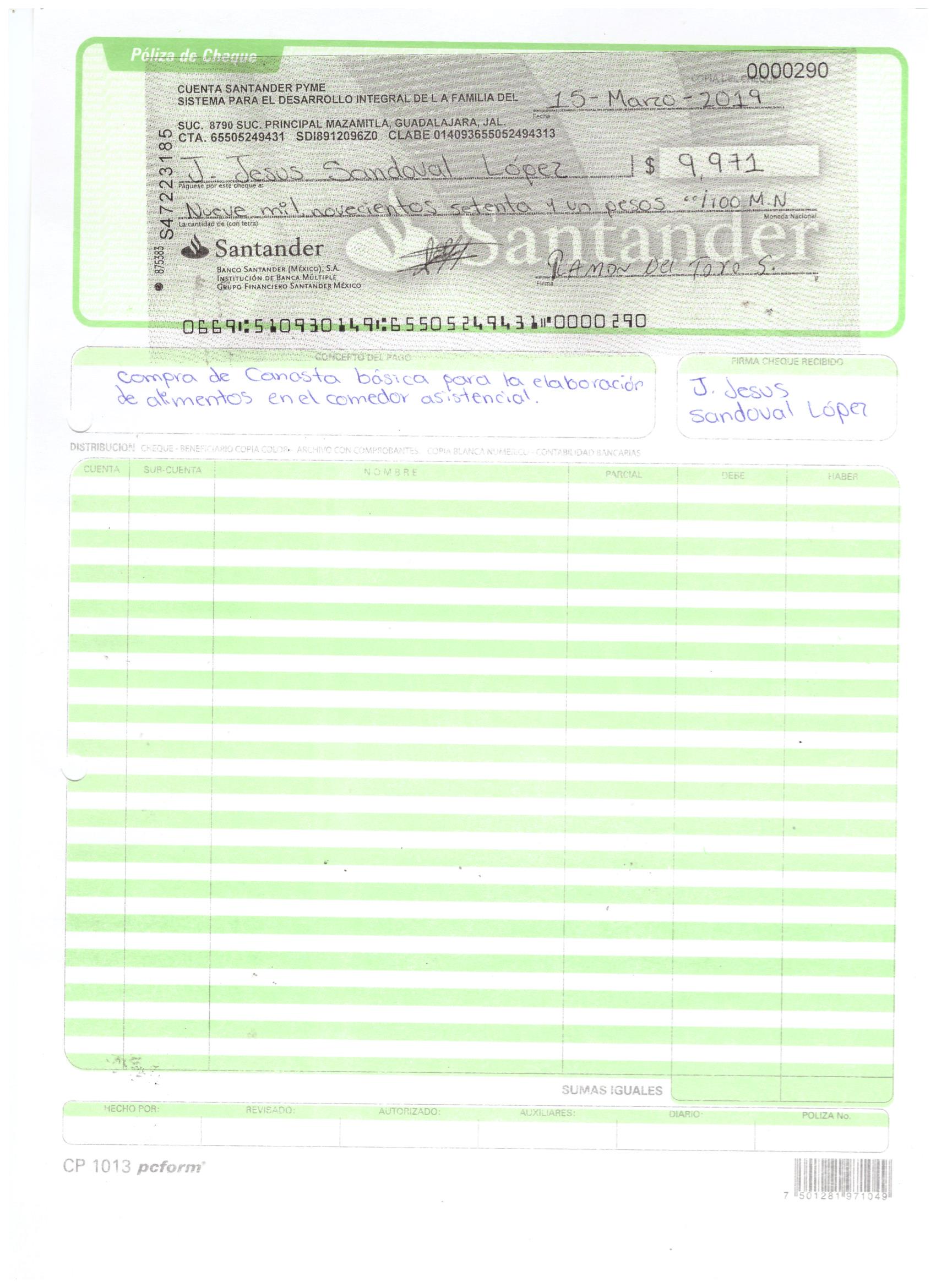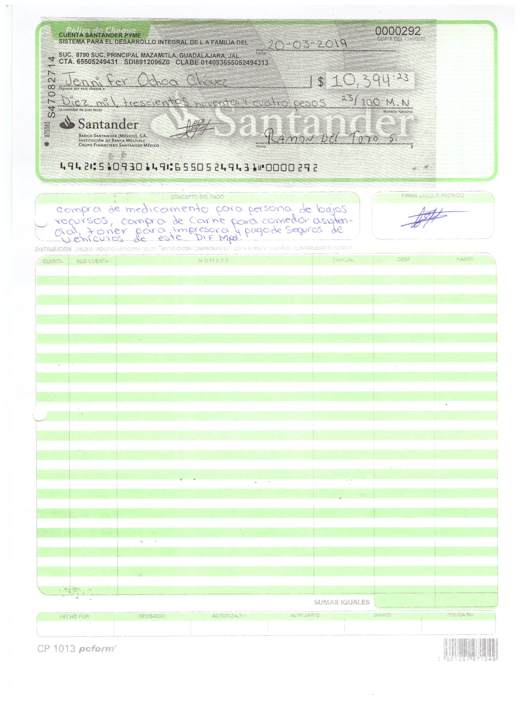 poliza de cheque,no.0110