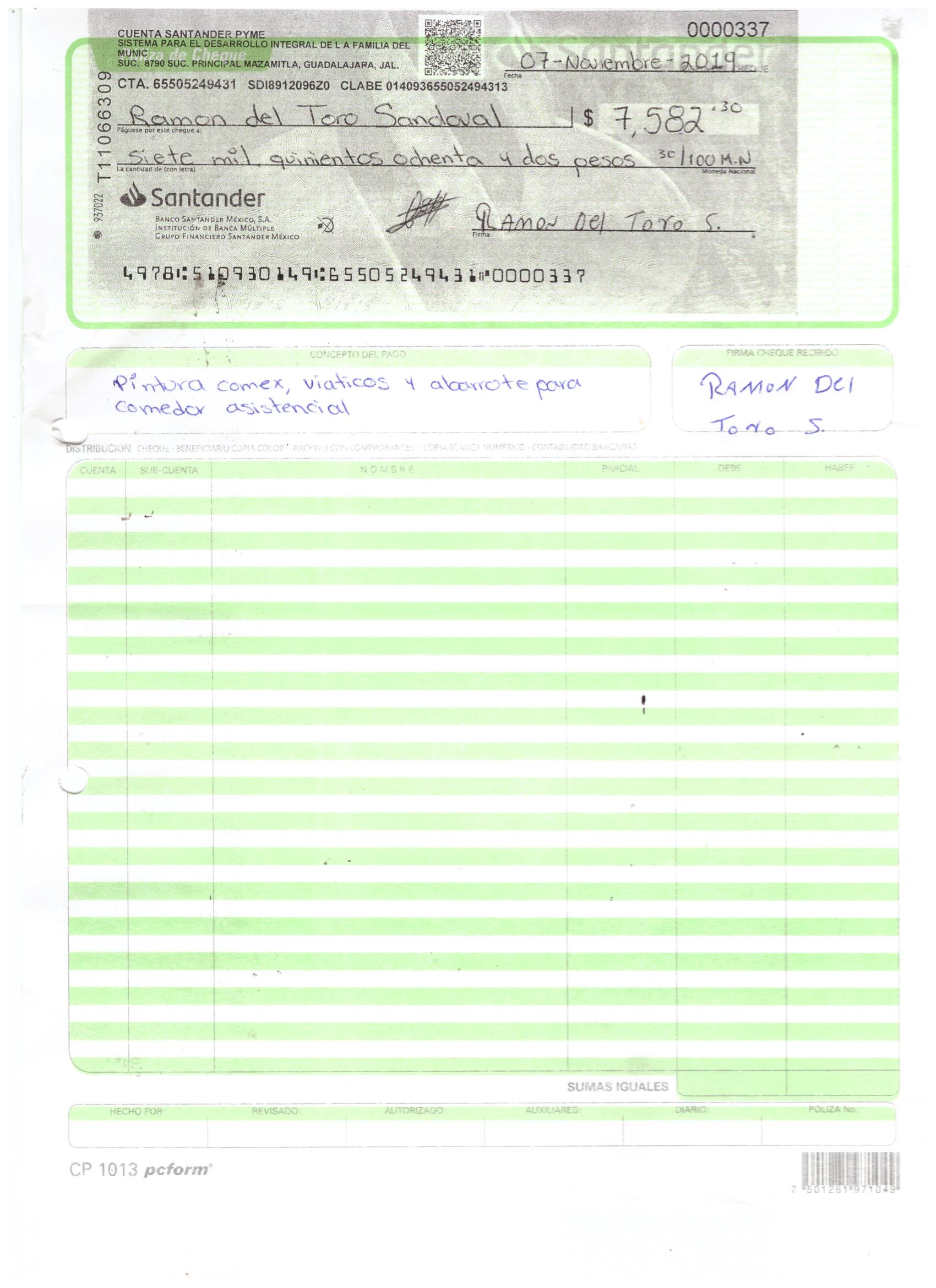 POLIZAS DE CHEQUES NOVIEMBRE 2019