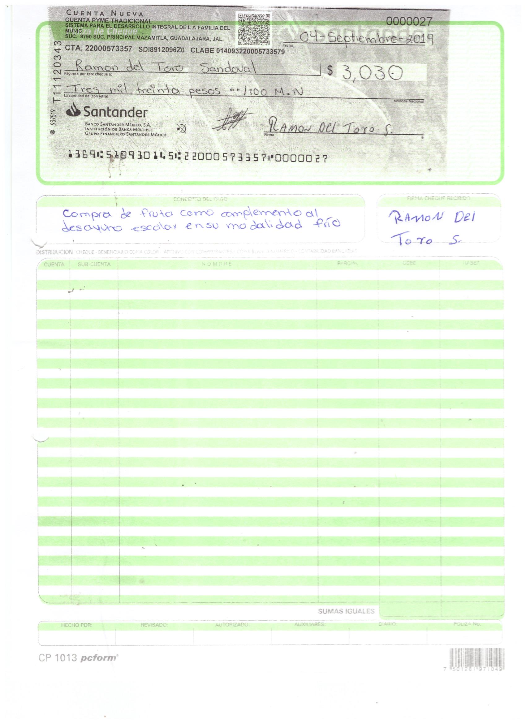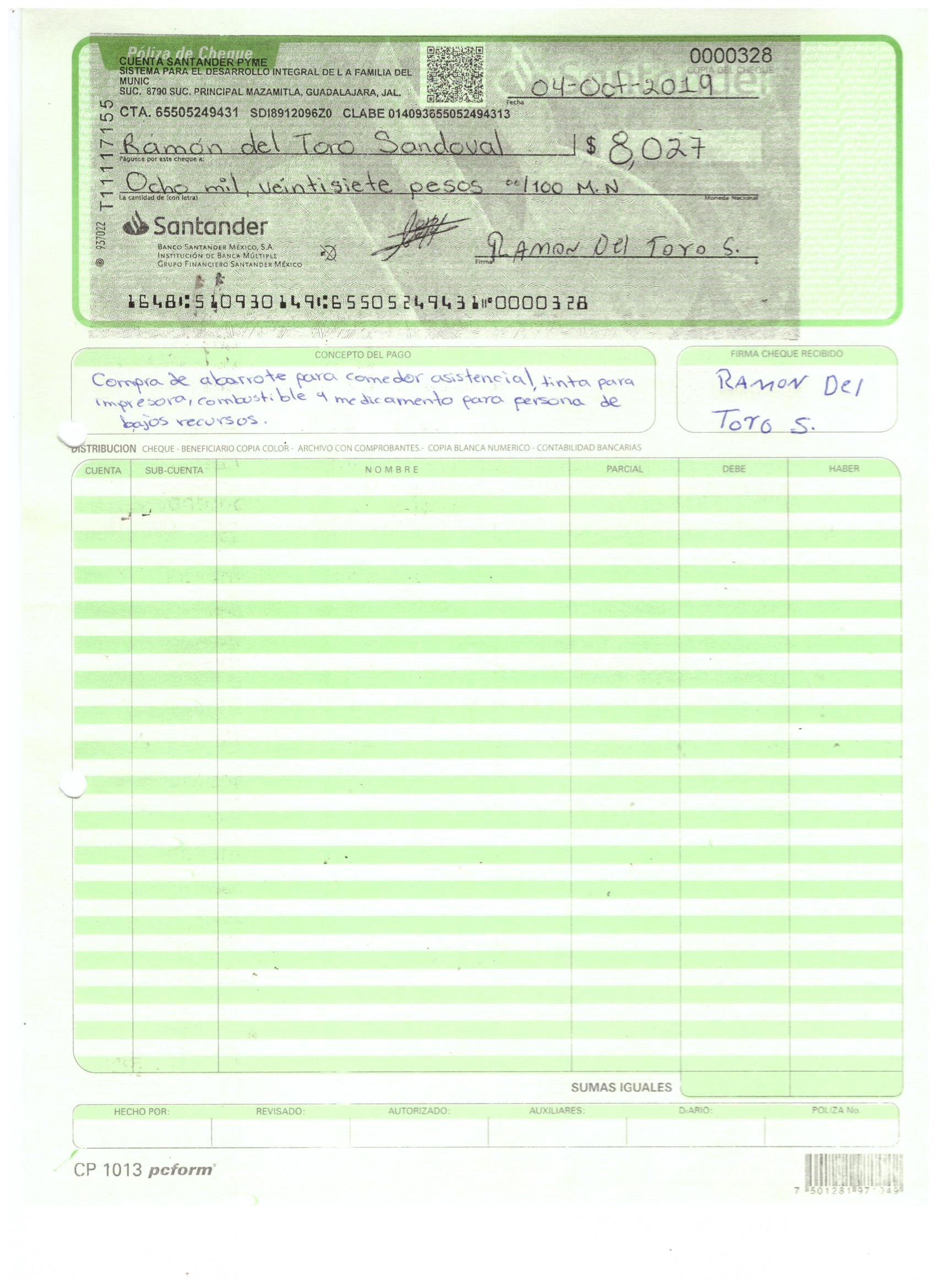 poliza de cheque,no.0127