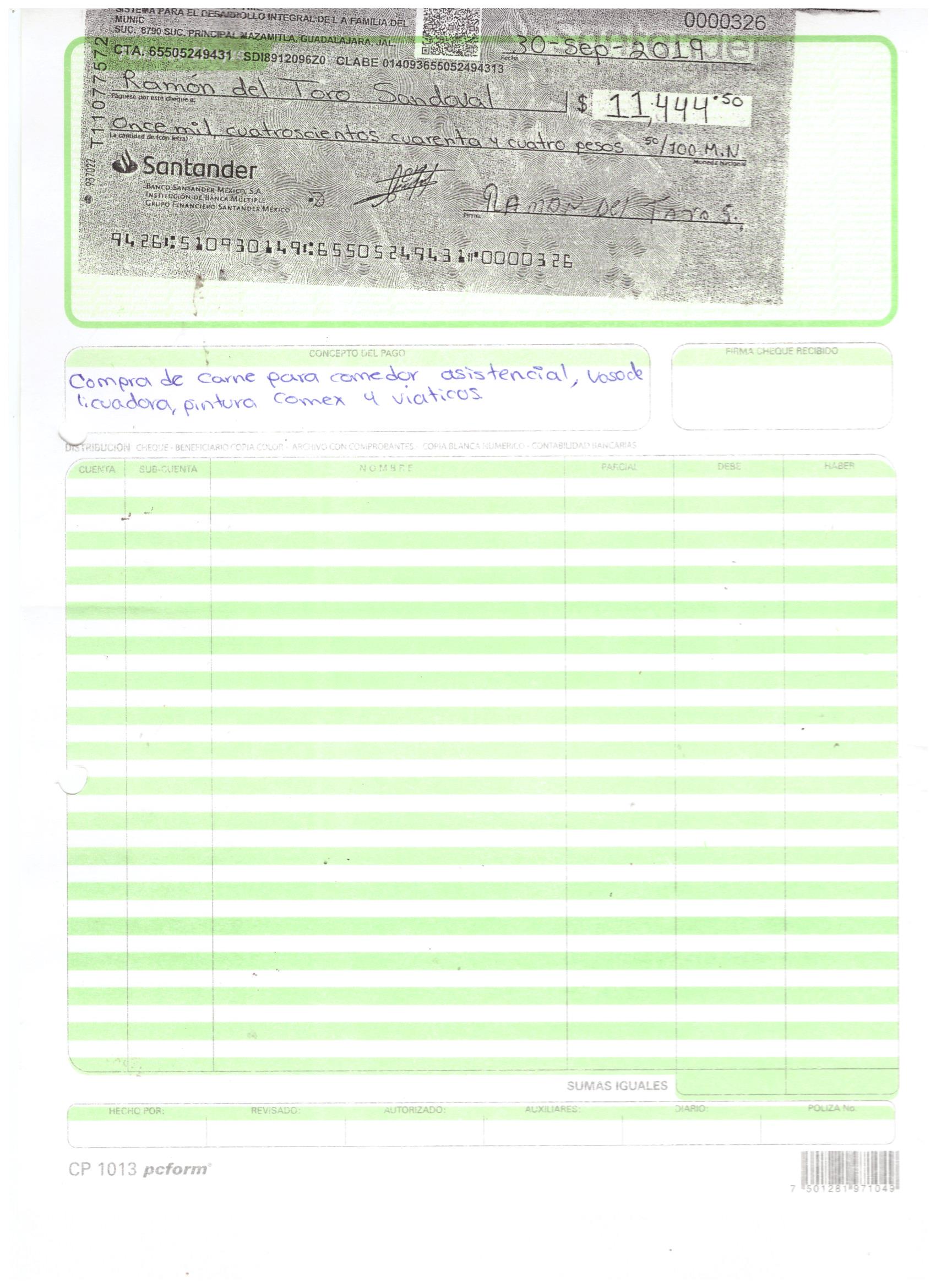 poliza de cheque,no.0126